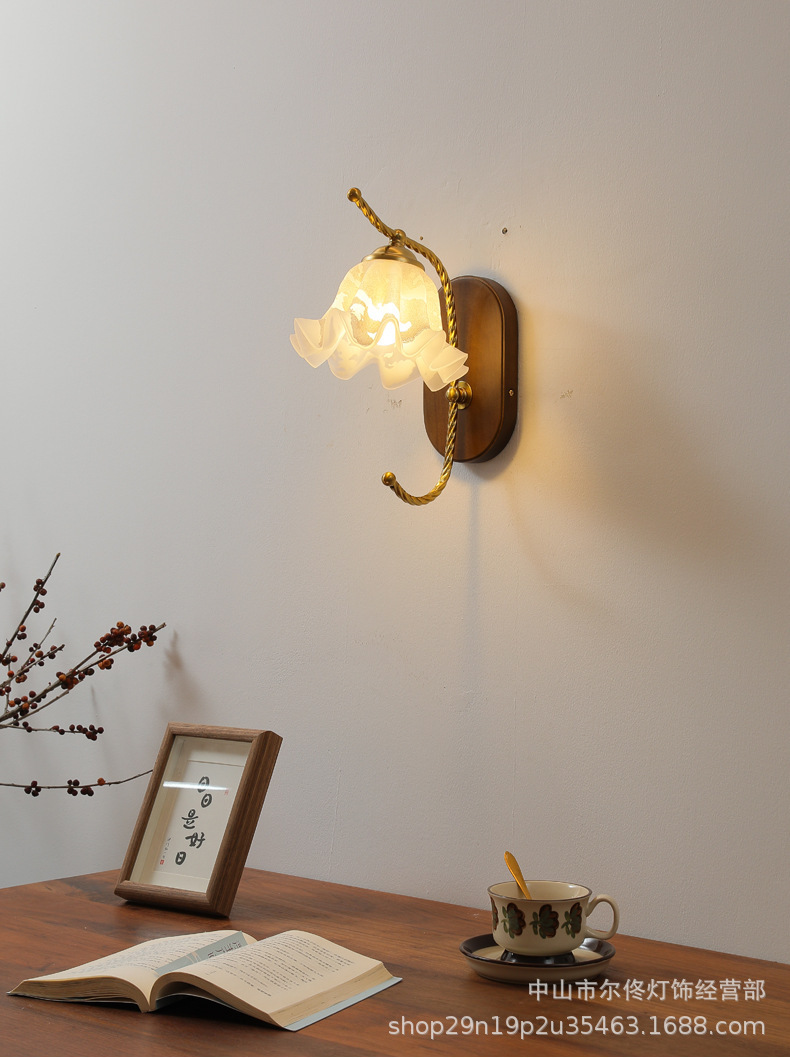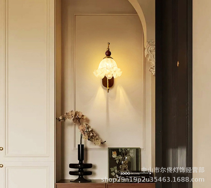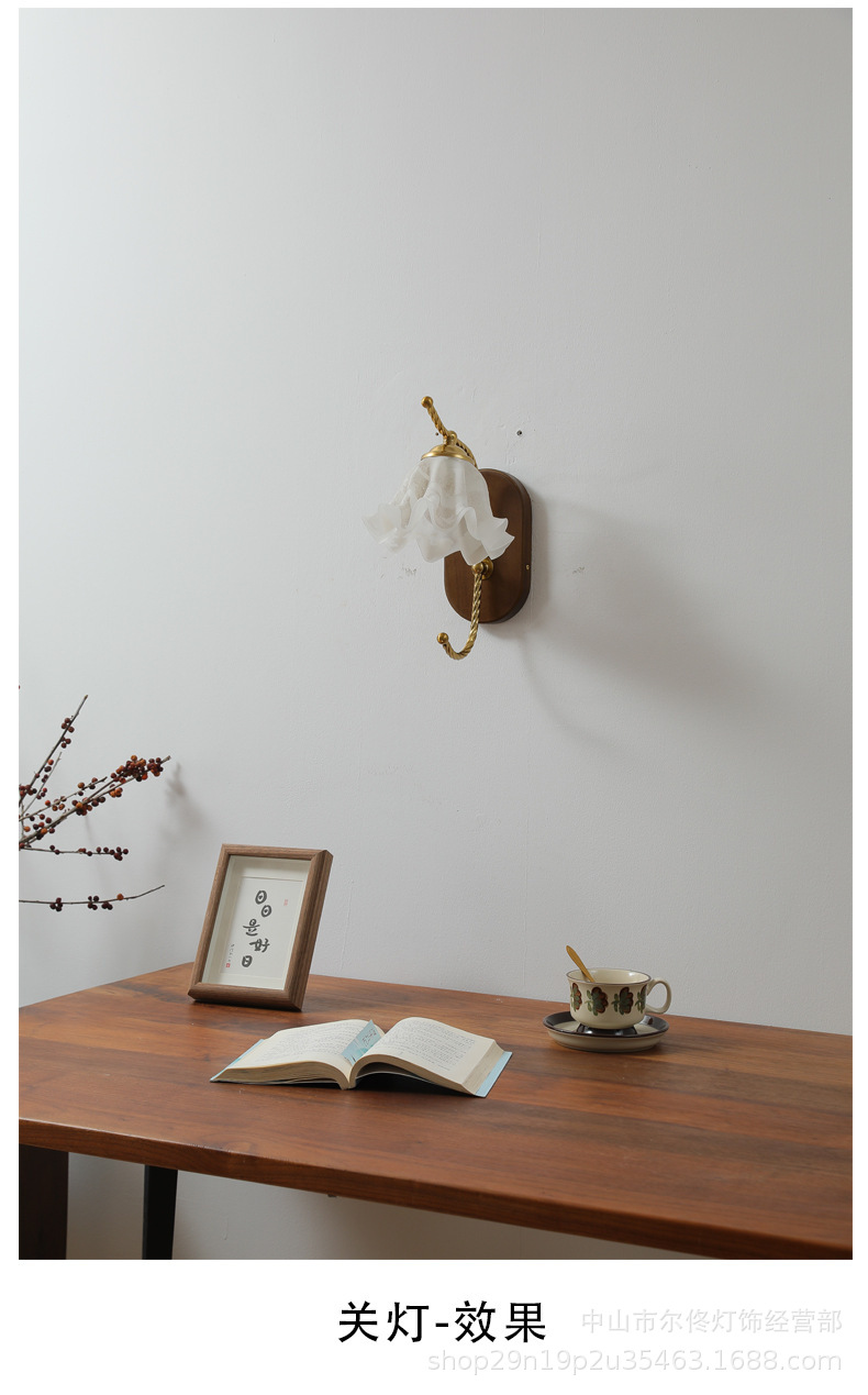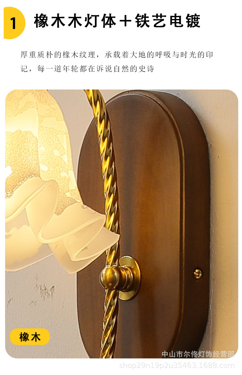 중세 스타일 거실 벽 램프 프랑스 복고풍 호두 유리 하이 엔드 따뜻한 침실 머리맡 복도 통로 눈 보호스토어 가기