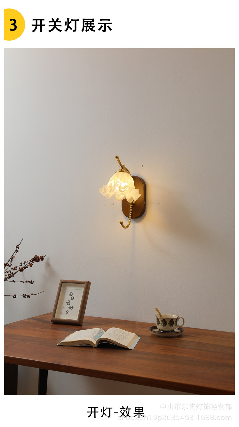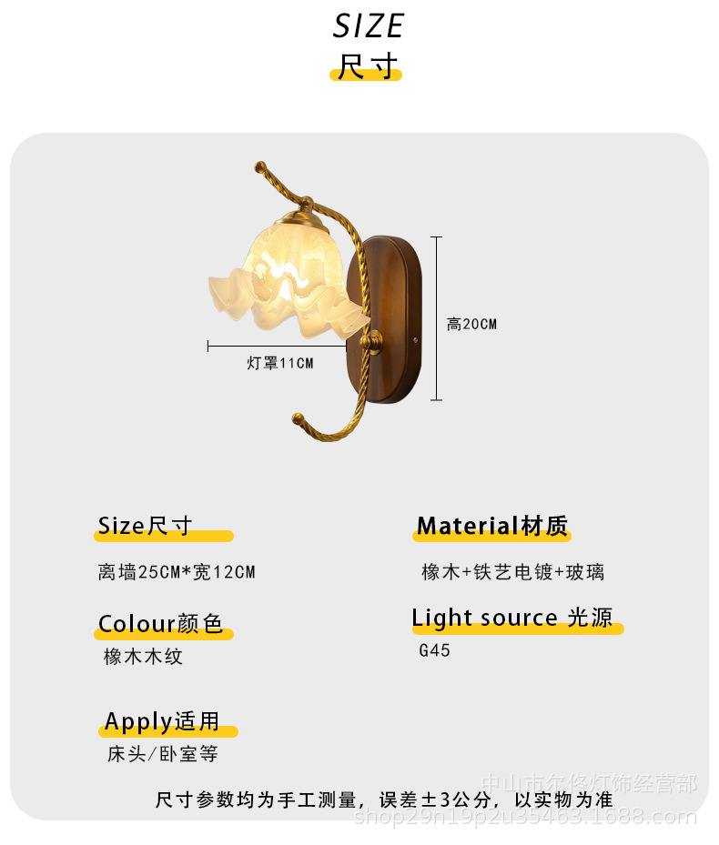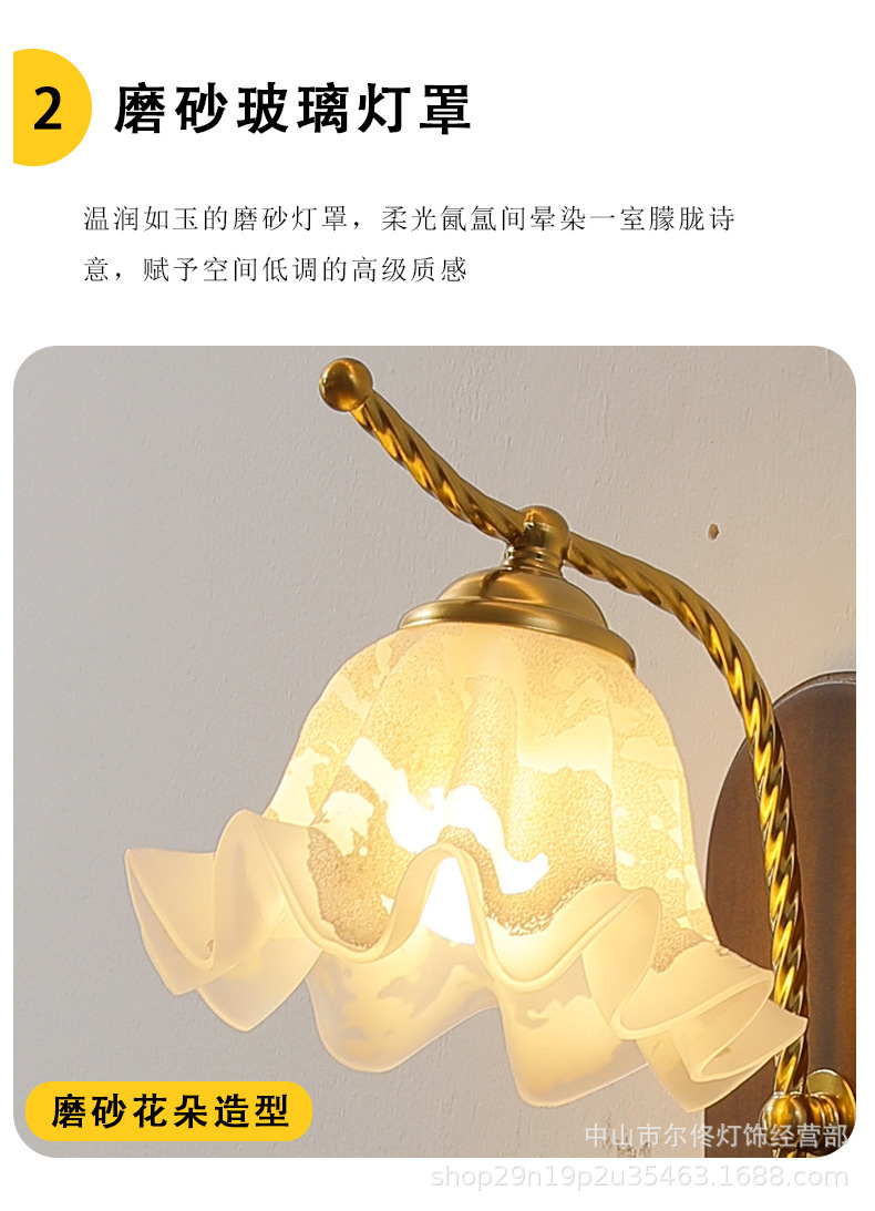 중세 스타일 거실 벽 램프 프랑스 복고풍 호두 유리 하이 엔드 따뜻한 침실 머리맡 복도 통로 눈 보호스토어 가기