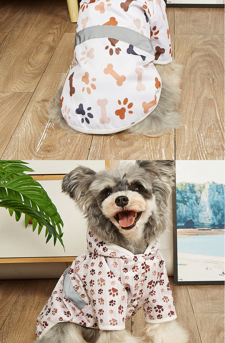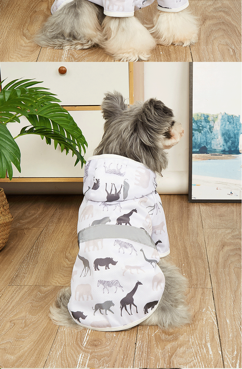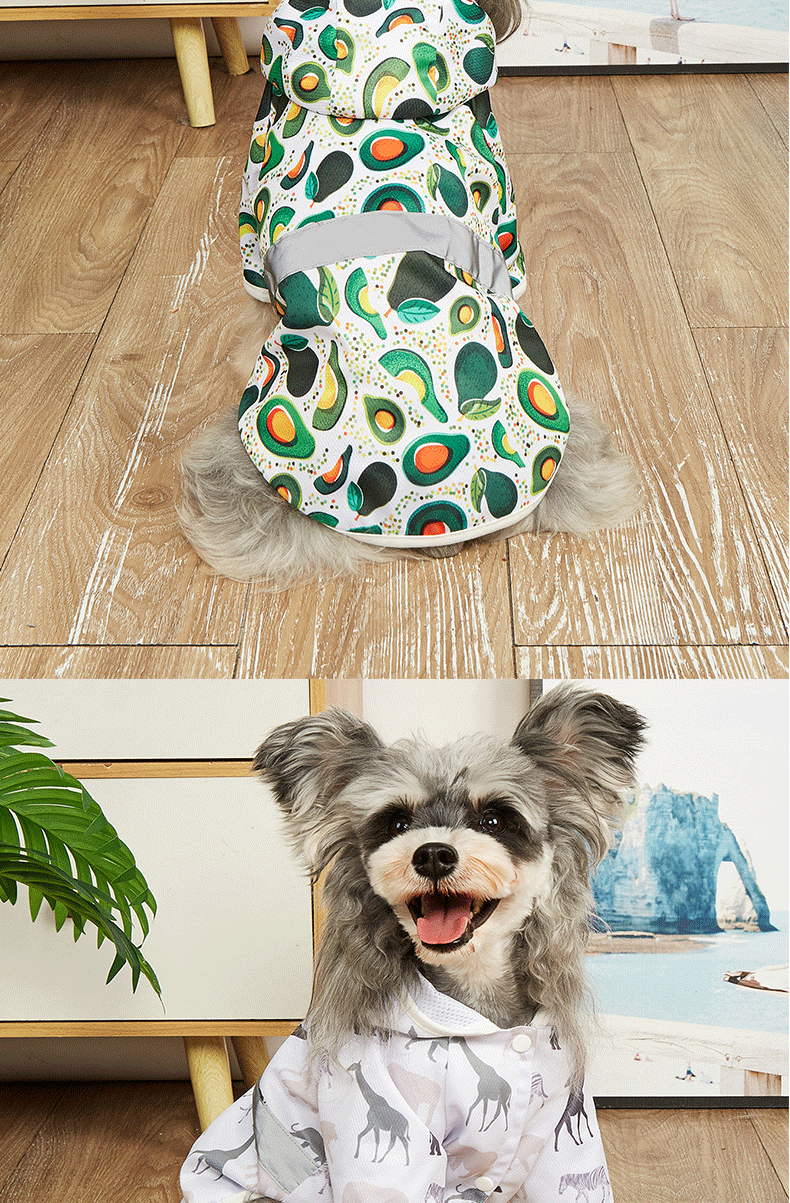 맞춤형 소스 공장 애완 동물 비옷 만화 인쇄 테디 빅시 작은 개 방수 코트 후드 개 비옷