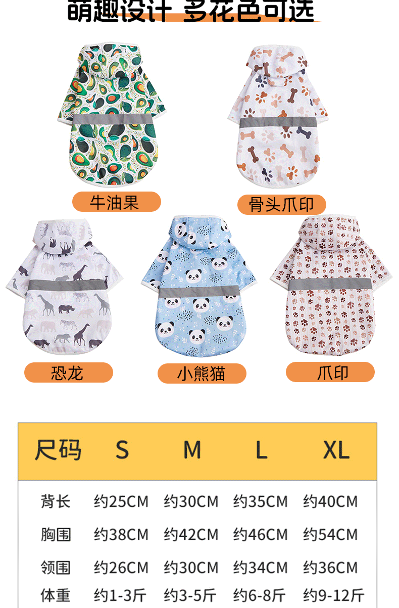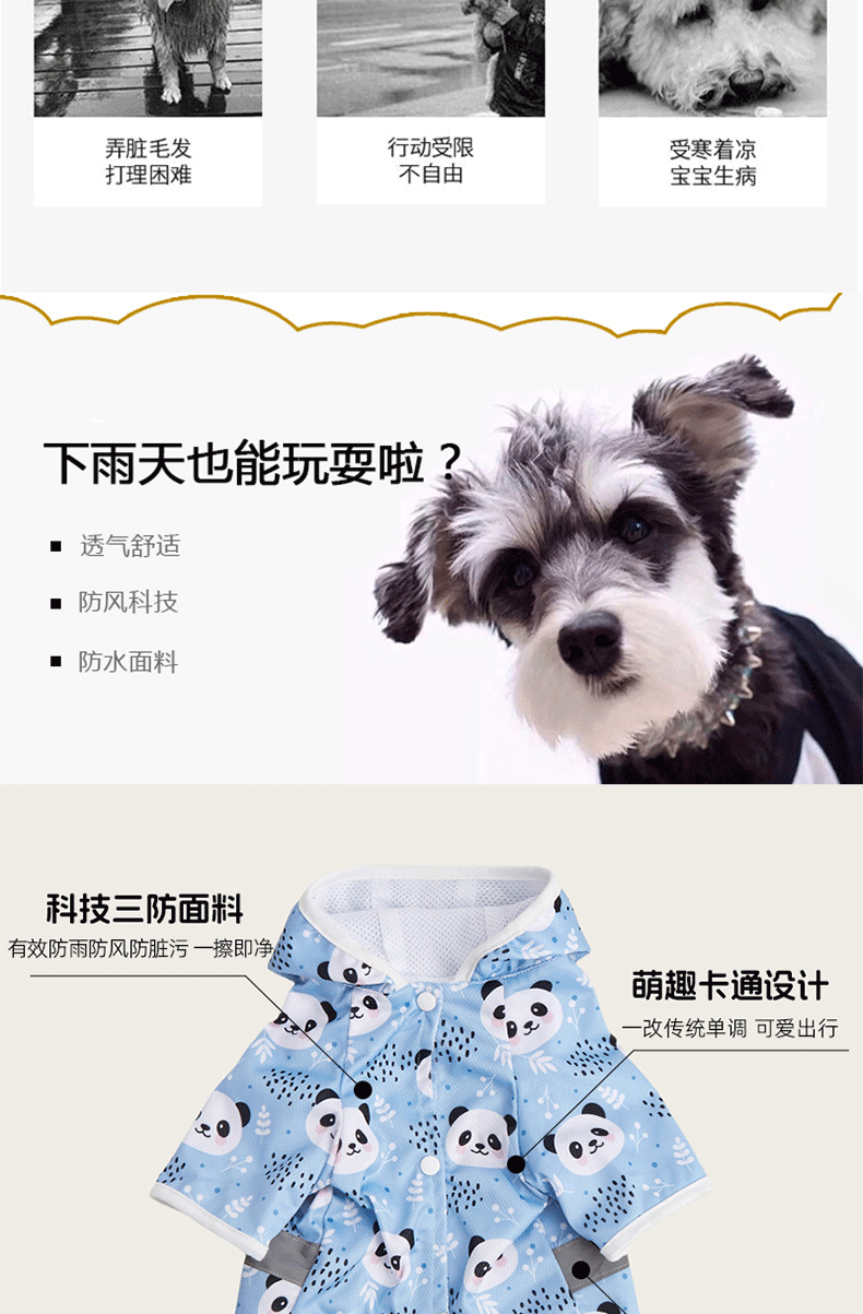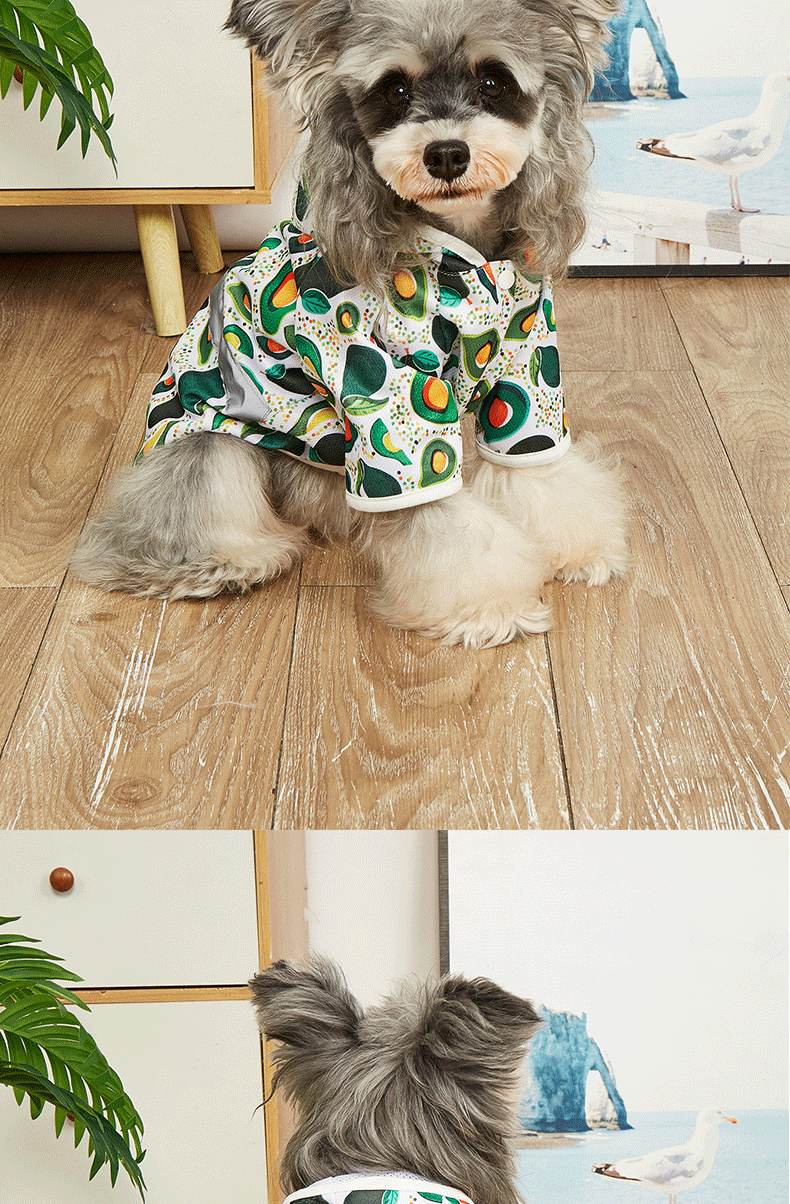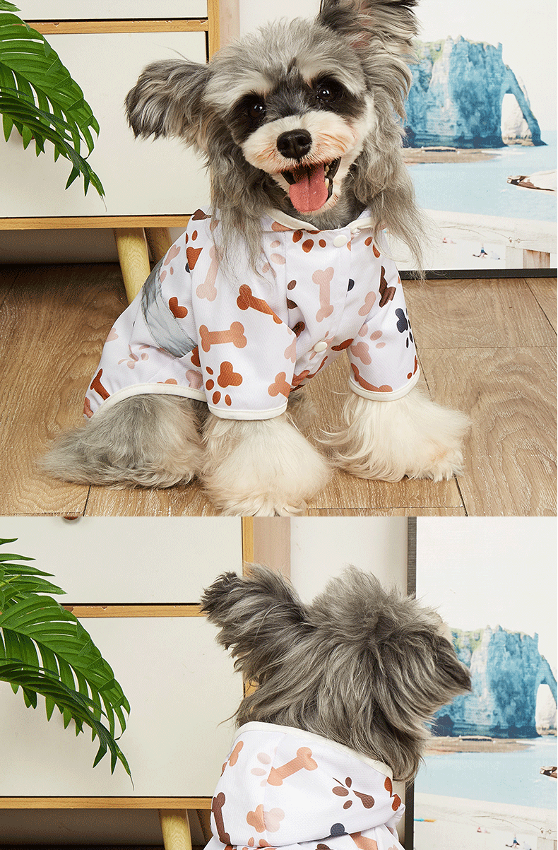 맞춤형 소스 공장 애완 동물 비옷 만화 인쇄 테디 빅시 작은 개 방수 코트 후드 개 비옷