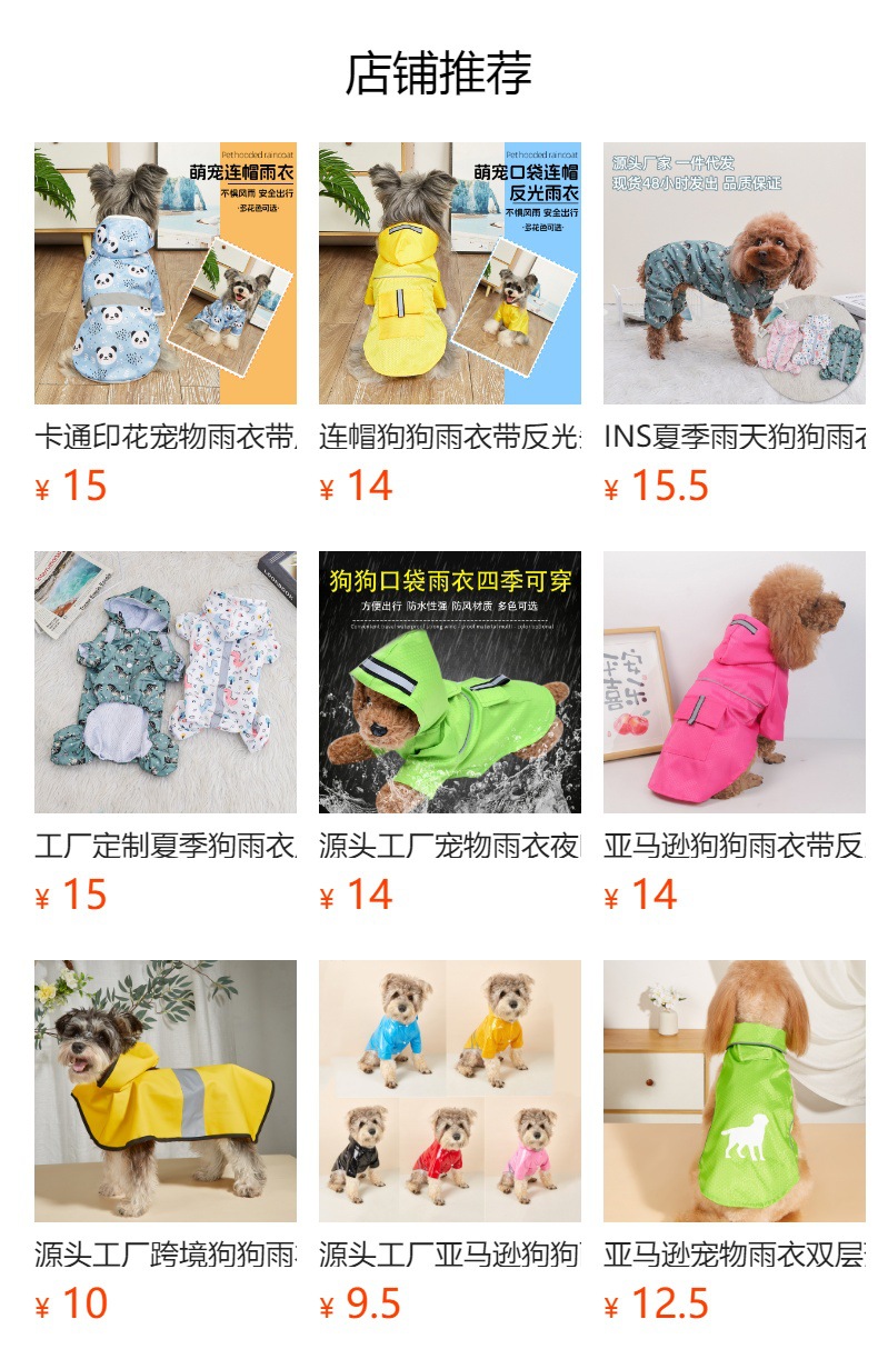 맞춤형 소스 공장 애완 동물 비옷 만화 인쇄 테디 빅시 작은 개 방수 코트 후드 개 비옷스토어 가기