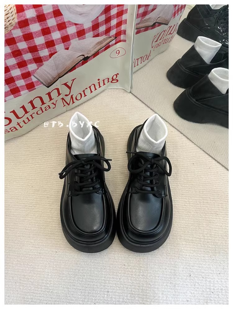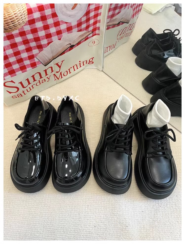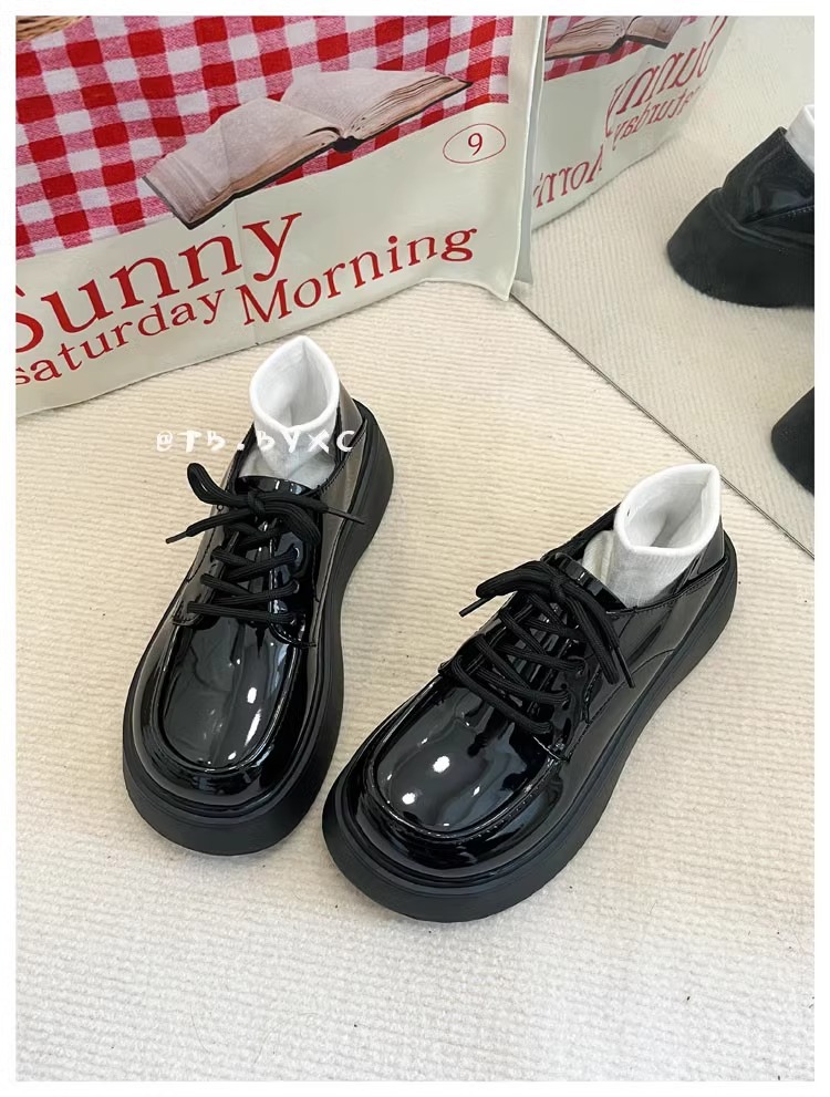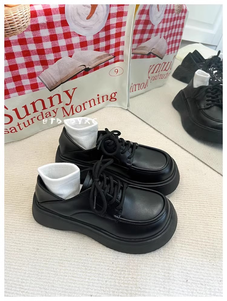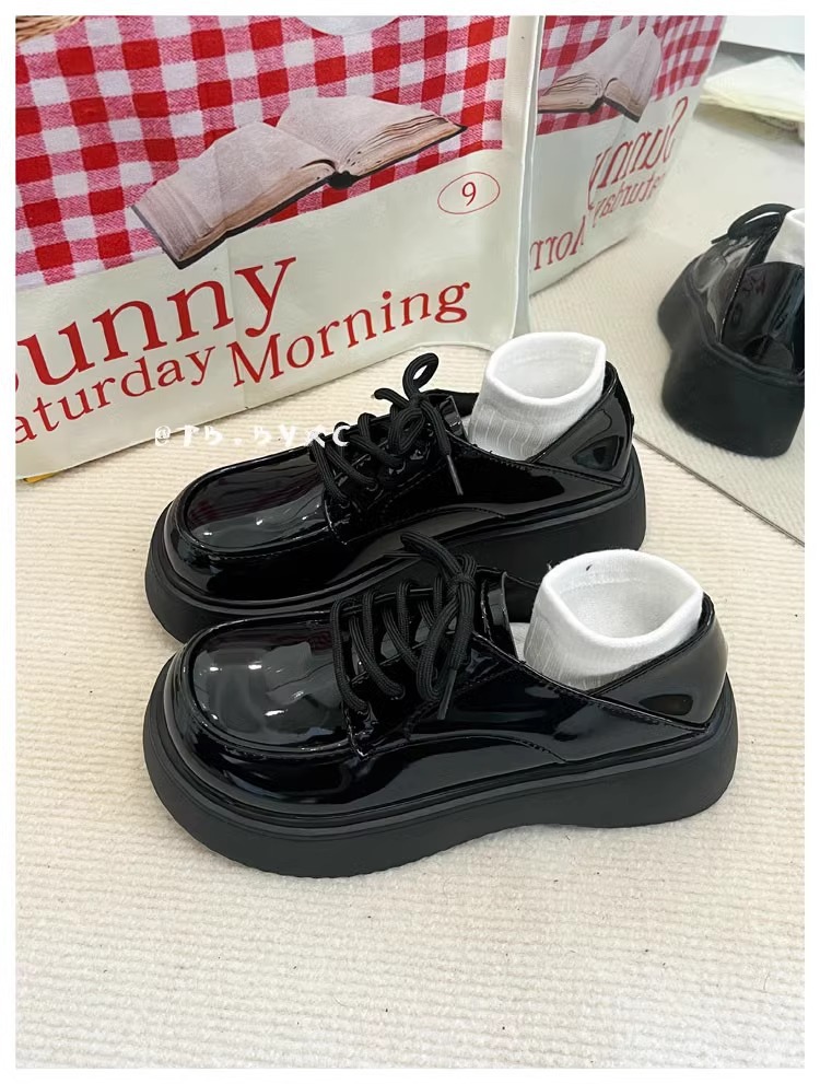 여성을위한 검은 영국 스타일의 작은 가죽 신발 새로운 봄, 가을 다목적 복고풍 두꺼운 밑창 높이 증가 메리 제인 신발 로퍼