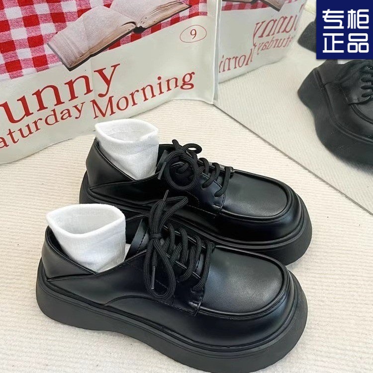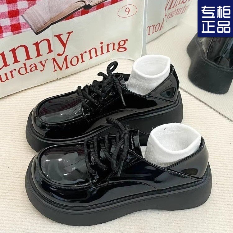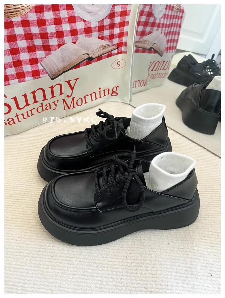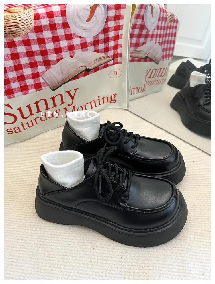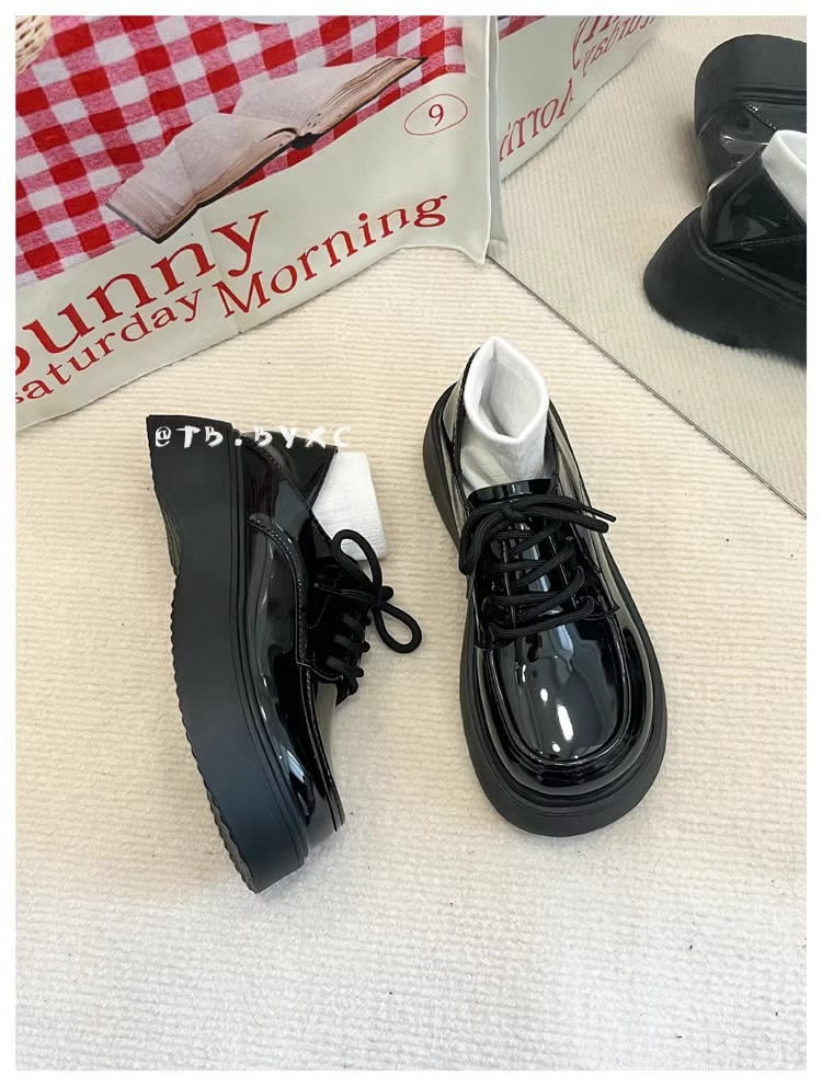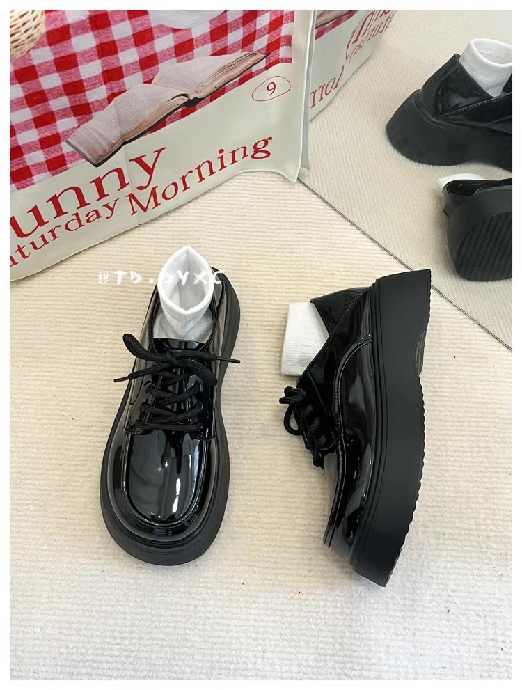 여성을위한 검은 영국 스타일의 작은 가죽 신발 새로운 봄, 가을 다목적 복고풍 두꺼운 밑창 높이 증가 메리 제인 신발 로퍼스토어 가기