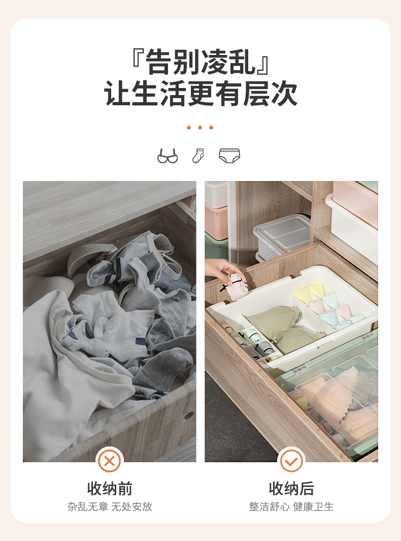 Wanpai 속옷 보관 상자 가정 학생 기숙사 칸막이 3-in-1 속옷, 속옷 및 양말 기숙사 보관함스토어 가기