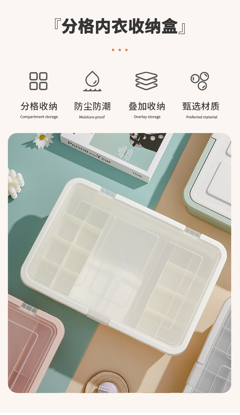 Wanpai 속옷 보관 상자 가정 학생 기숙사 칸막이 3-in-1 속옷, 속옷 및 양말 기숙사 보관함