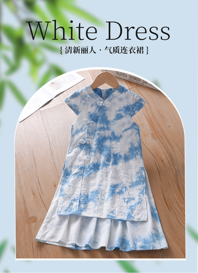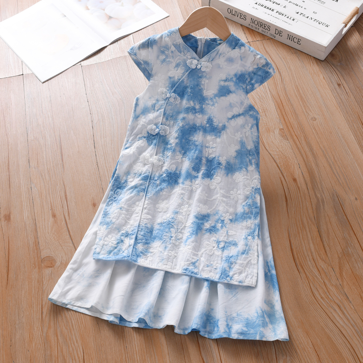 윈난 고대 넥타이-염생 원피스 새 중국 어린이 한후 여름 수놓은 청삼 바느질 공주 치마스토어 가기