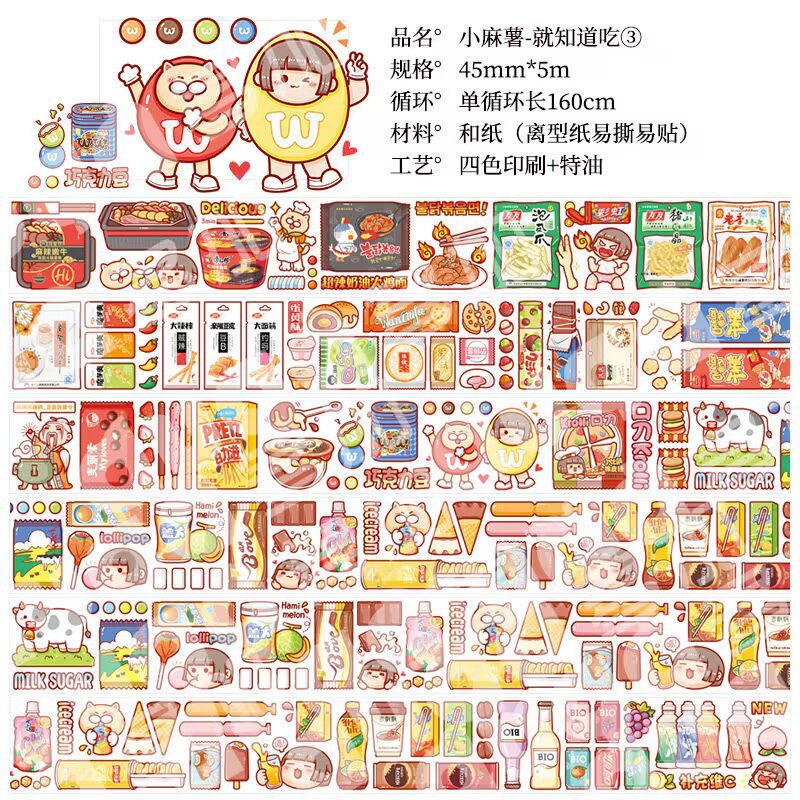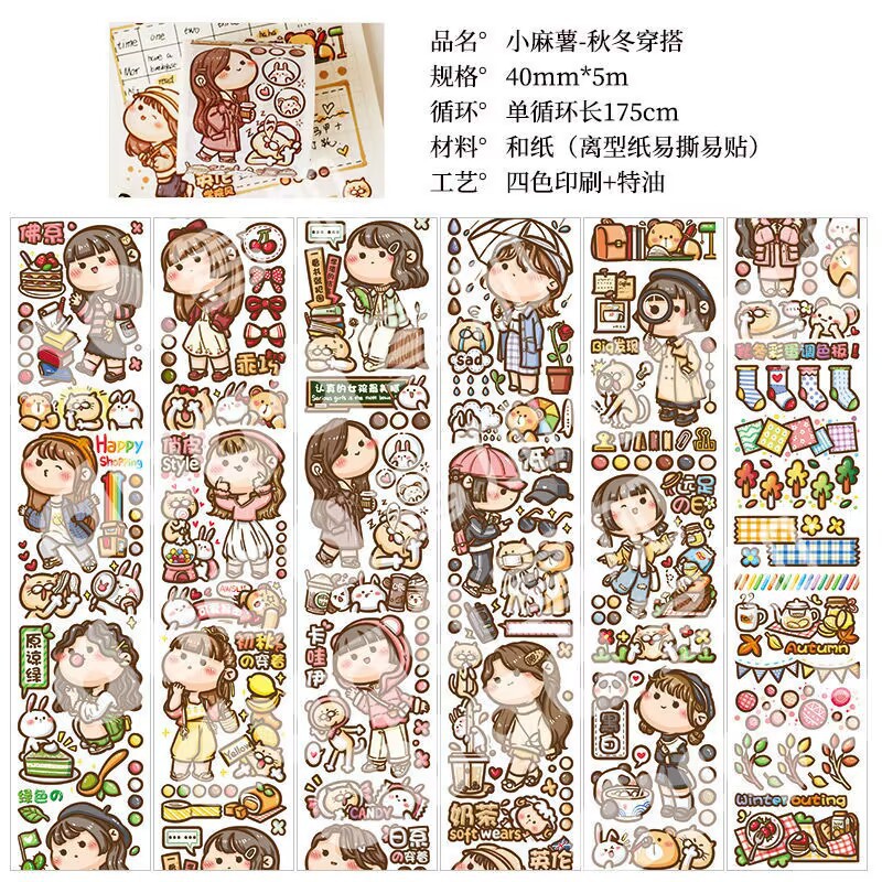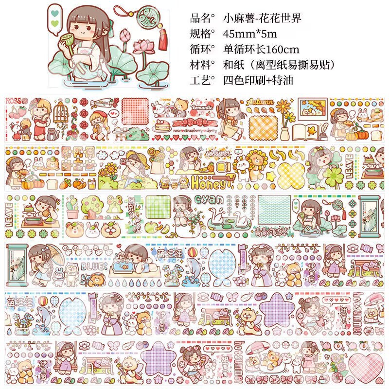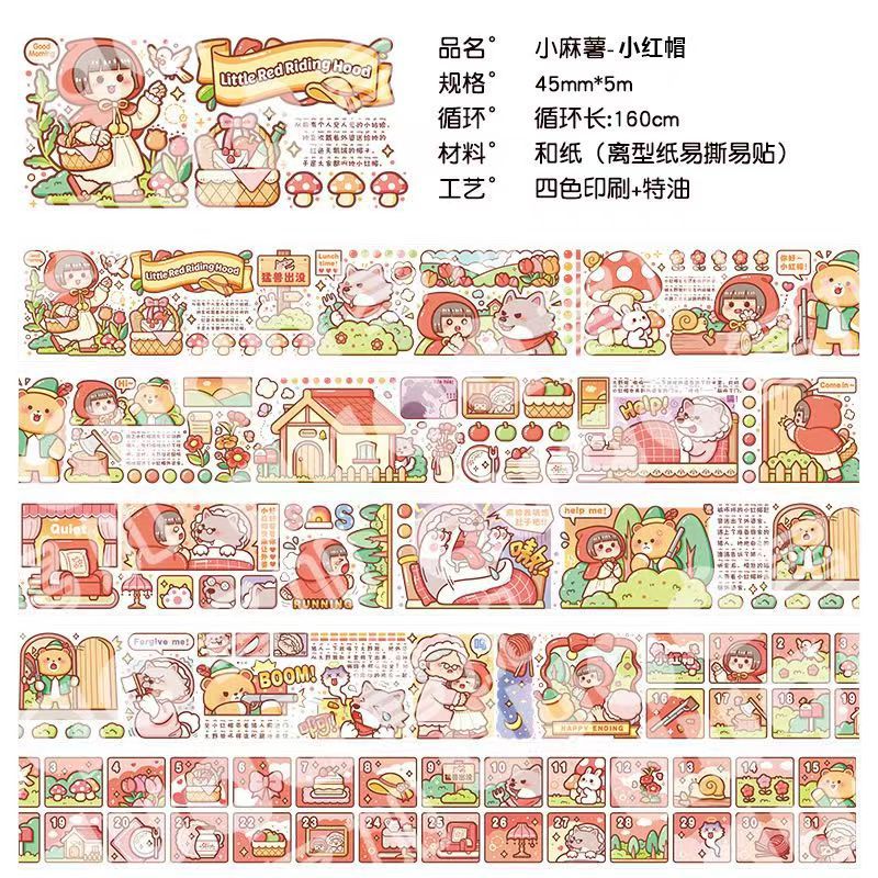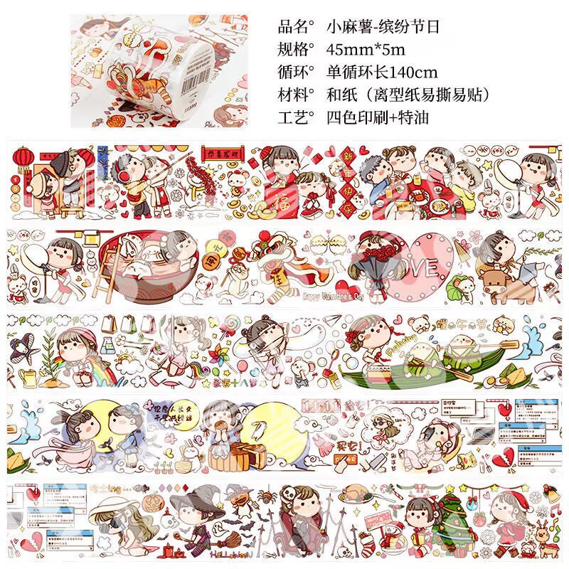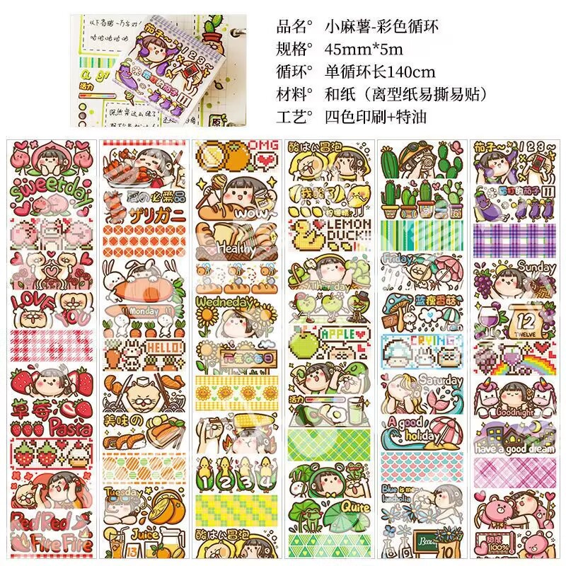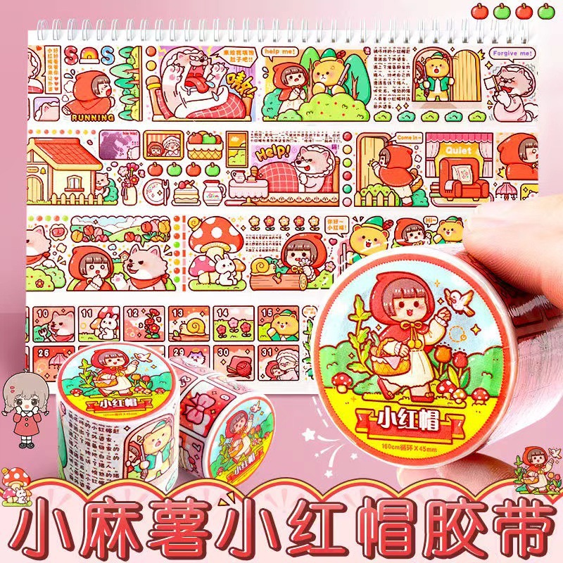 작은 감자 새로운 우유 차 카니발과 종이 테이프 전체 롤 귀여운 만화 캐릭터 손 계정 그물 빨간 스티커 장식