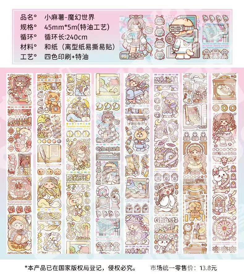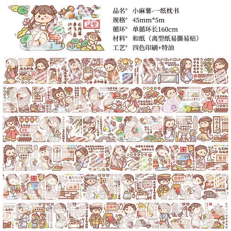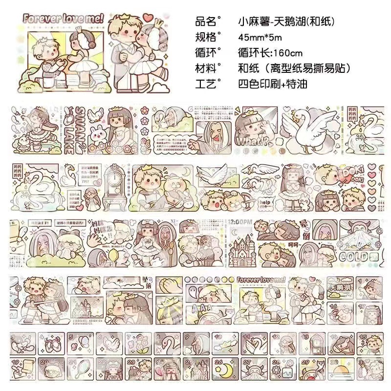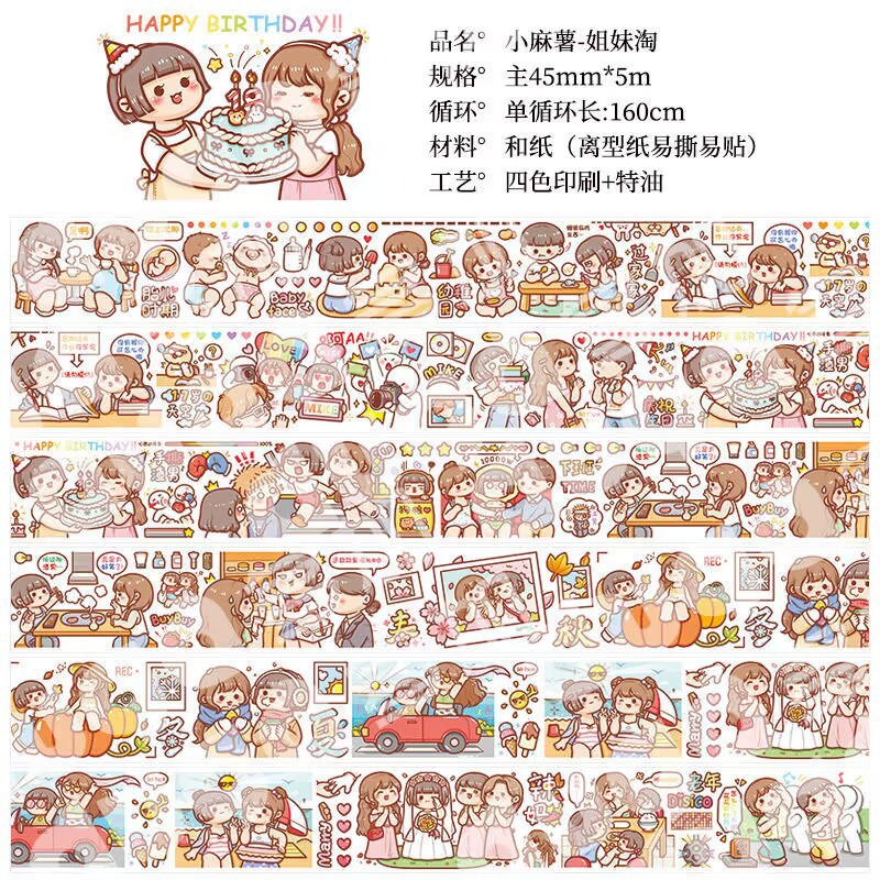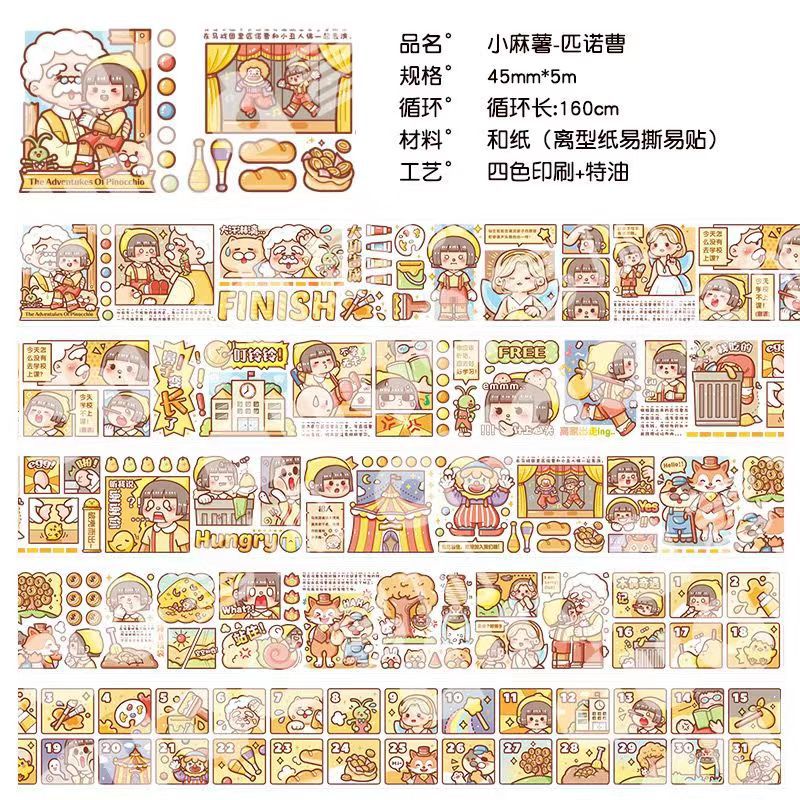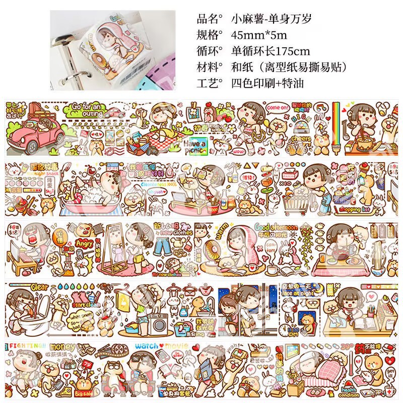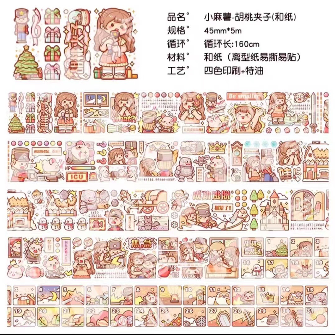 작은 감자 새로운 우유 차 카니발과 종이 테이프 전체 롤 귀여운 만화 캐릭터 손 계정 그물 빨간 스티커 장식