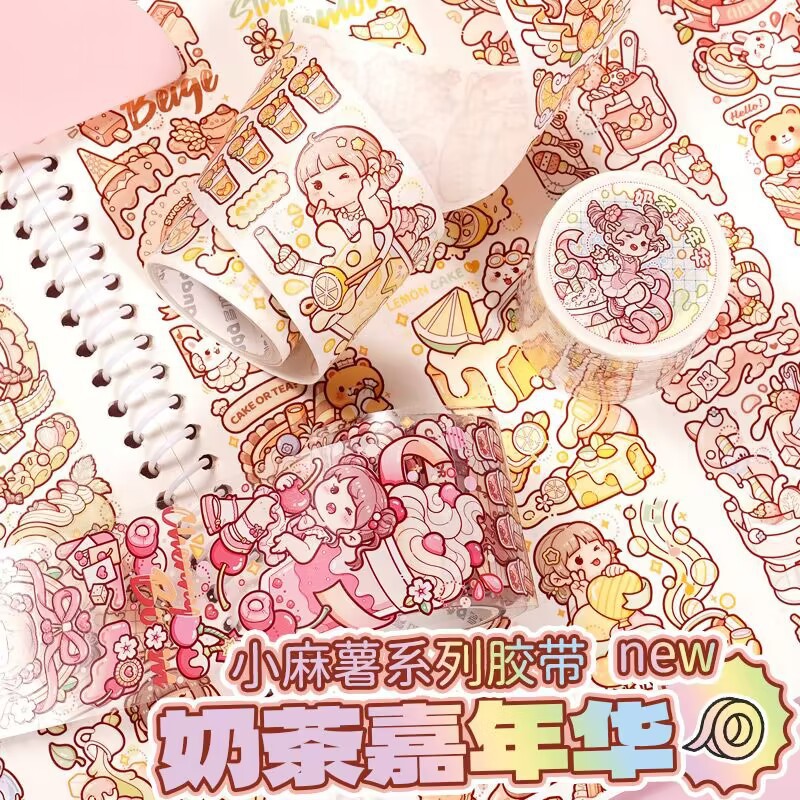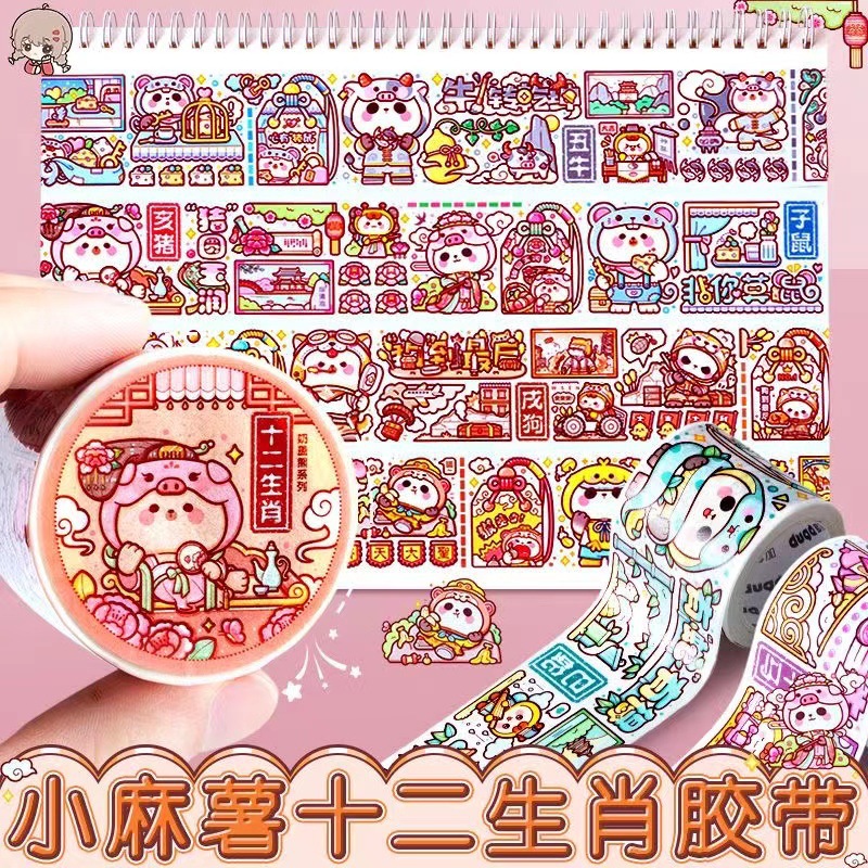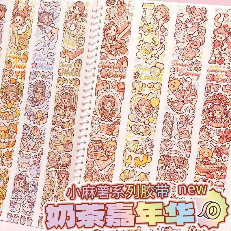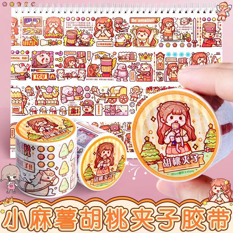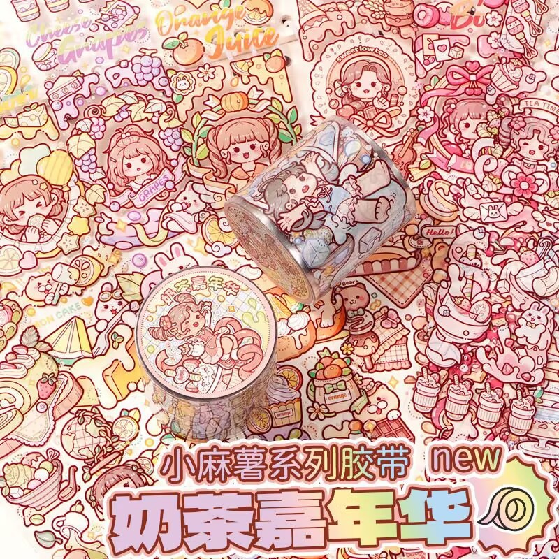 작은 감자 새로운 우유 차 카니발과 종이 테이프 전체 롤 귀여운 만화 캐릭터 손 계정 그물 빨간 스티커 장식스토어 가기