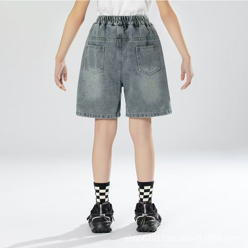 남학생 여름 얇은 데님 반바지 2025 새로운 도착 중학교 어린이 여름 착용 소년 여름 바지 유행 바지스토어 가기