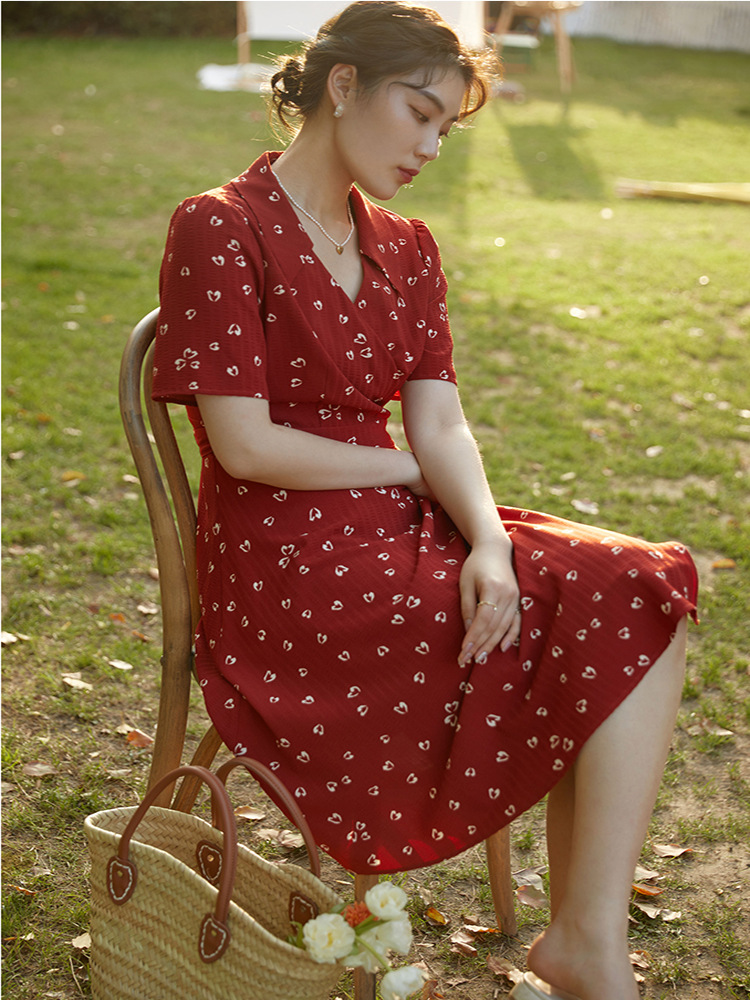 2023 사랑 패션 플러스 사이즈 레드 원피스 여성 여름 배 모양 통통녀 스커트 슬림 티 브레이크 스커트의 이름으로스토어 가기