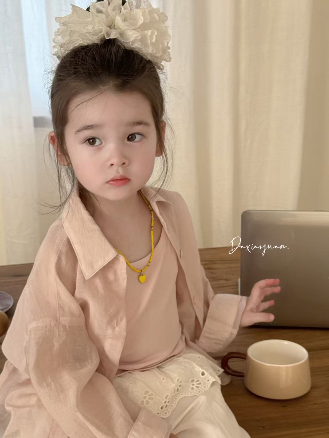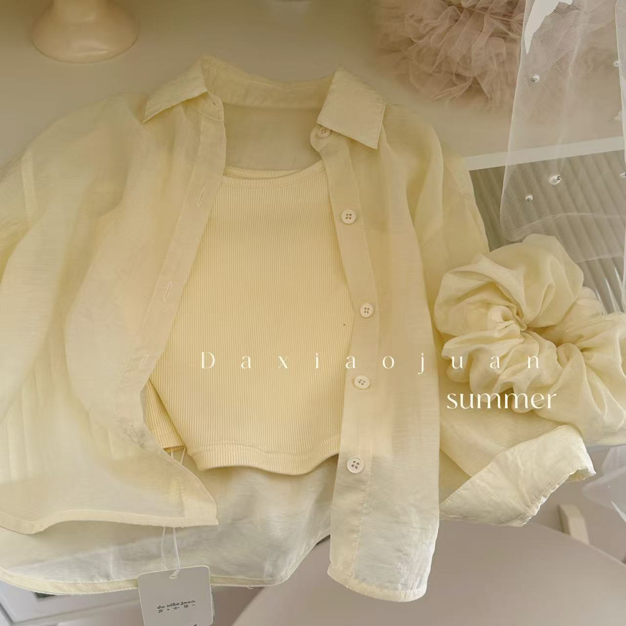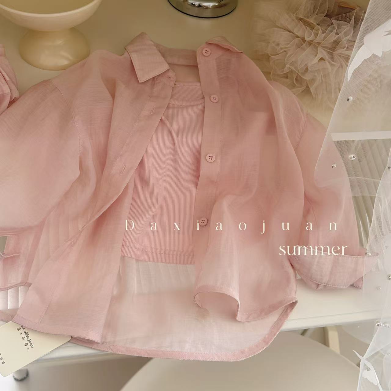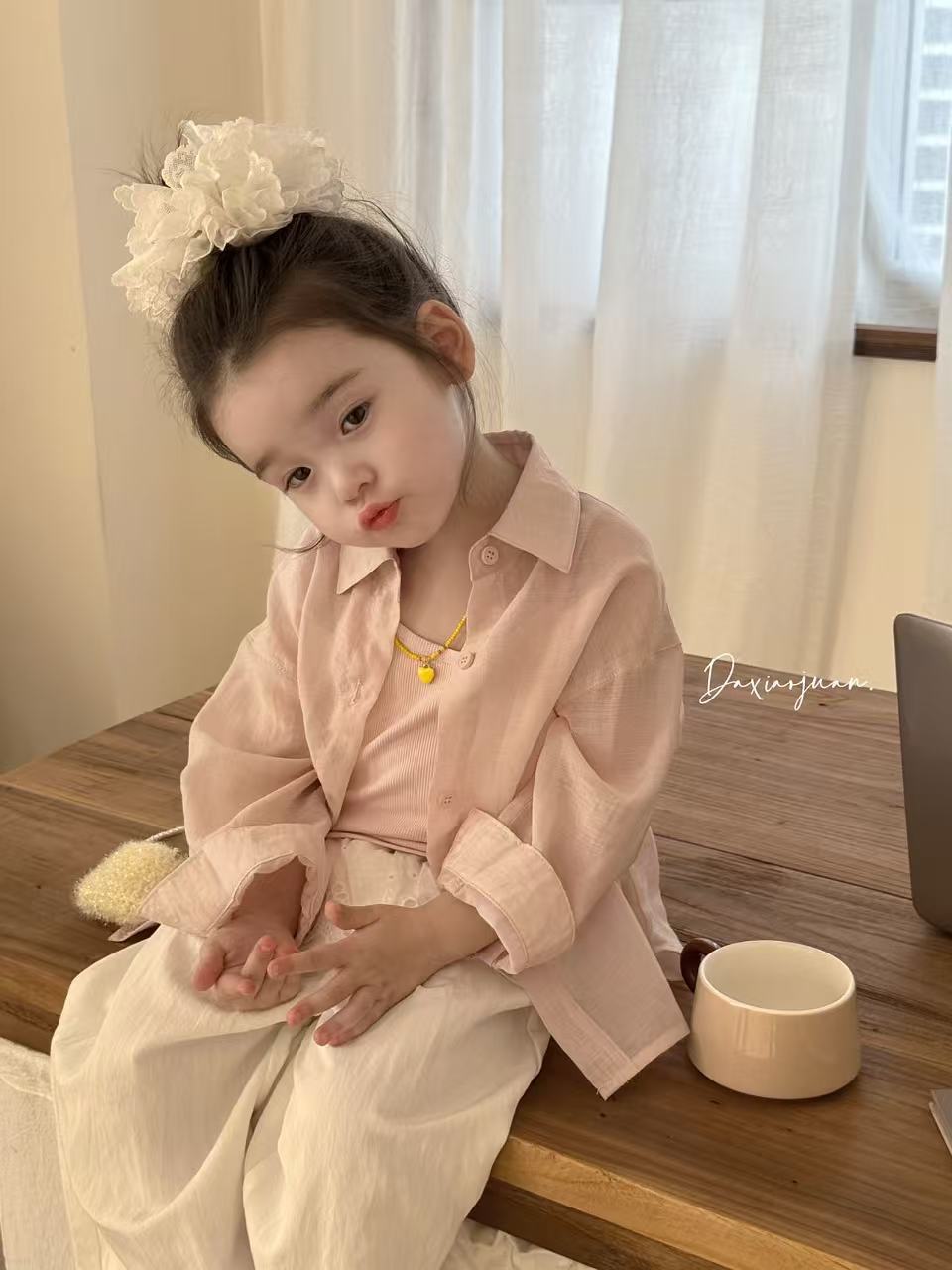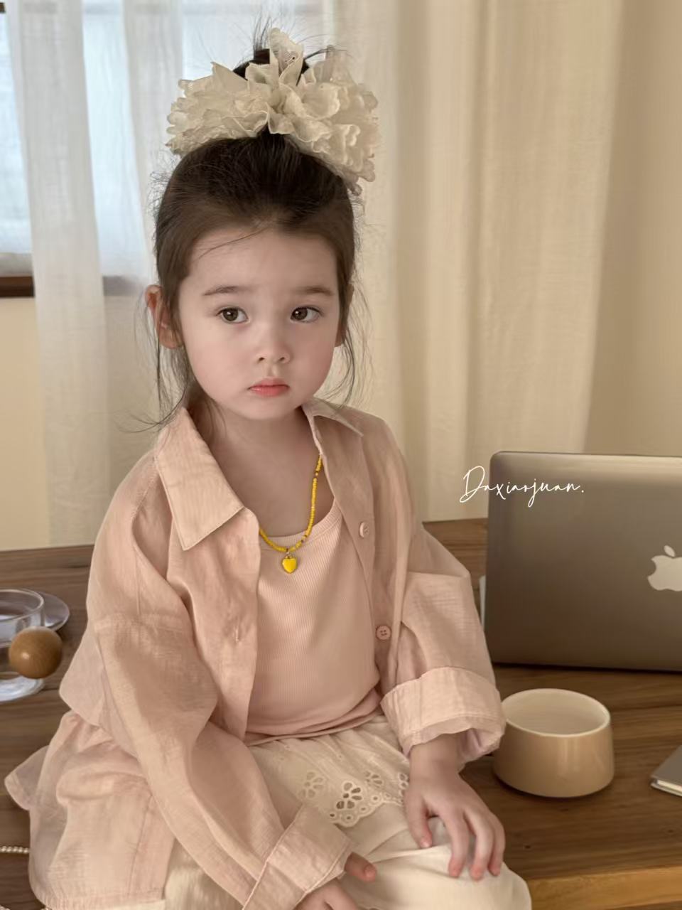 [사이즈 롤] 25 어린이 여름 새로운 솔리드 컬러 부모-자식 태양 보호 셔츠 슬링 캐주얼 투피스 세트 헤드 플라워
