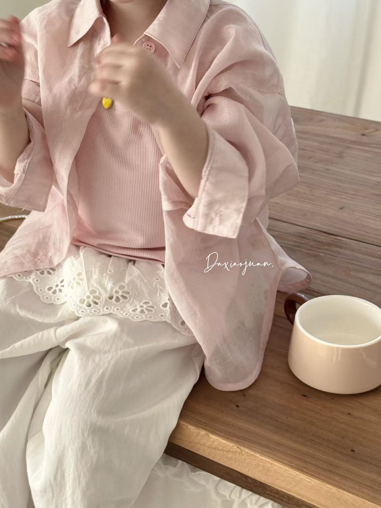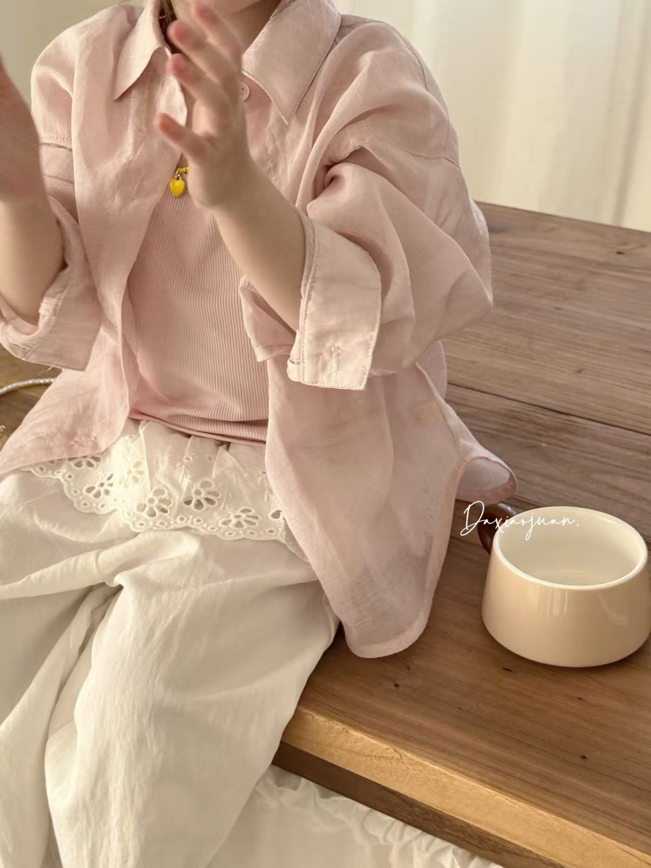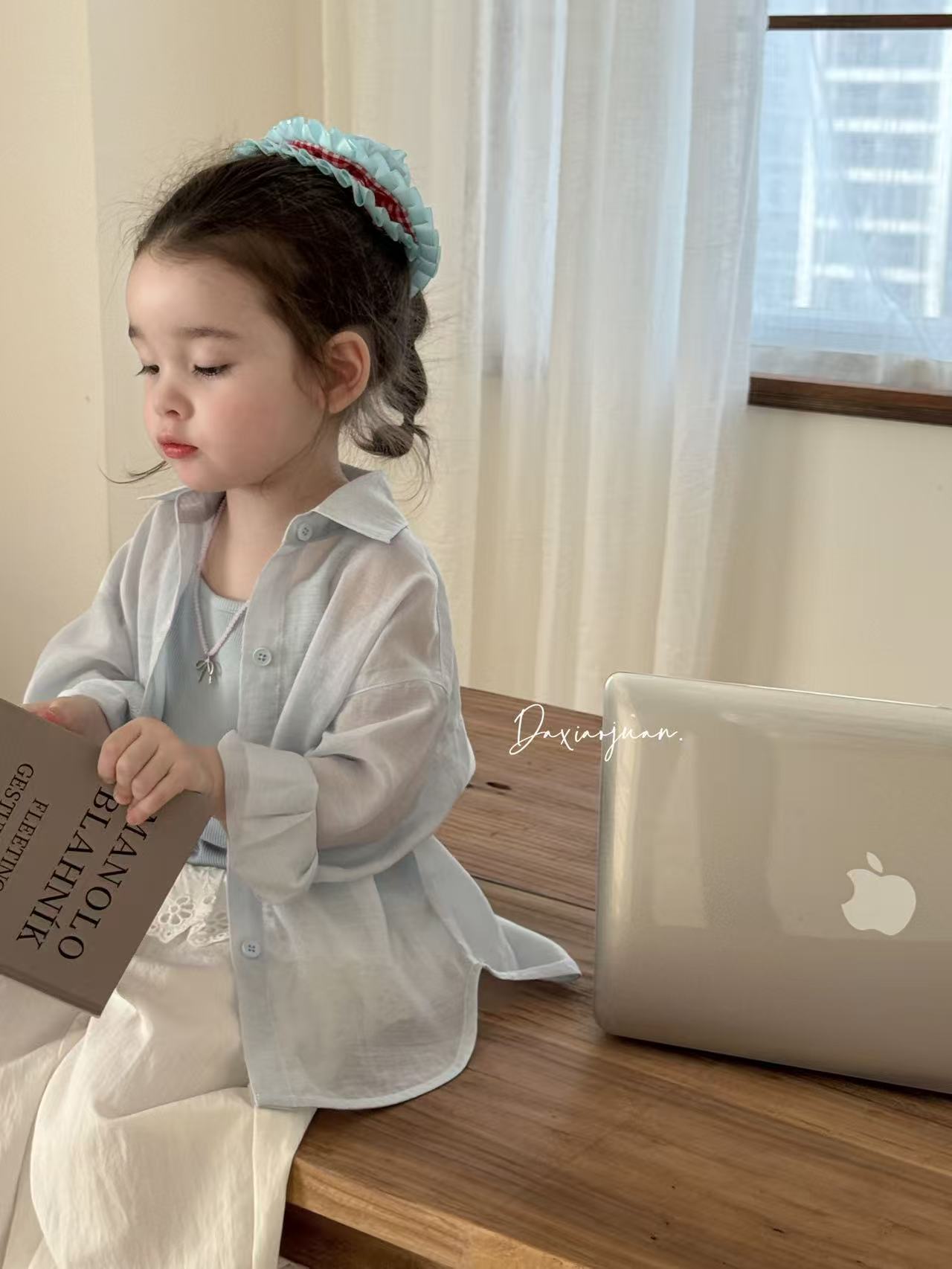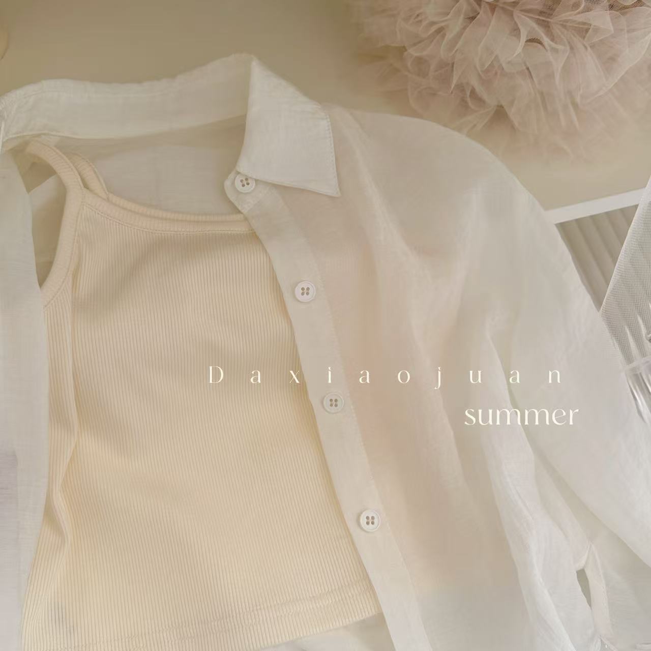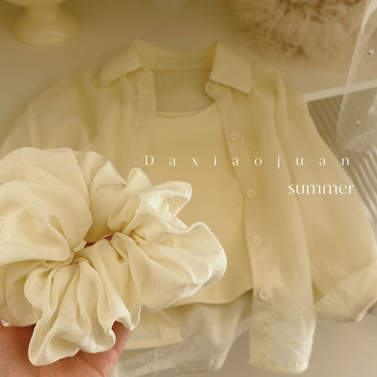 [사이즈 롤] 25 어린이 여름 새로운 솔리드 컬러 부모-자식 태양 보호 셔츠 슬링 캐주얼 투피스 세트 헤드 플라워