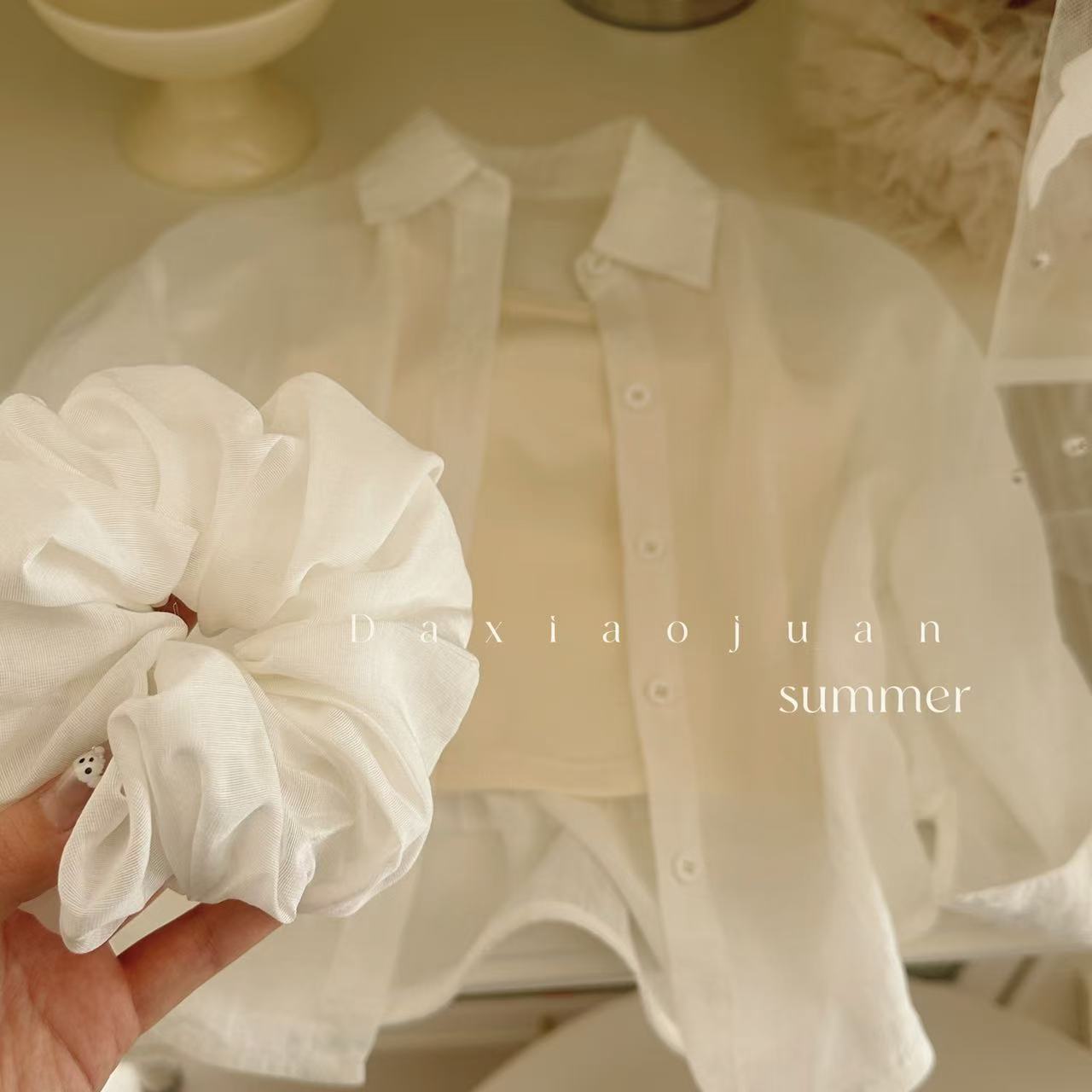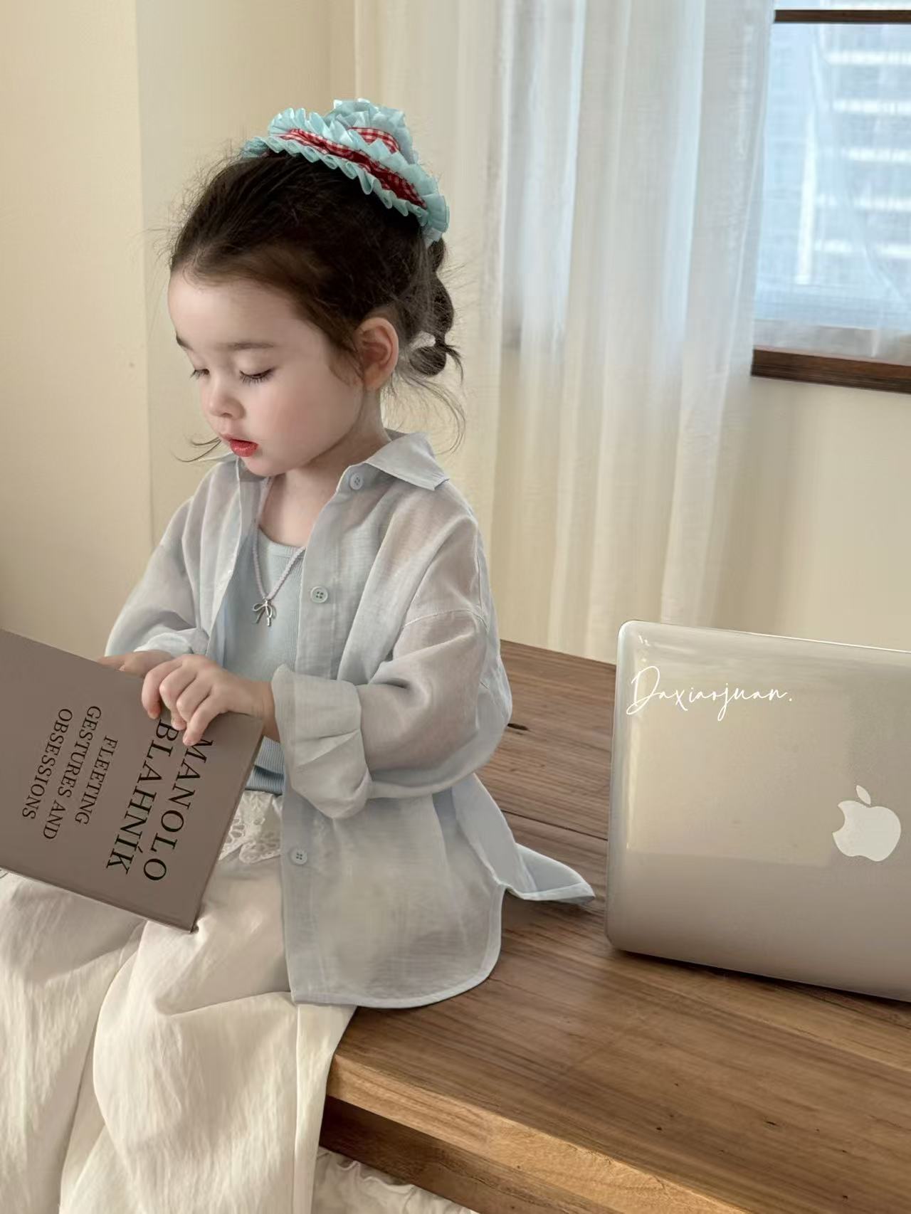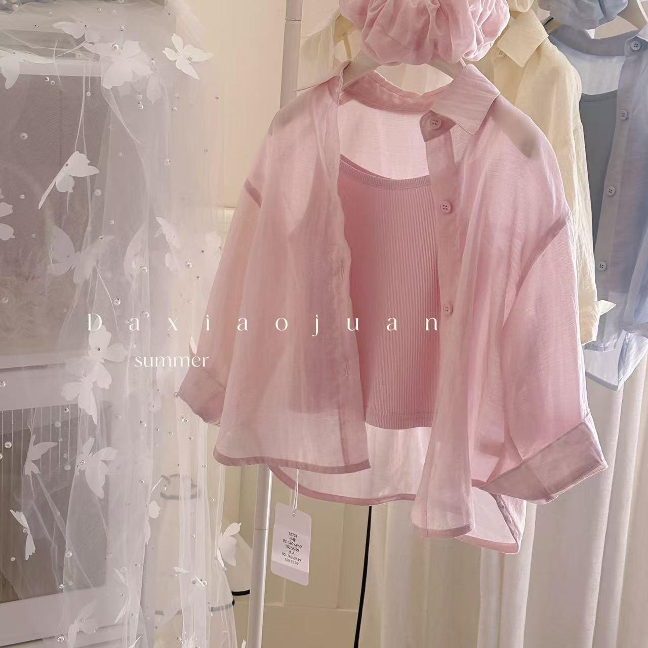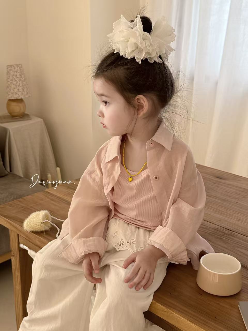 [사이즈 롤] 25 어린이 여름 새로운 솔리드 컬러 부모-자식 태양 보호 셔츠 슬링 캐주얼 투피스 세트 헤드 플라워