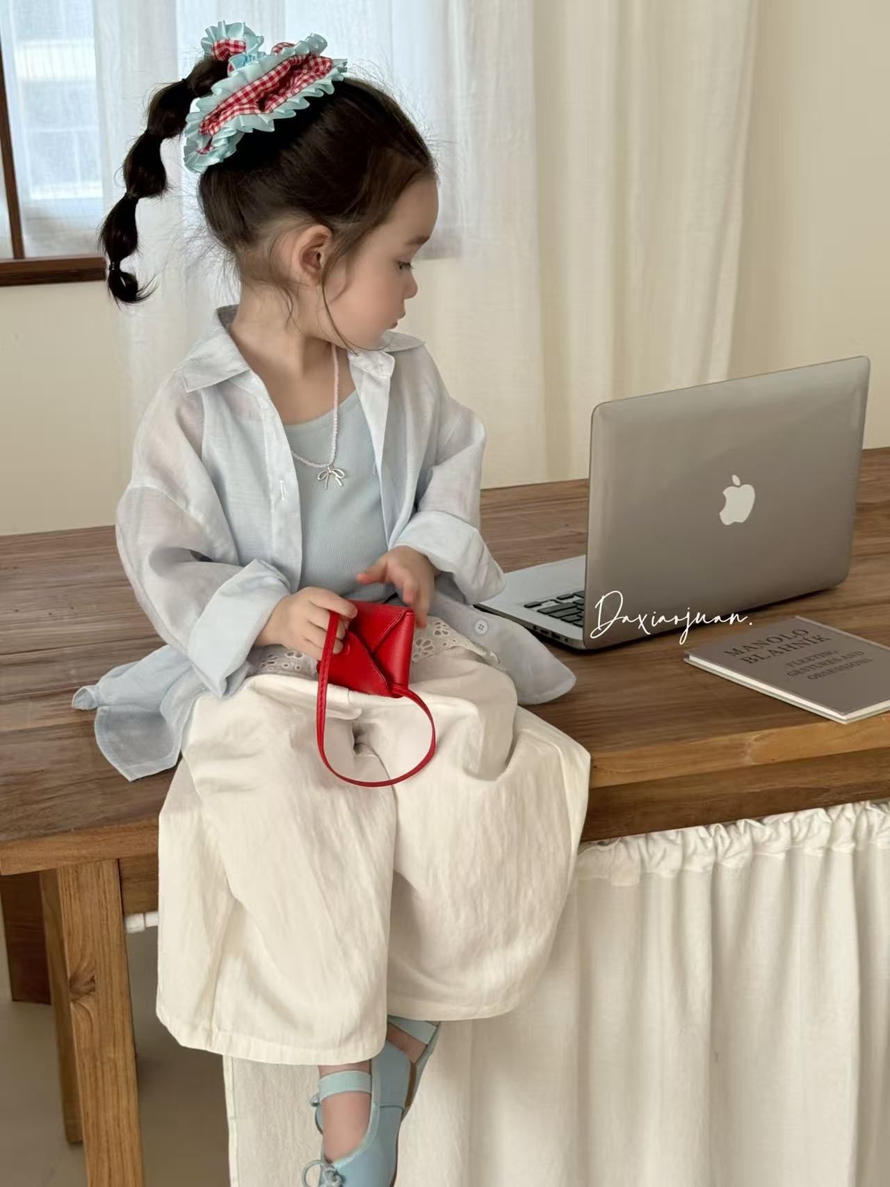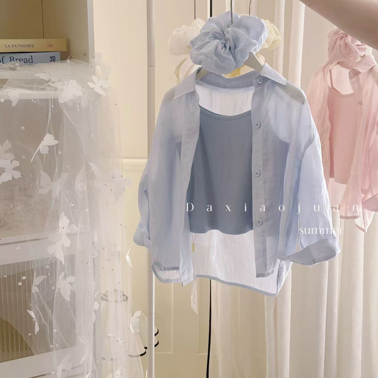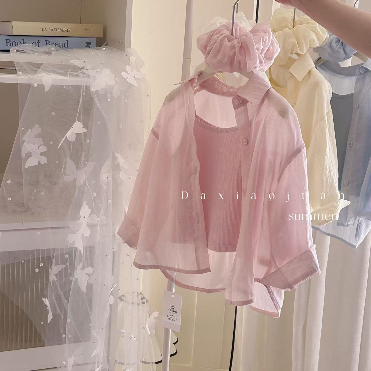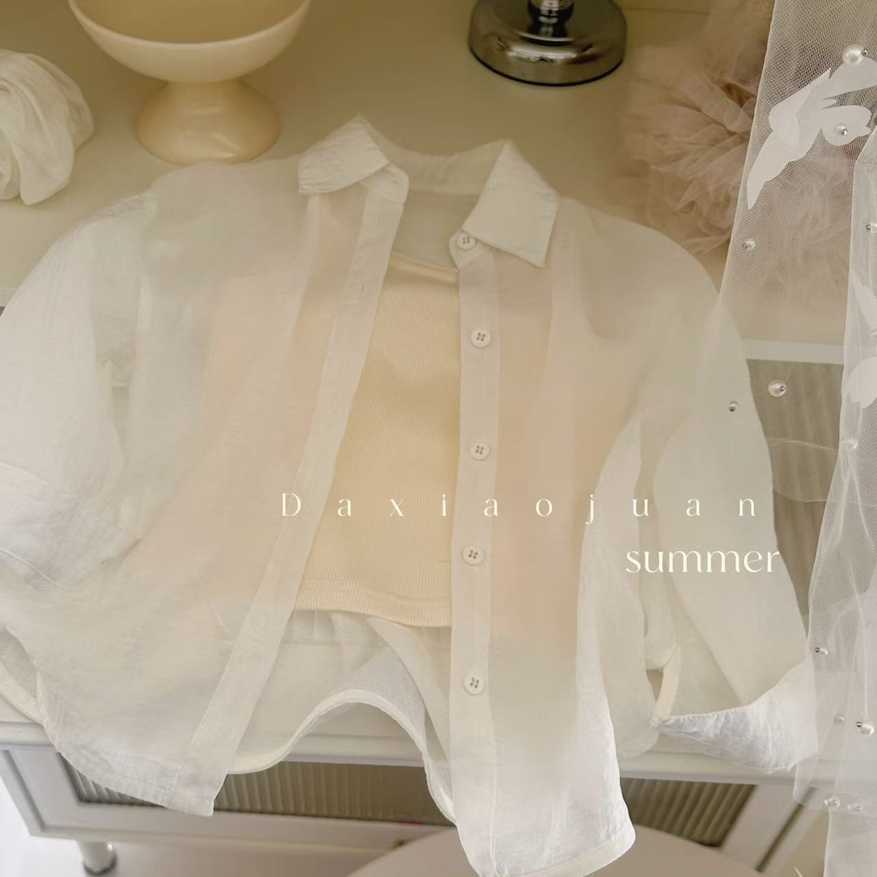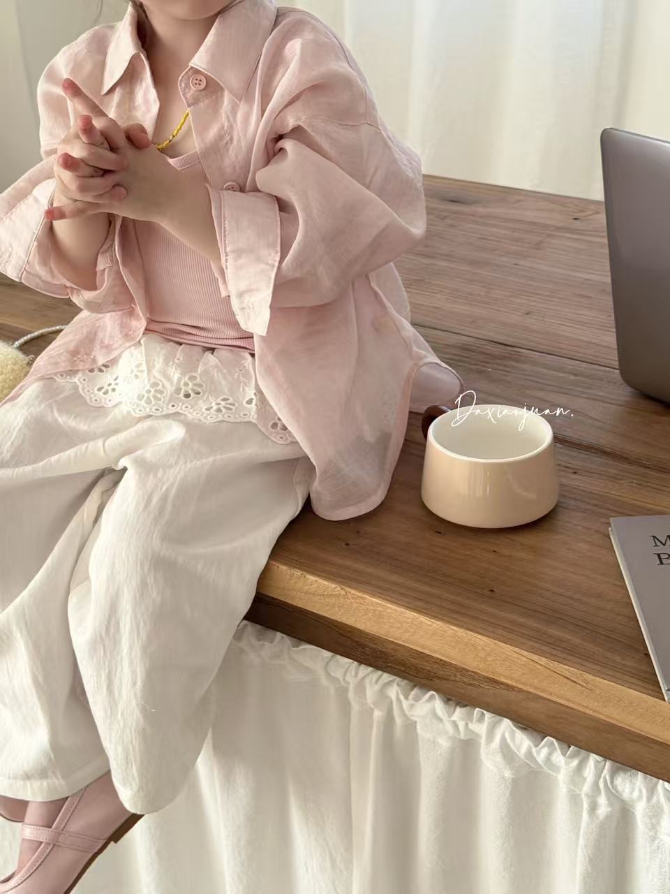 [사이즈 롤] 25 어린이 여름 새로운 솔리드 컬러 부모-자식 태양 보호 셔츠 슬링 캐주얼 투피스 세트 헤드 플라워