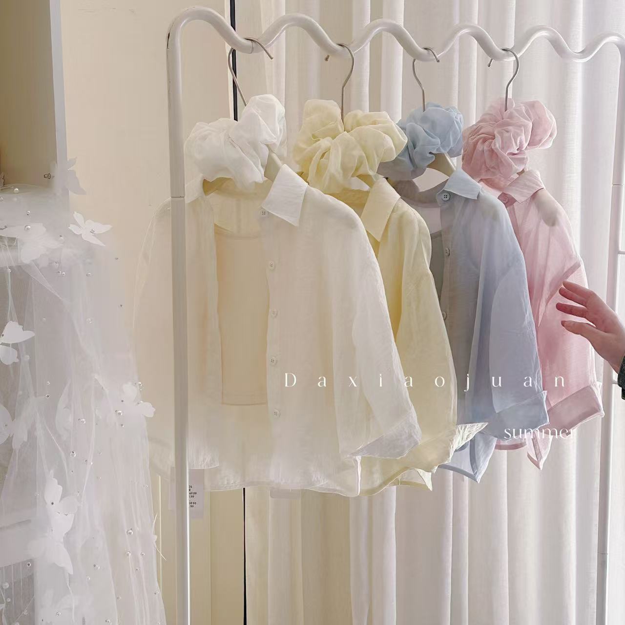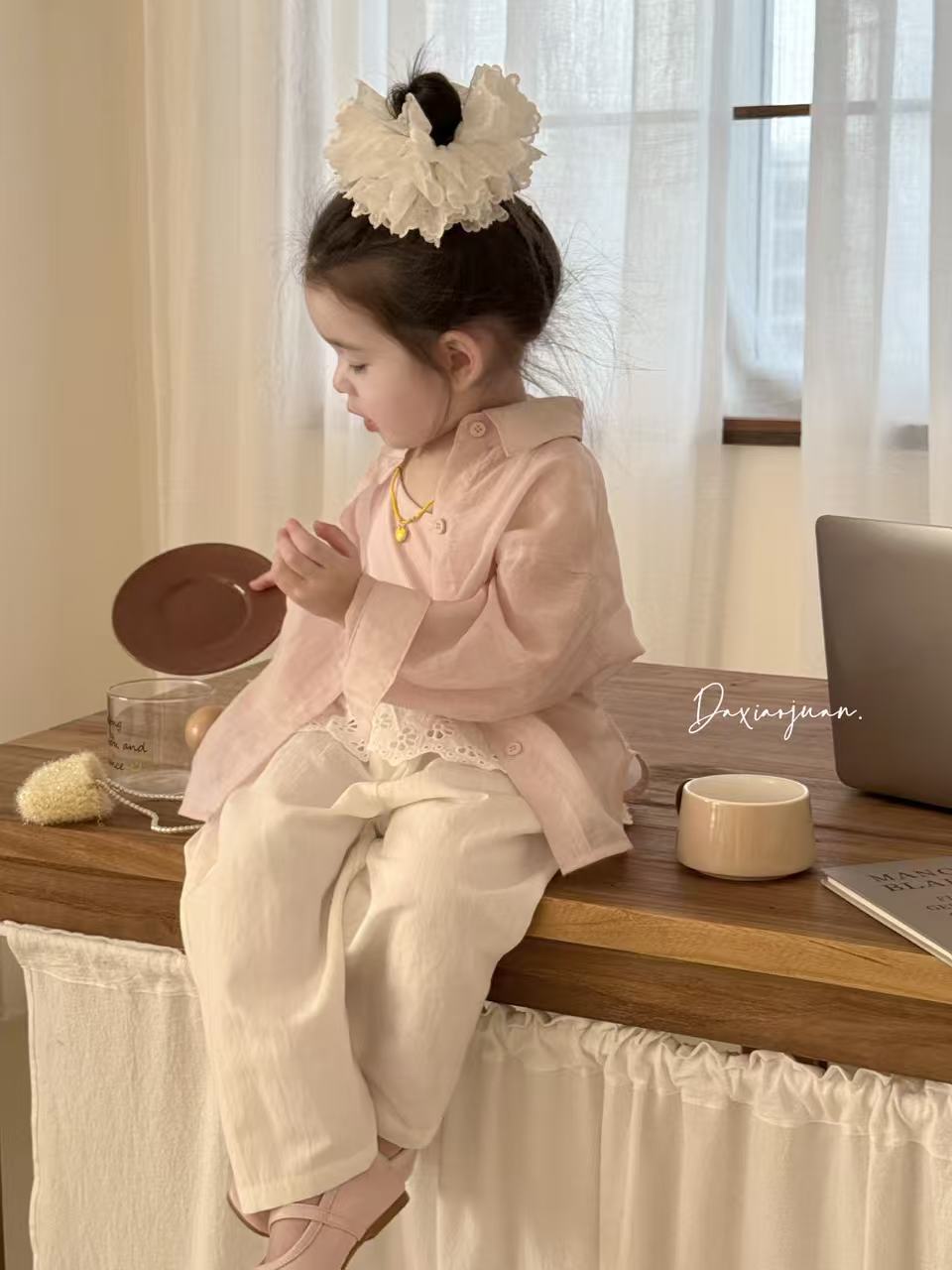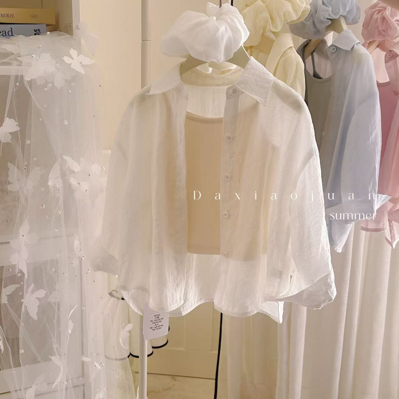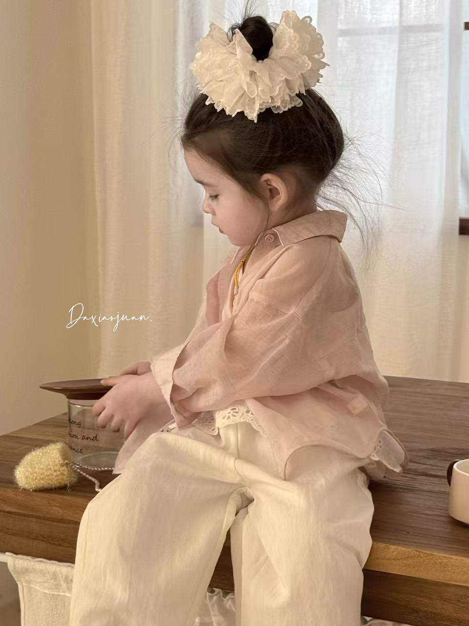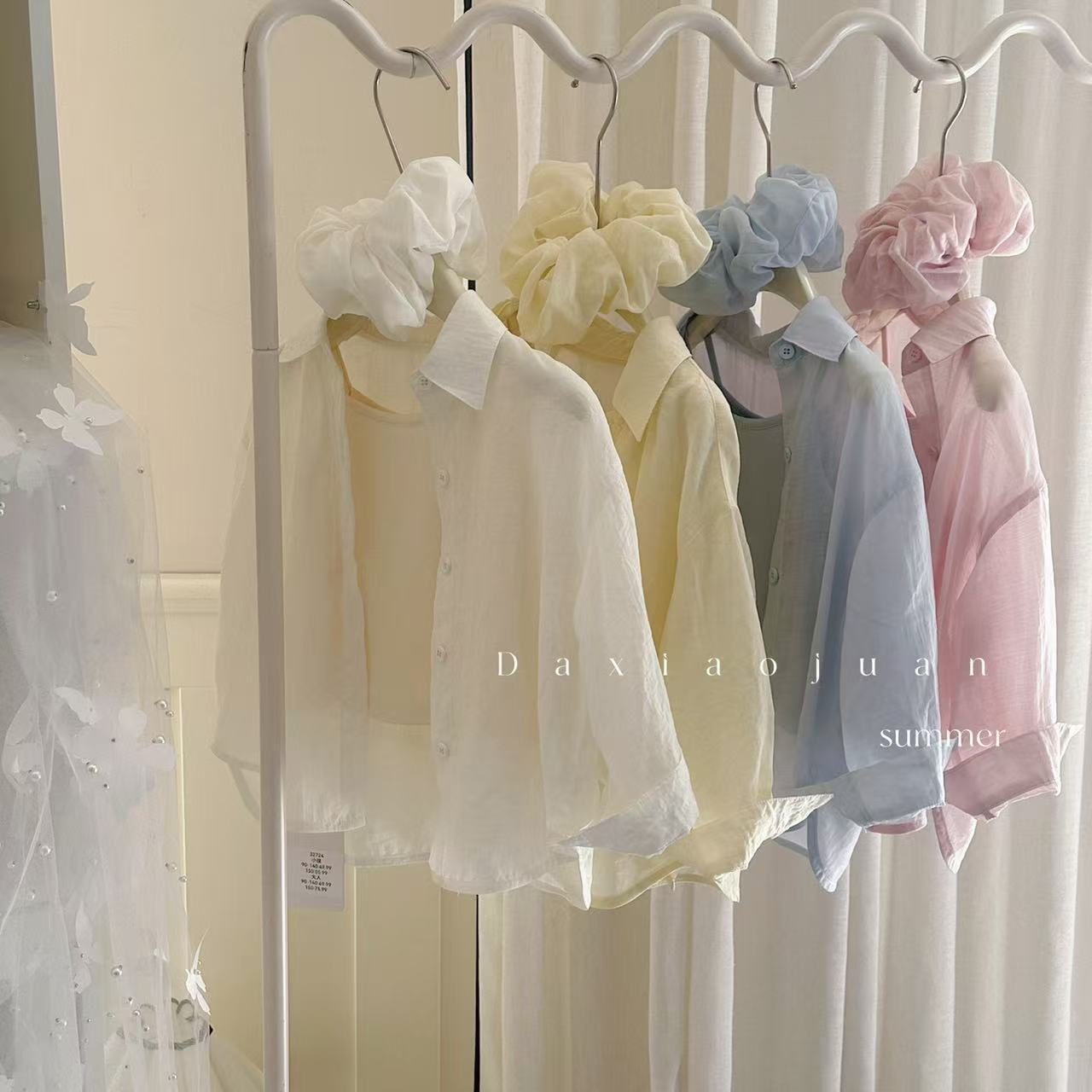 [사이즈 롤] 25 어린이 여름 새로운 솔리드 컬러 부모-자식 태양 보호 셔츠 슬링 캐주얼 투피스 세트 헤드 플라워