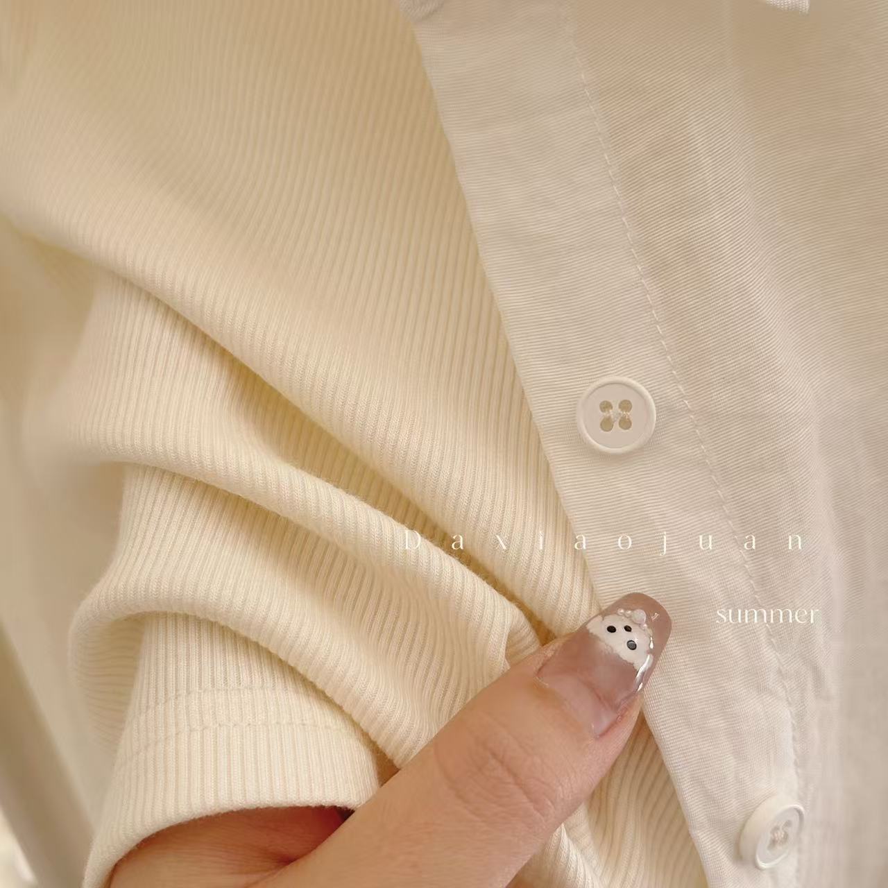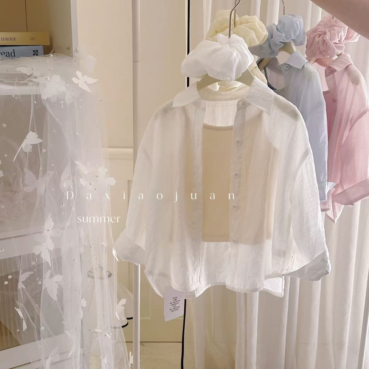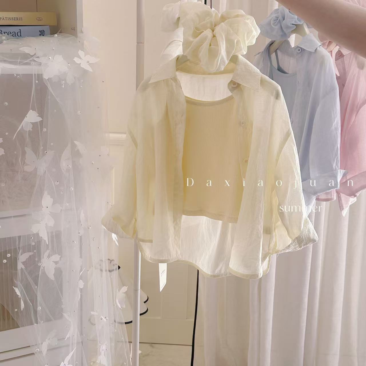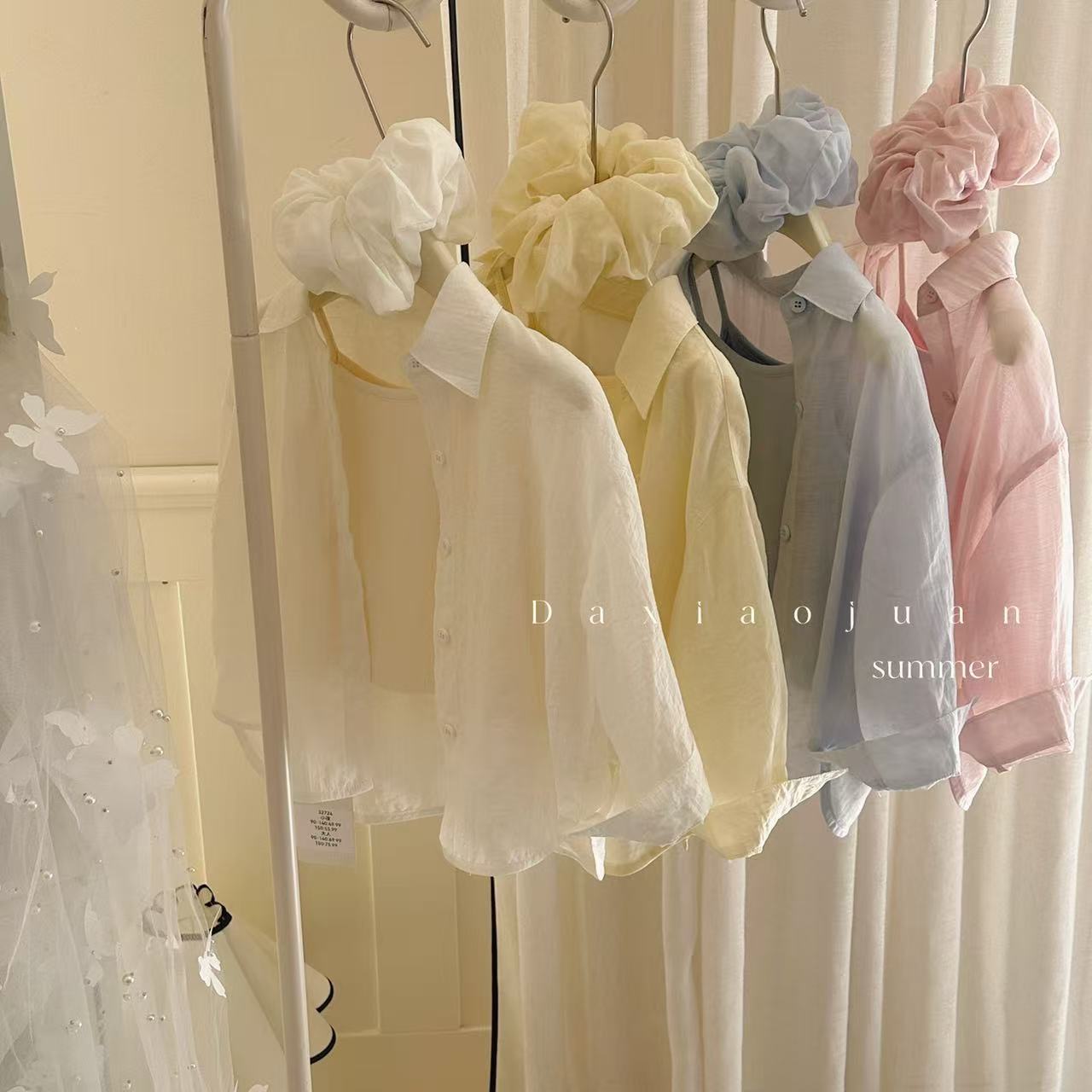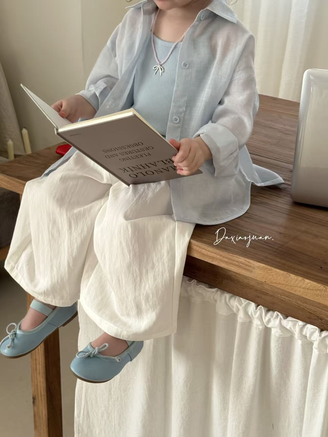 [사이즈 롤] 25 어린이 여름 새로운 솔리드 컬러 부모-자식 태양 보호 셔츠 슬링 캐주얼 투피스 세트 헤드 플라워