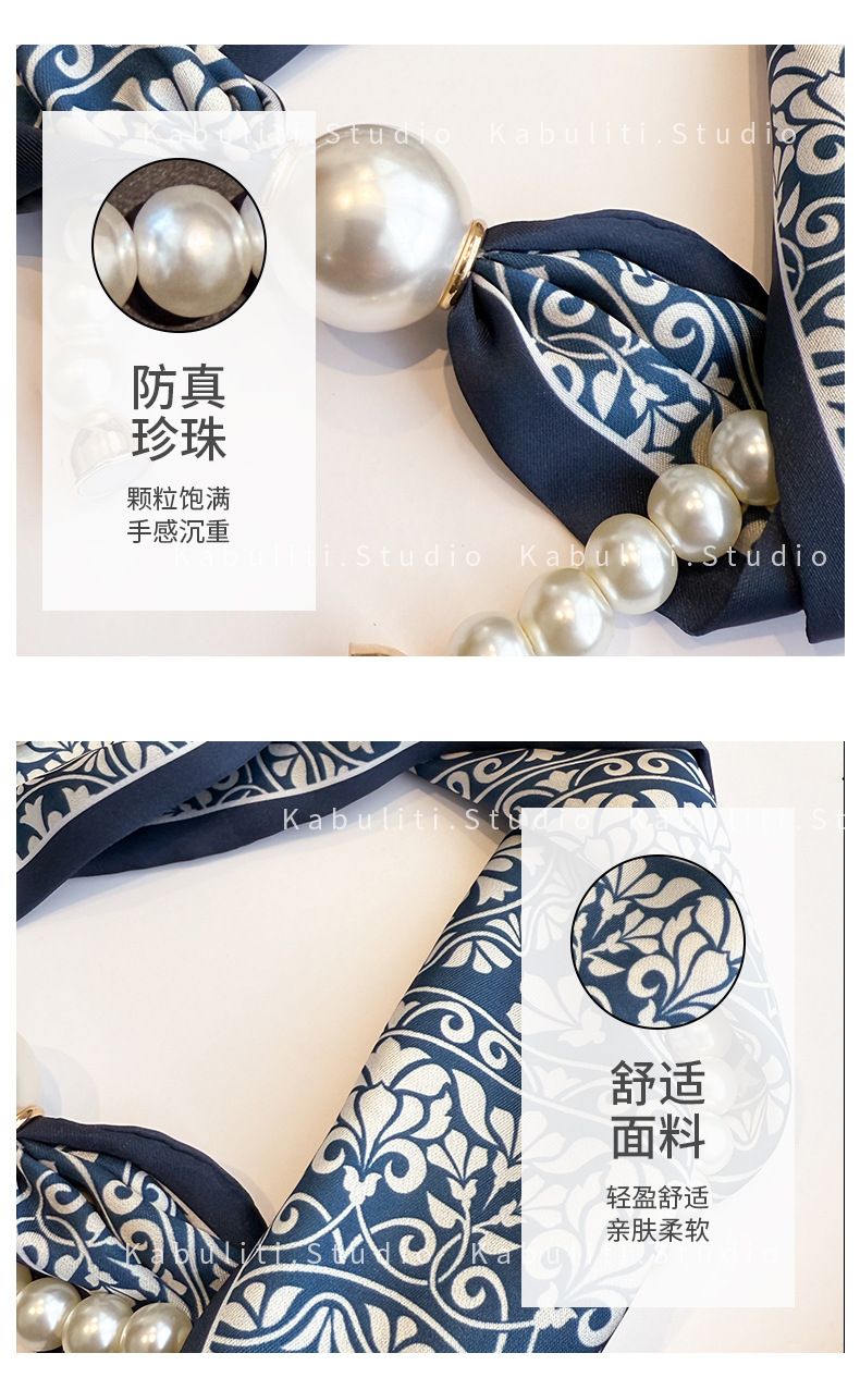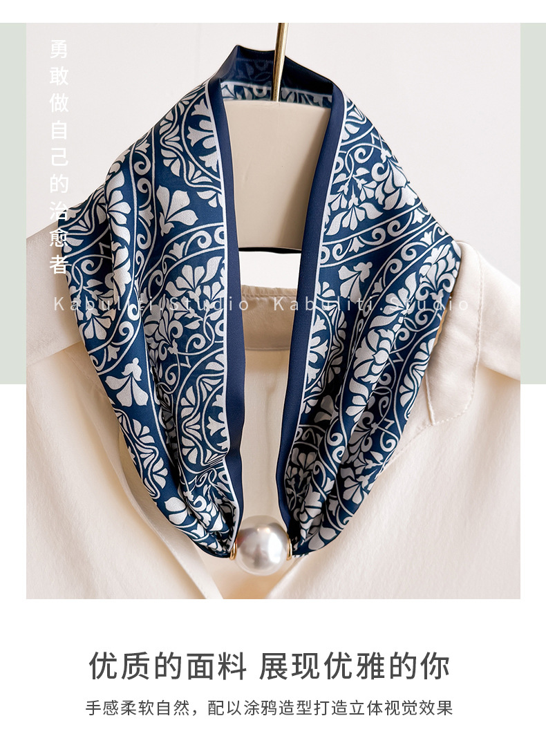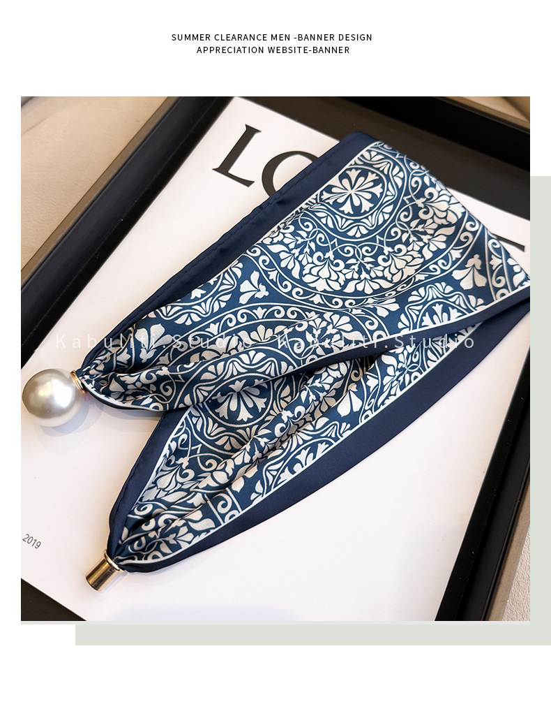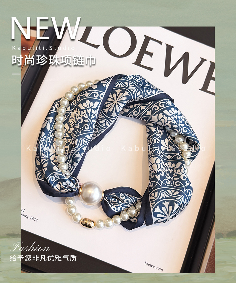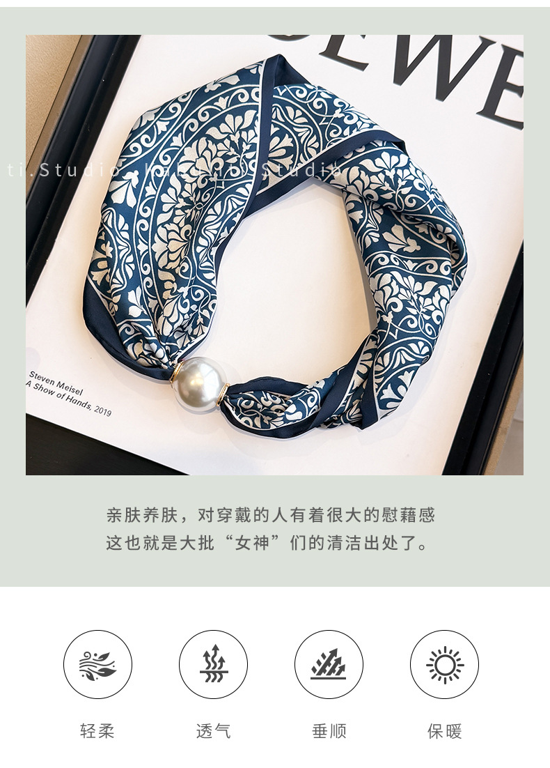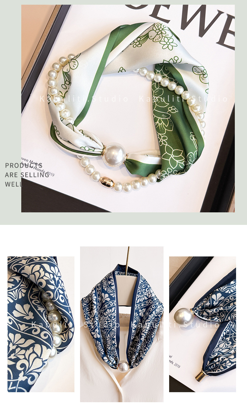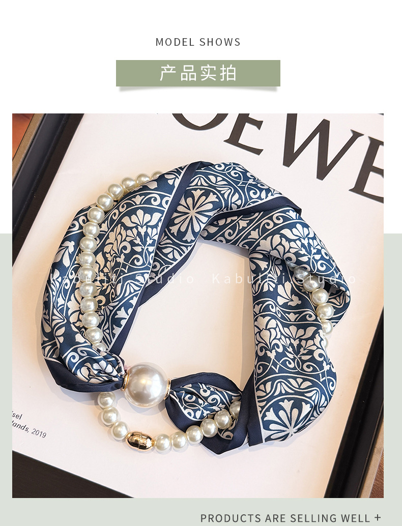 레트로 자석 버클 진주 목걸이, 여성용 좁고 긴 실크 스카프, 엄마용 목 보호대, 셔츠와 얇은 스카프스토어 가기