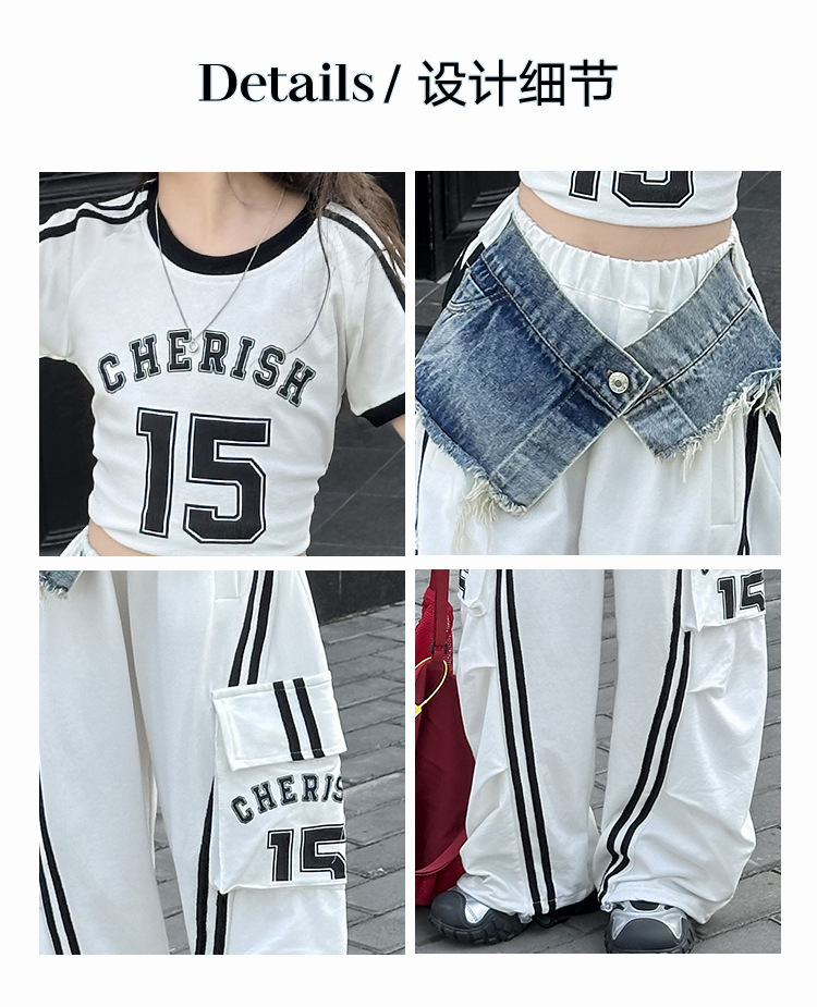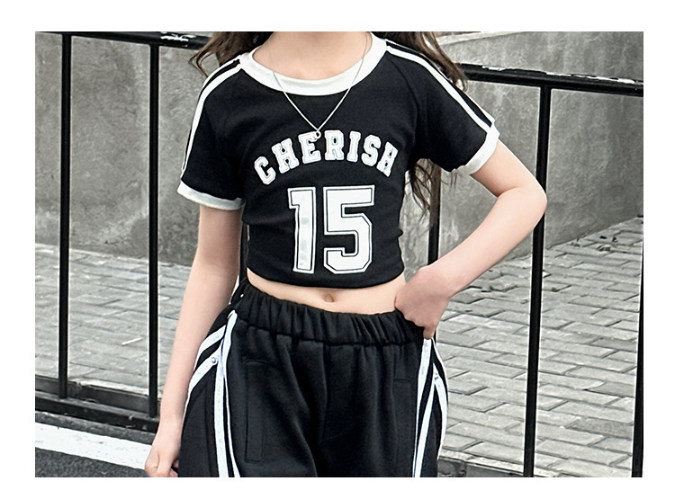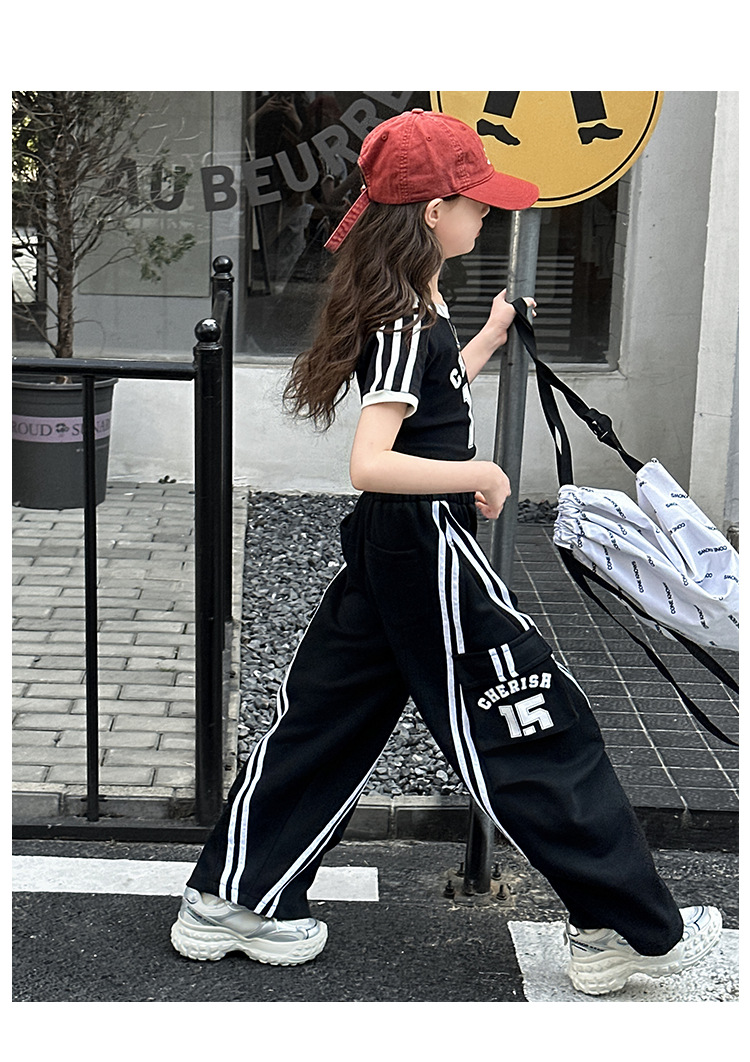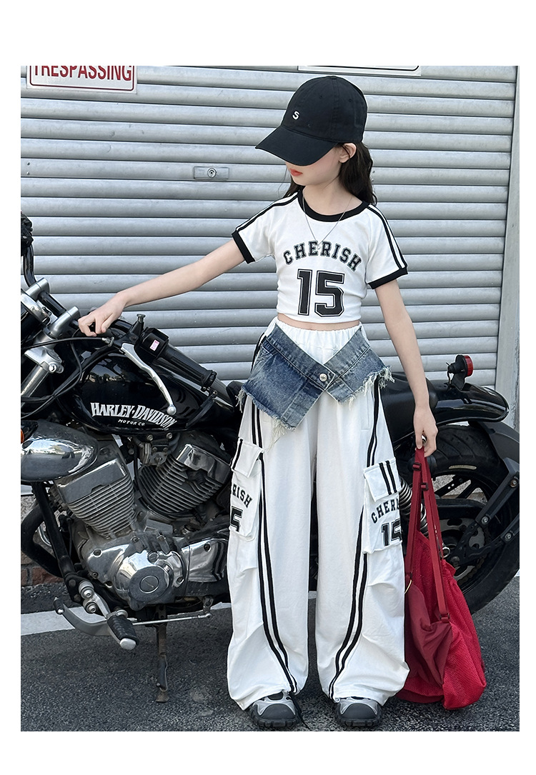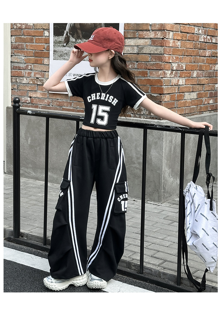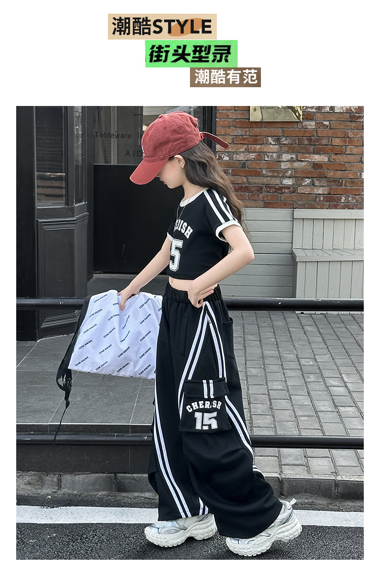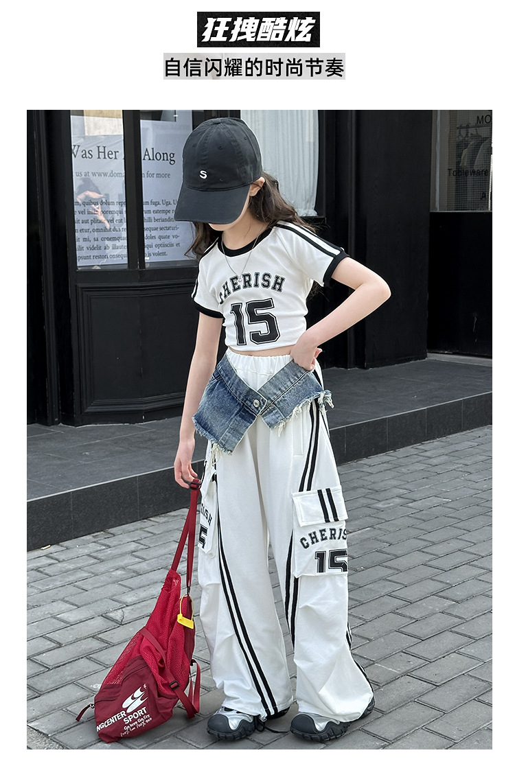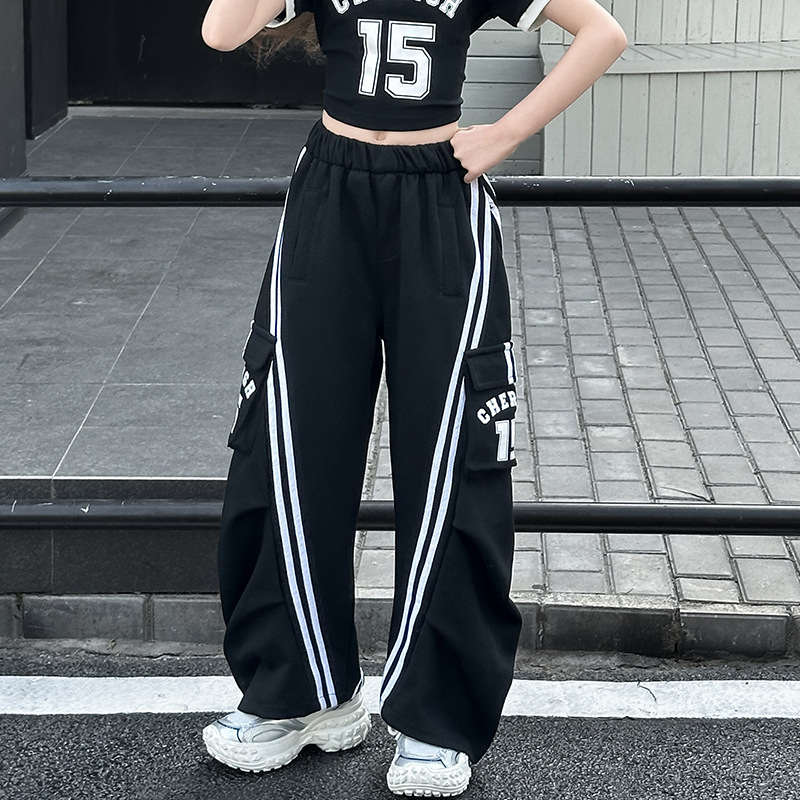 소녀 세트 2025 봄과 여름 새로운 재즈 스트리트 댄스 큰 어린이 인터넷 연예인 프라이드 스트리트 데님 허리 씰 풀 바지
