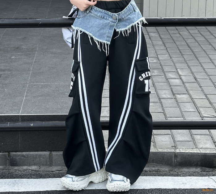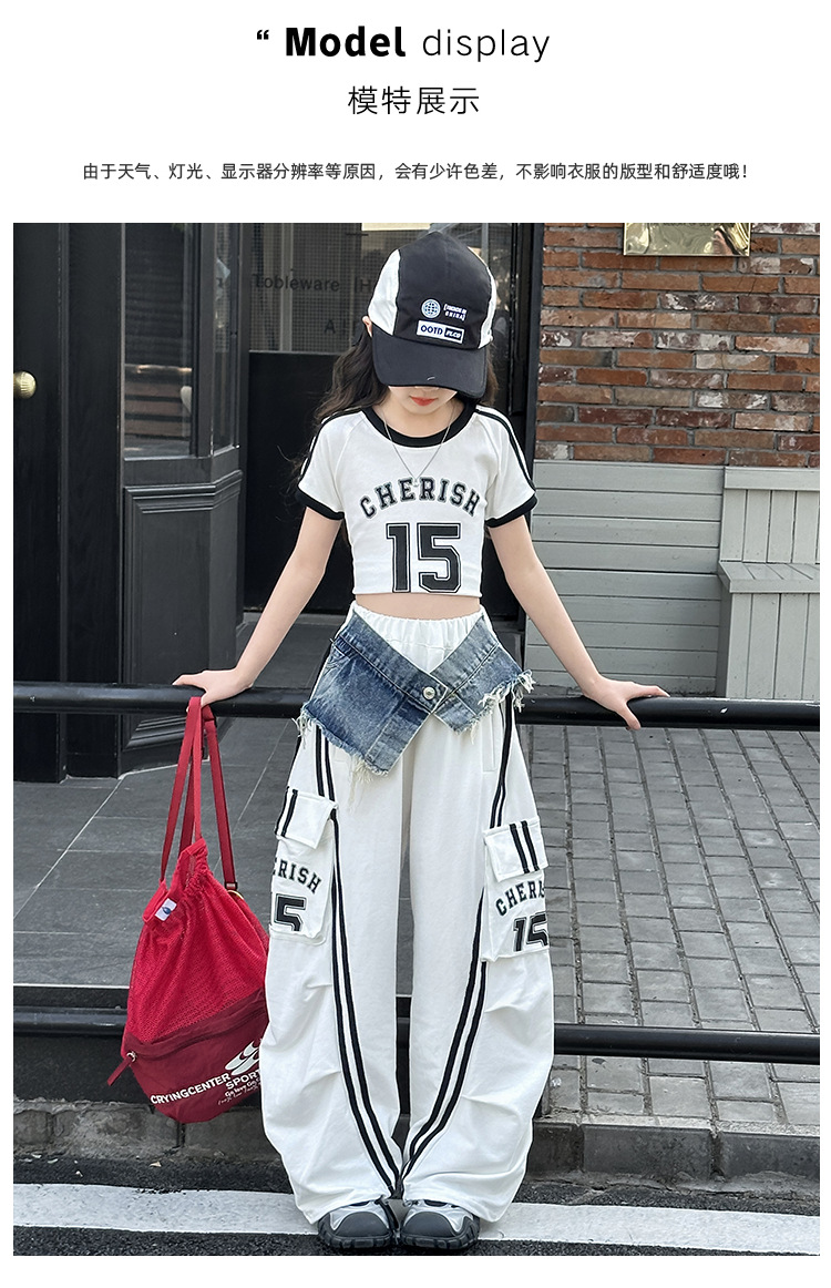 소녀 세트 2025 봄과 여름 새로운 재즈 스트리트 댄스 큰 어린이 인터넷 연예인 프라이드 스트리트 데님 허리 씰 풀 바지스토어 가기
