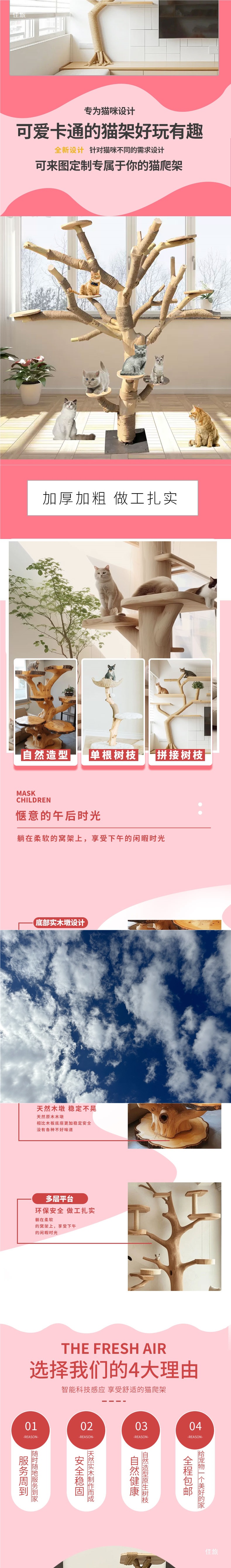 트렁크 고양이 클라이밍 프레임, 원목 고양이 프레임, 점프 플랫폼, 일체형 고양이 둥지, 가정용 통나무 고양이 트리, 럭셔리 빌라 고양이 스크래치 컬럼스토어 가기
