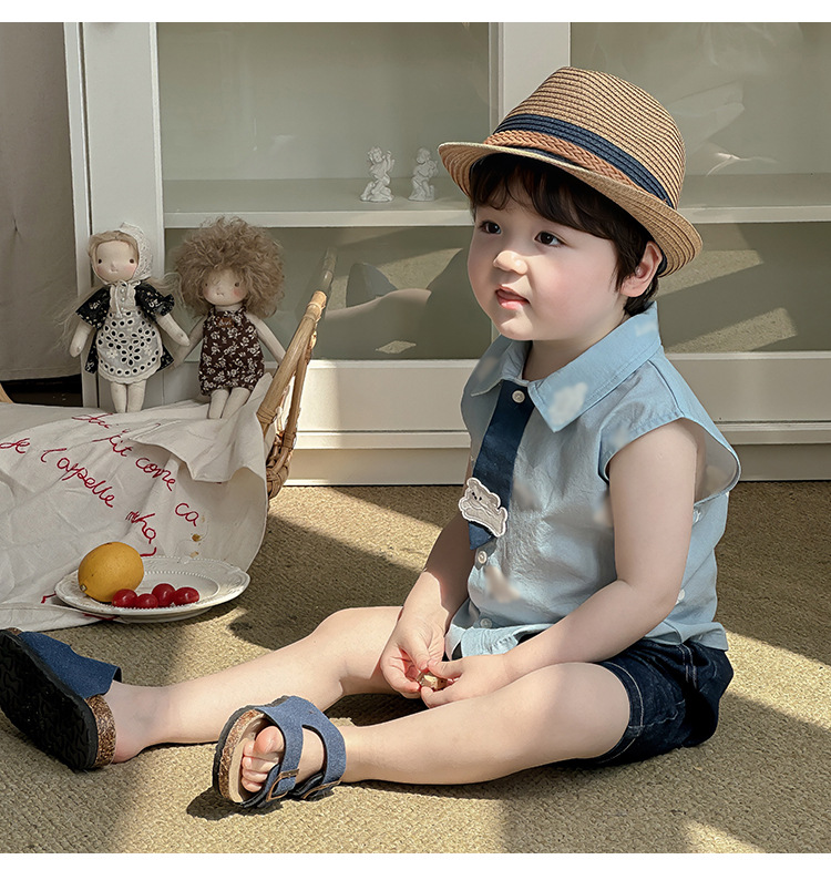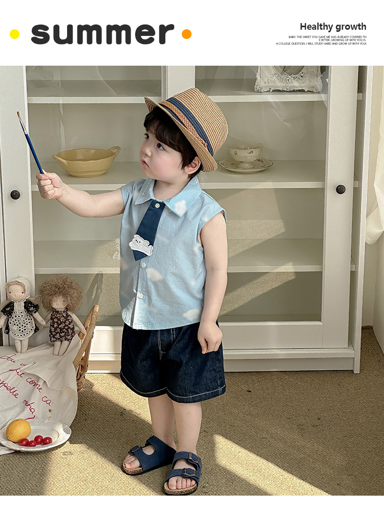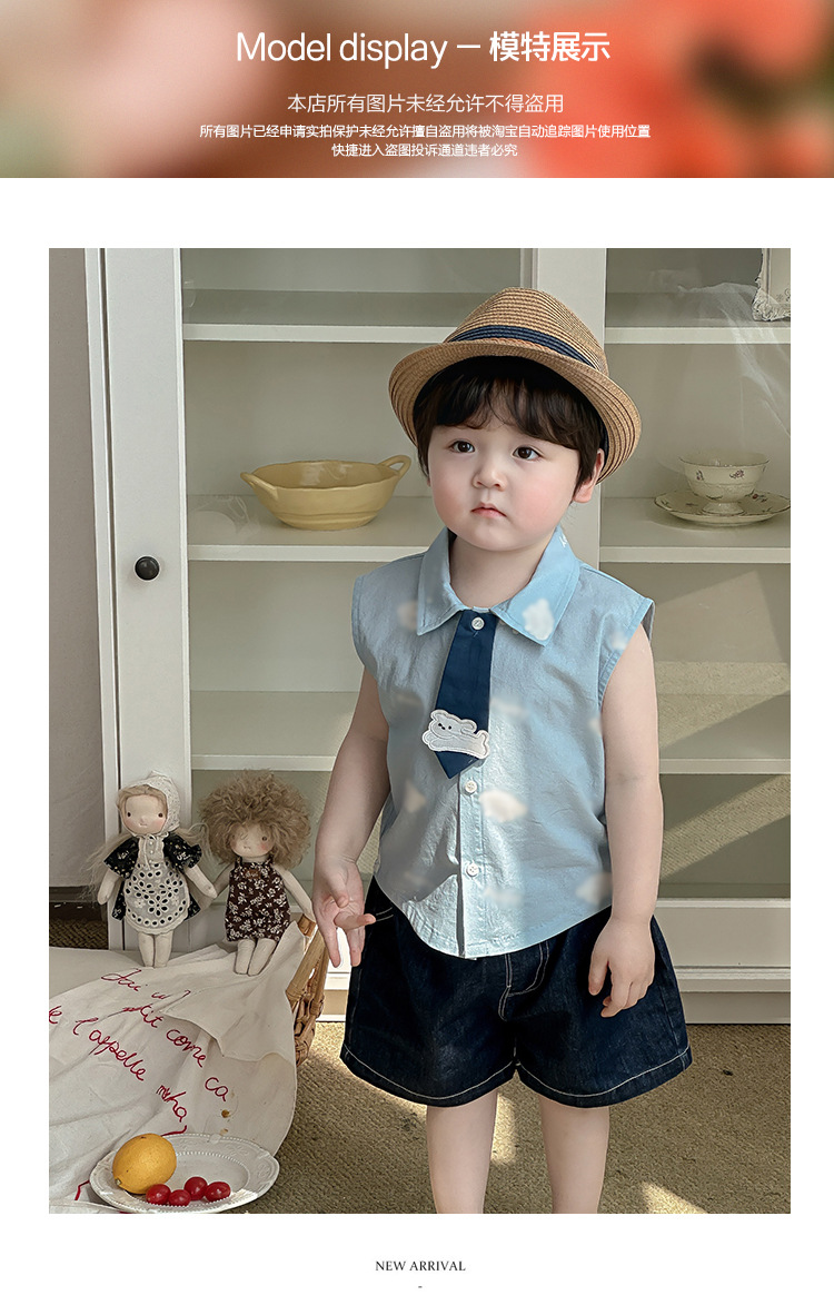 아기 여름 옷 소년의 여름 세트 한국 어린이 유행 넥타이 셔츠 데님 반바지 2 종 세트 1 년스토어 가기