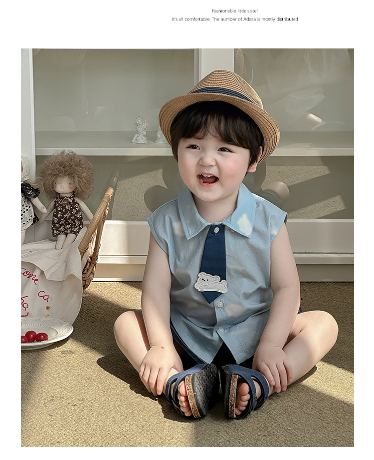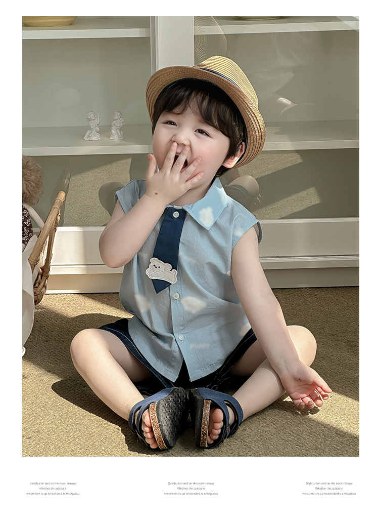 아기 여름 옷 소년의 여름 세트 한국 어린이 유행 넥타이 셔츠 데님 반바지 2 종 세트 1 년