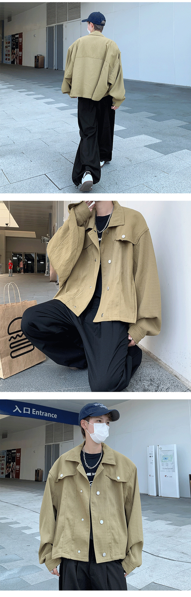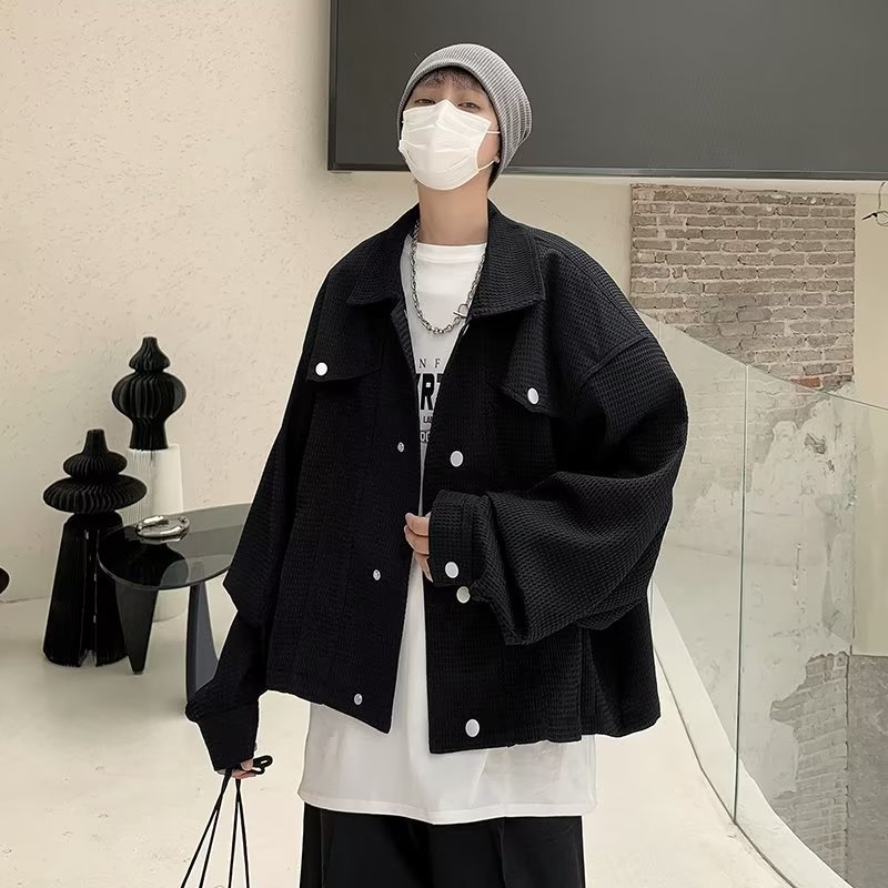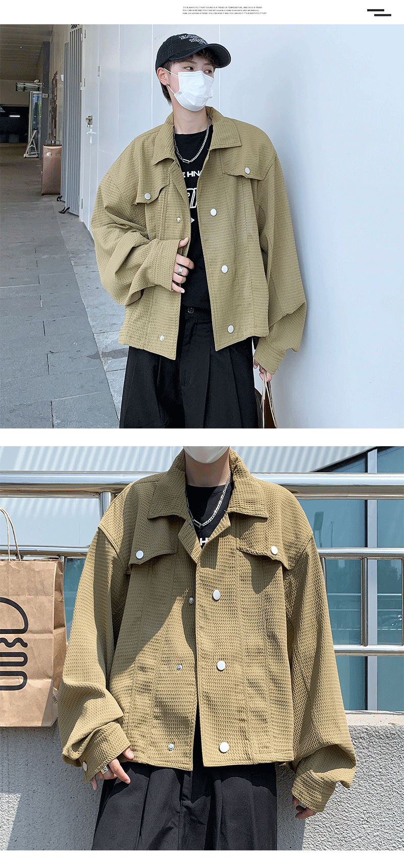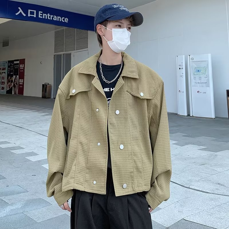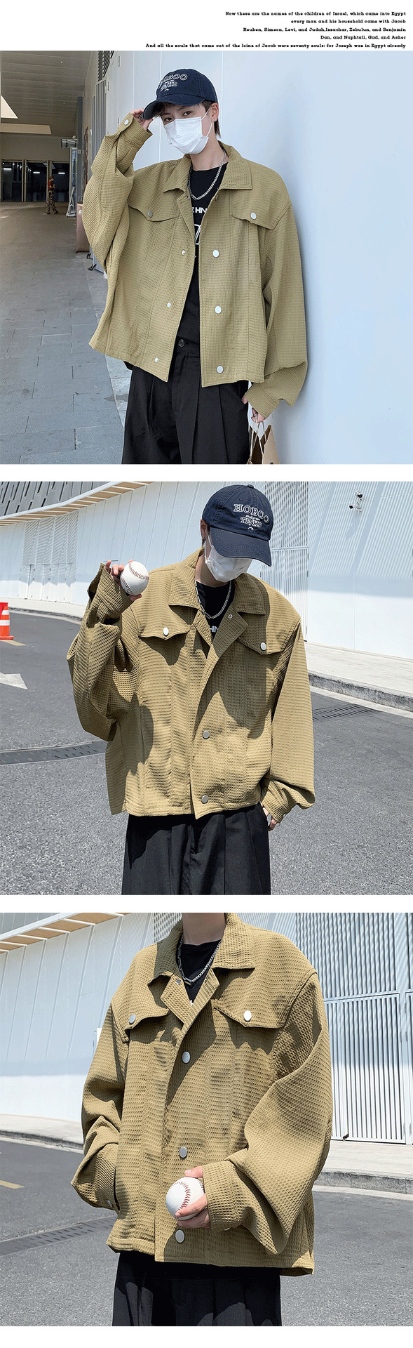 기능성 가볍고 성숙한 스타일의 노아이론 복고풍 작업복 남성용 짧은 재킷, 멋지고 트렌디한 라펠 야구 재킷스토어 가기