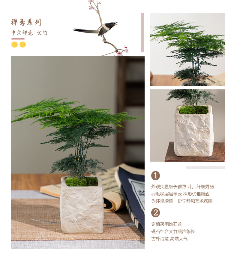 • 아스파라거스 아스파라거스 + Zisha 분지 + 이끼 + 사각 플라스틱 홀더✦