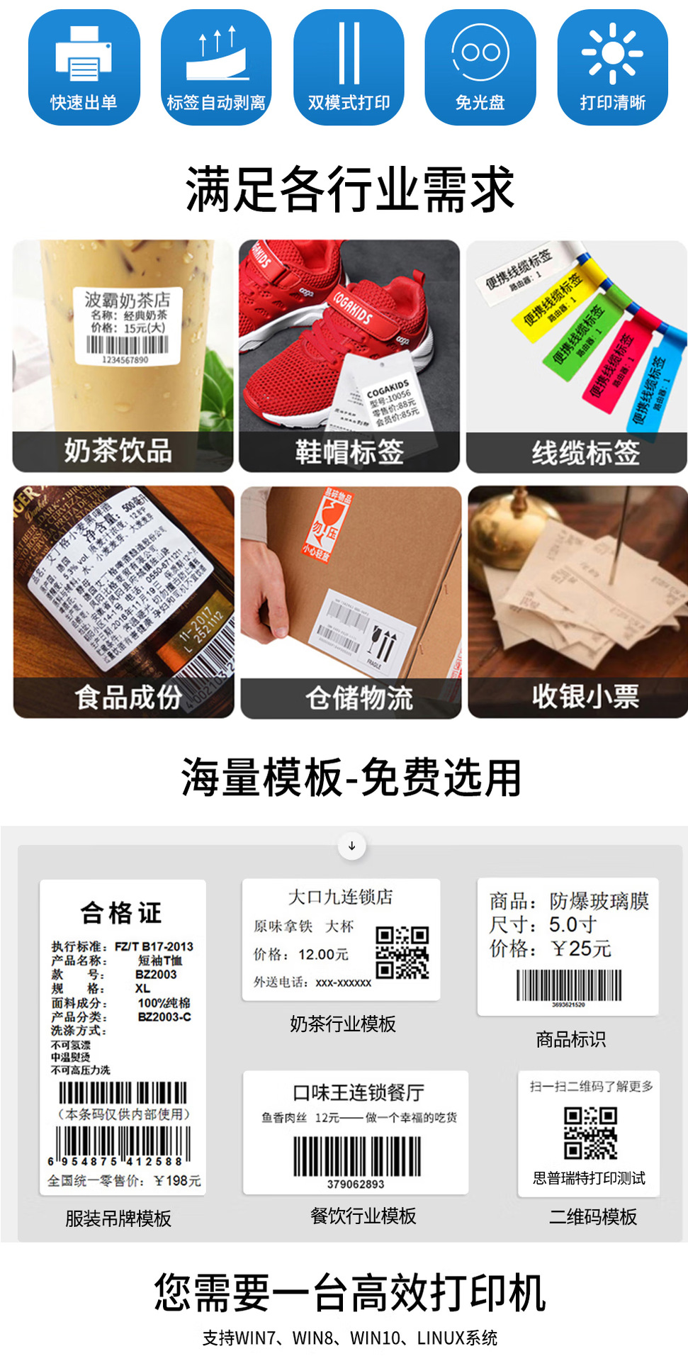 열 블루투스 바코드 영수증 기계 의류 디지털 태그 자체 접착 가격 라벨 프린터