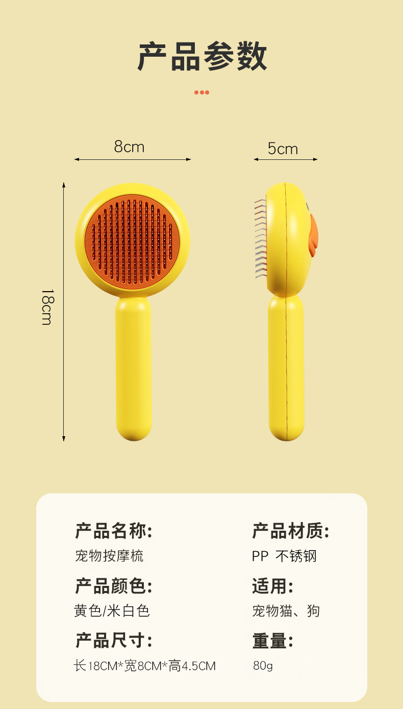 애완 동물 고양이 개 오픈 팅 빗 자체 청소 빗 노란색 오리 원 버튼 머리 제거 빗 머리 제거 브러시 애완 동물 머리 제거 브러쉬