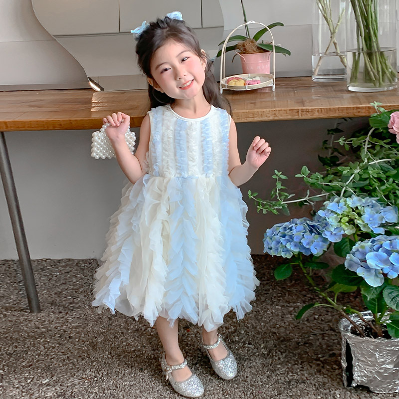 여아 여름 원피스 2026 신상 중소형 아동용 퍼프 스커트 여름 여아용 레이어드 메쉬 케이크 스커트