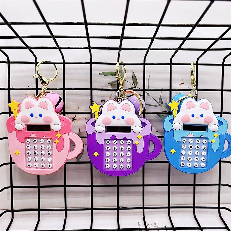 만화 토끼 계산기 펜던트 열쇠 고리 액세서리 펜던트 휴대용 교육 비디오 게임 기계 도매