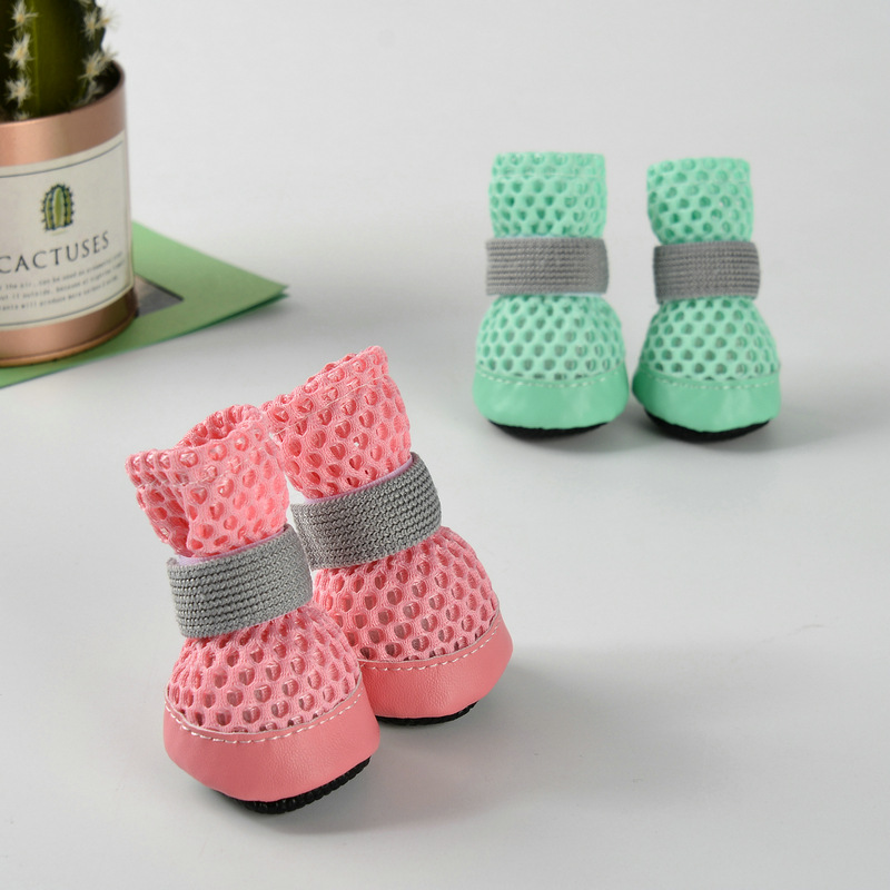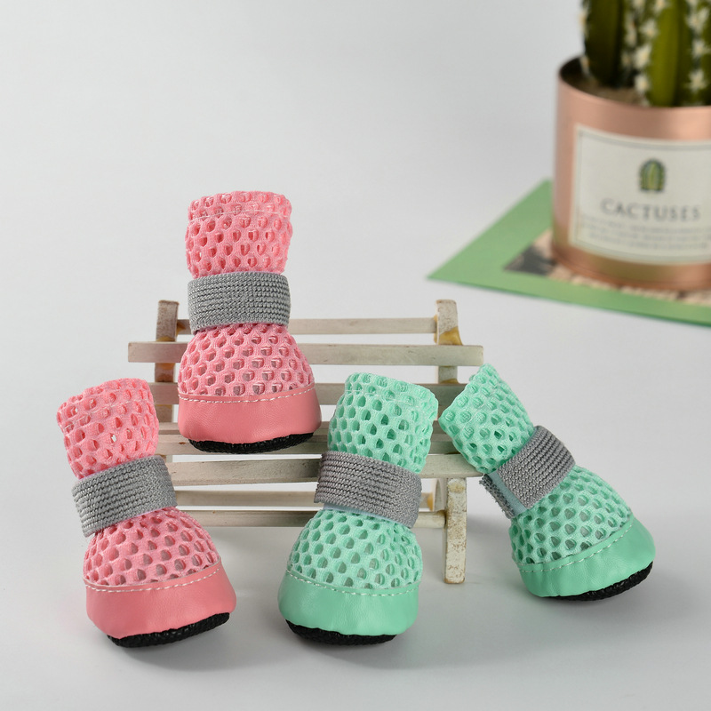 애완 동물 편안한 그물 신발 Teddy Beaumi 중소 개 발 커버 신발 통기성 및 부드러운 착용 및 4 팩 방지