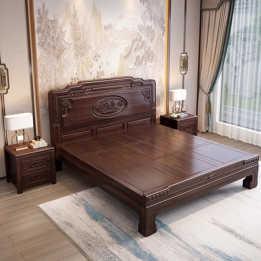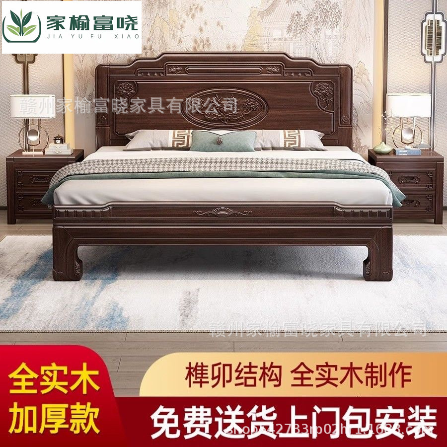 새로운 중국 스타일의 단단한 나무 침대 1.8m 마스터 침실 더블 침대 1.5m 모닥나무 구조 조각된 단단한 나무 침대