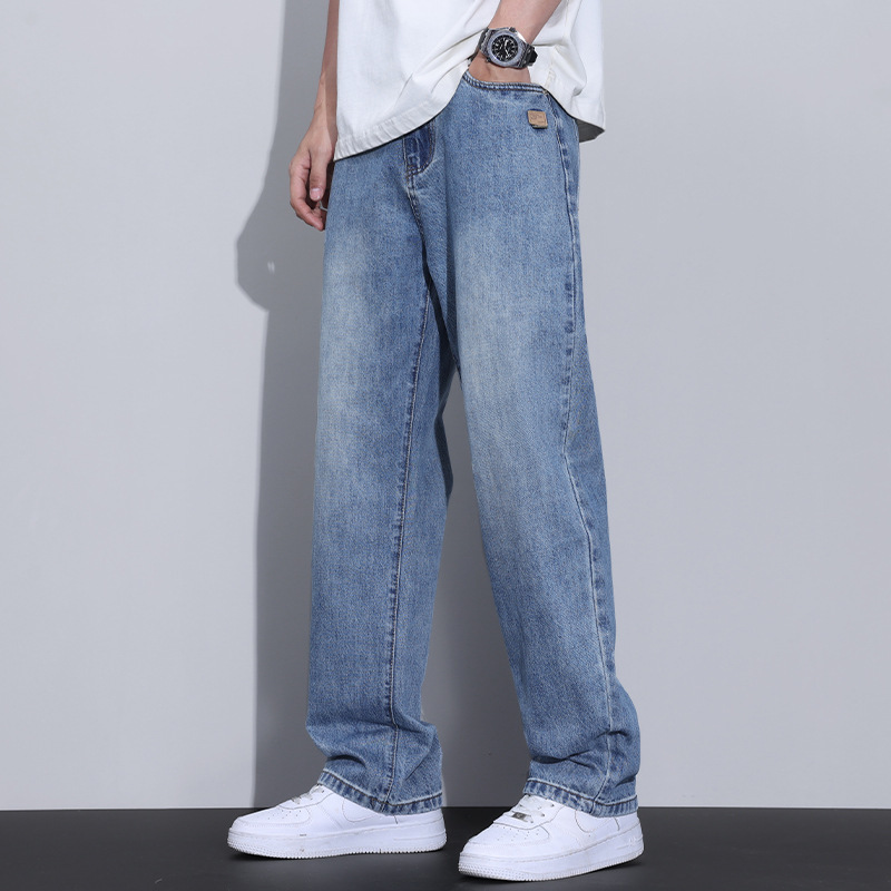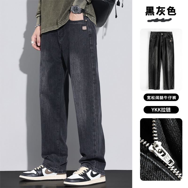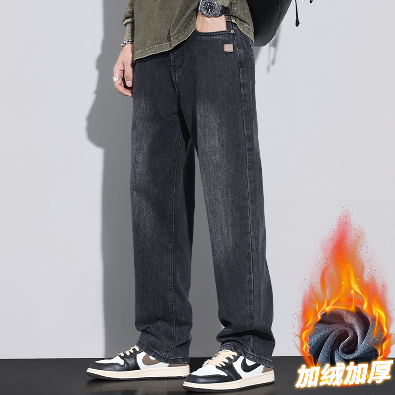 봄 2025 새로운 스타일 스트레이트 세탁 청바지 남성 느슨한 플러스 사이즈 패션 브랜드 기모 미국 스타일 레트로 긴 바지스토어 가기