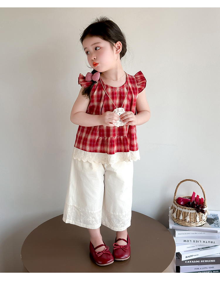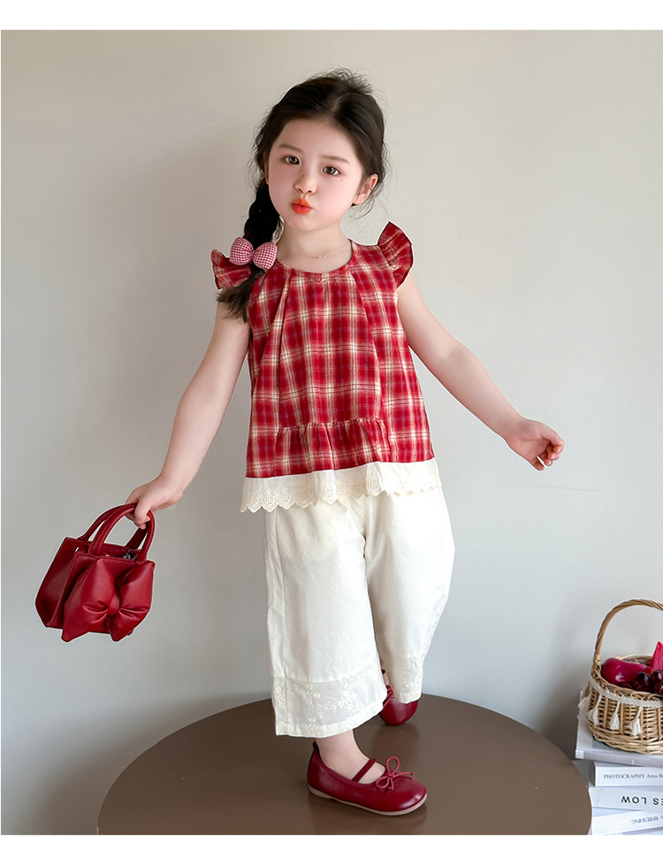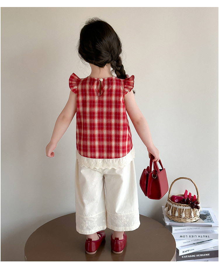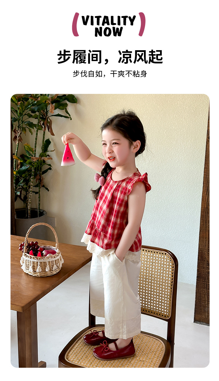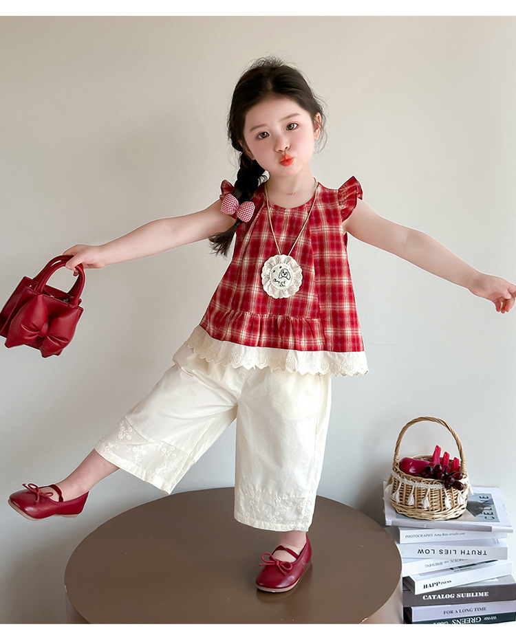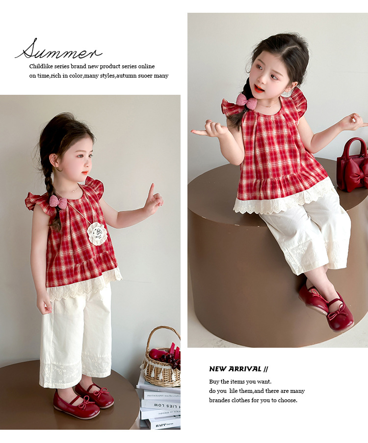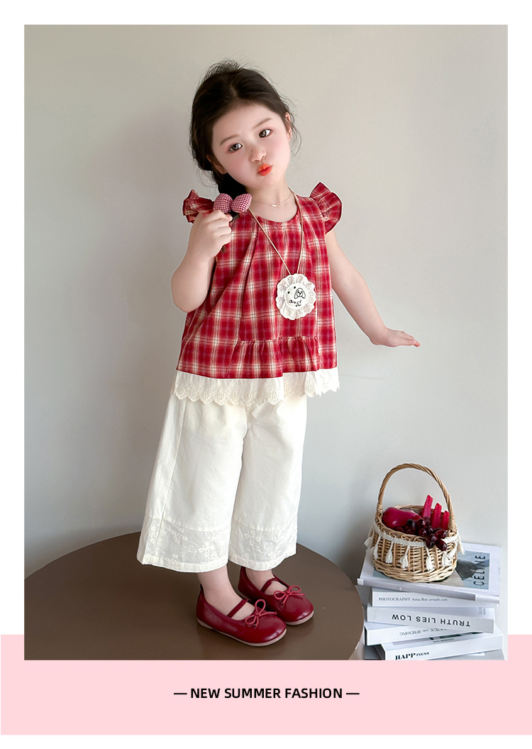 소녀 격자 무늬 캐주얼 세트 2025 새로운 어린이 서양 스타일 유행 빨간 격자 무늬 탁자 아기 소녀 여름 두 조각스토어 가기