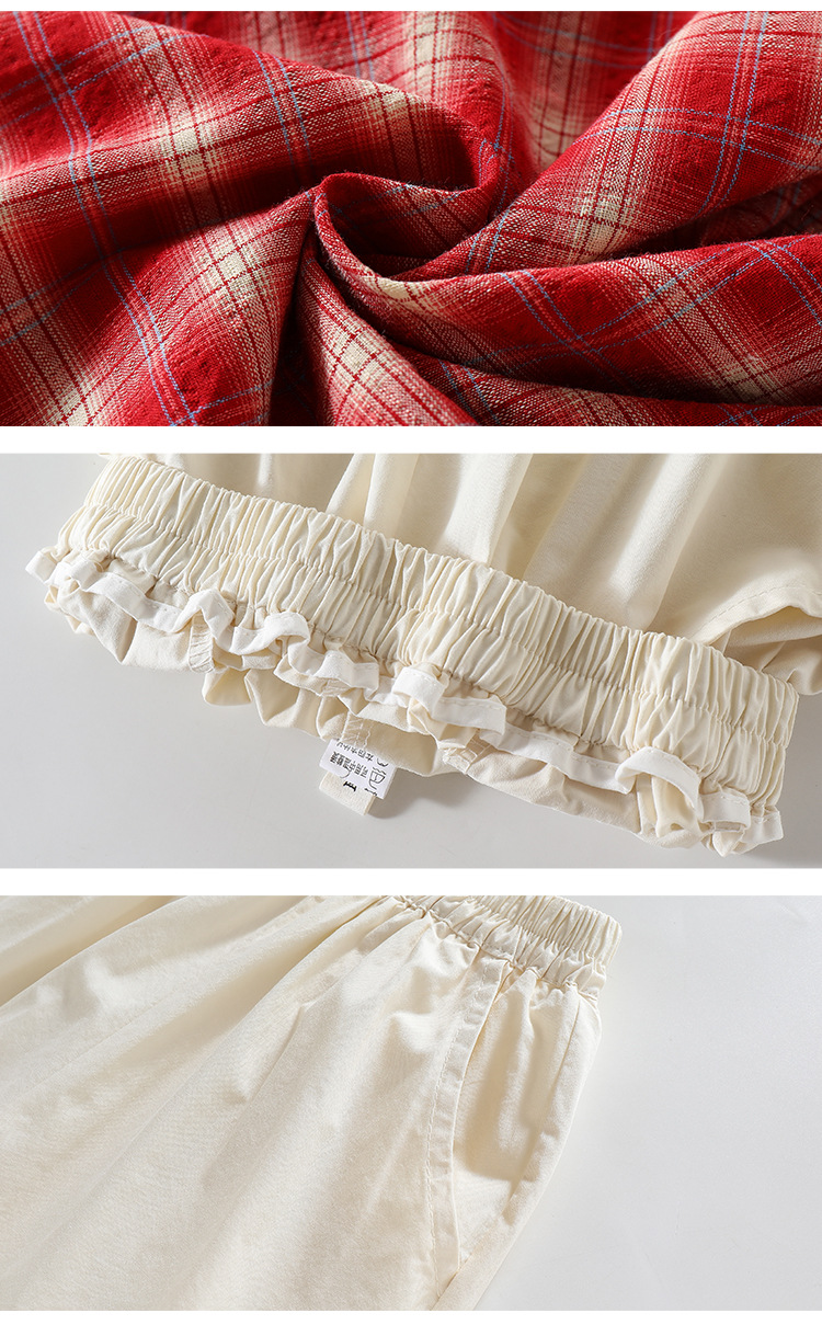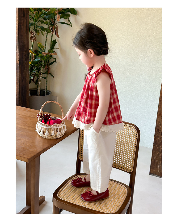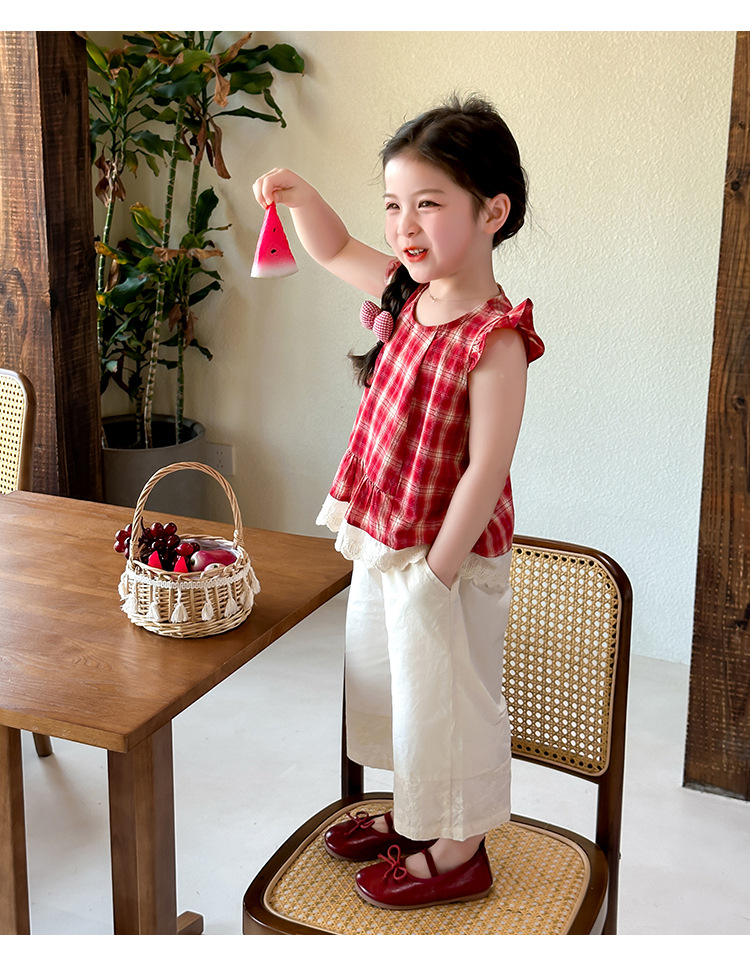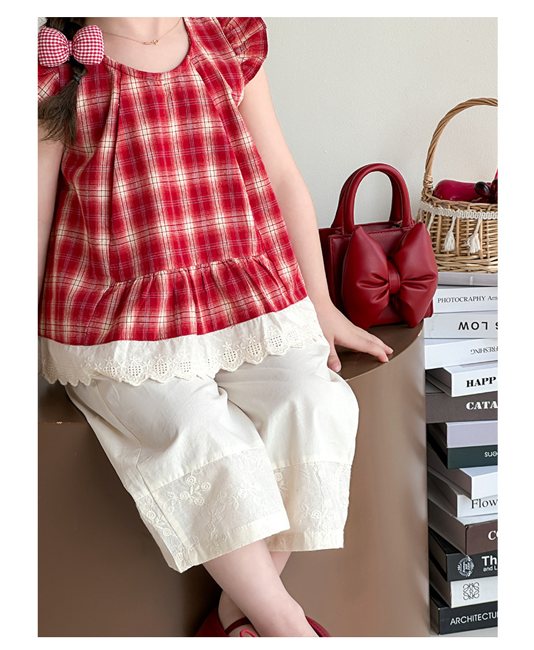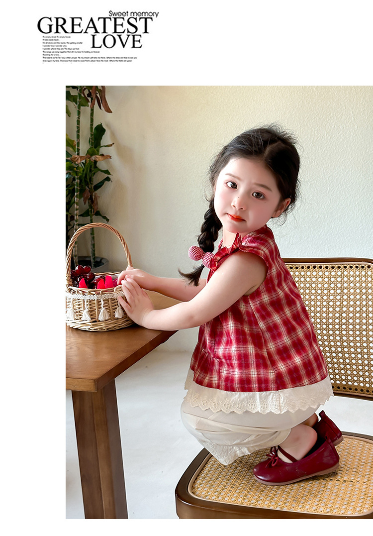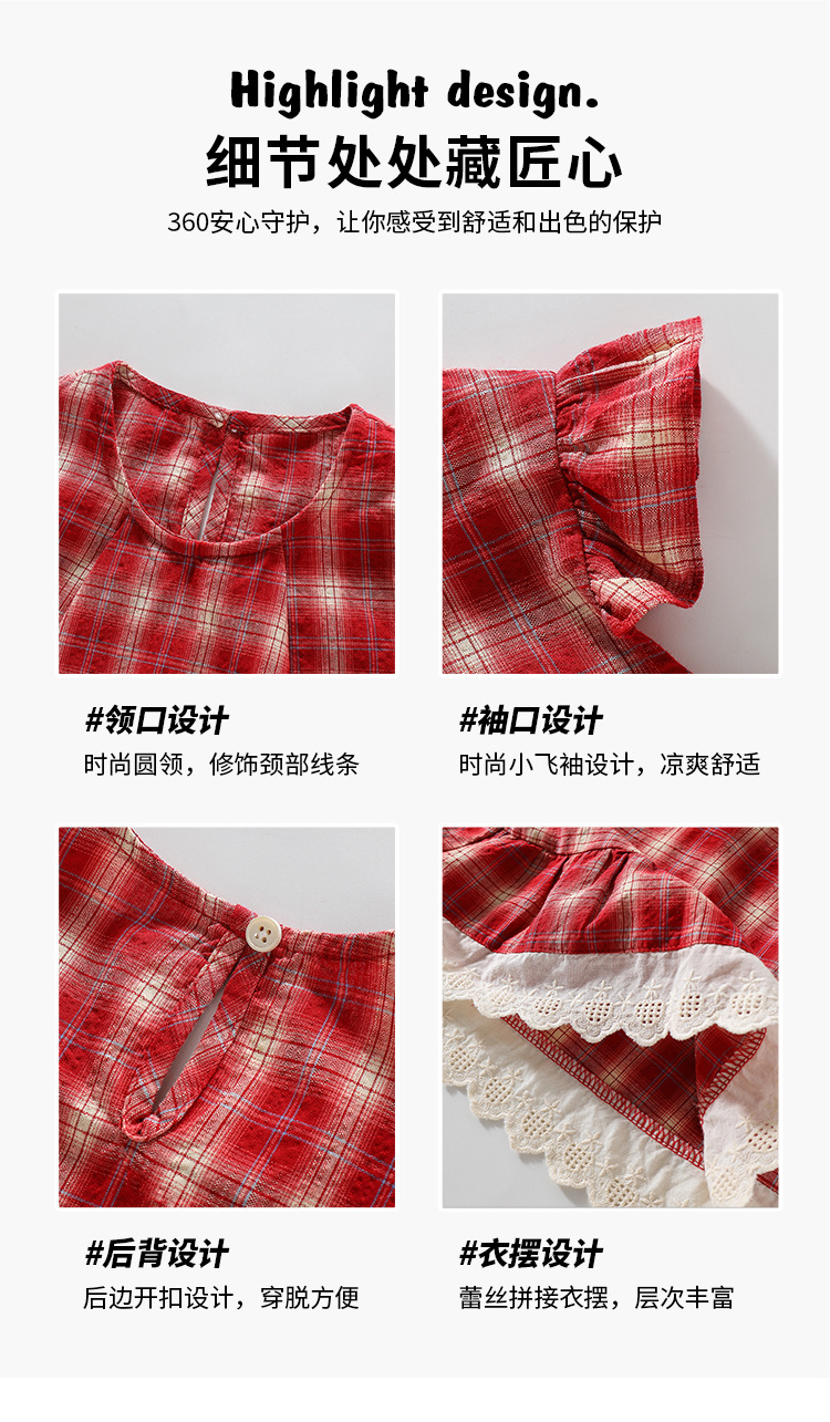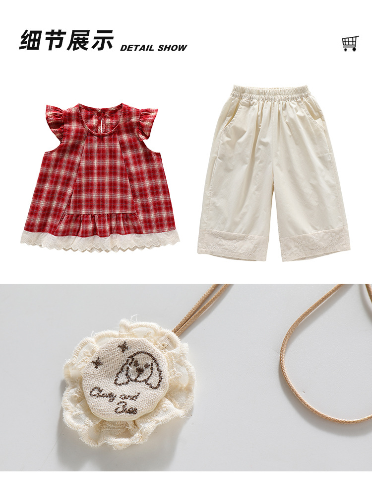 소녀 격자 무늬 캐주얼 세트 2025 새로운 어린이 서양 스타일 유행 빨간 격자 무늬 탁자 아기 소녀 여름 두 조각스토어 가기