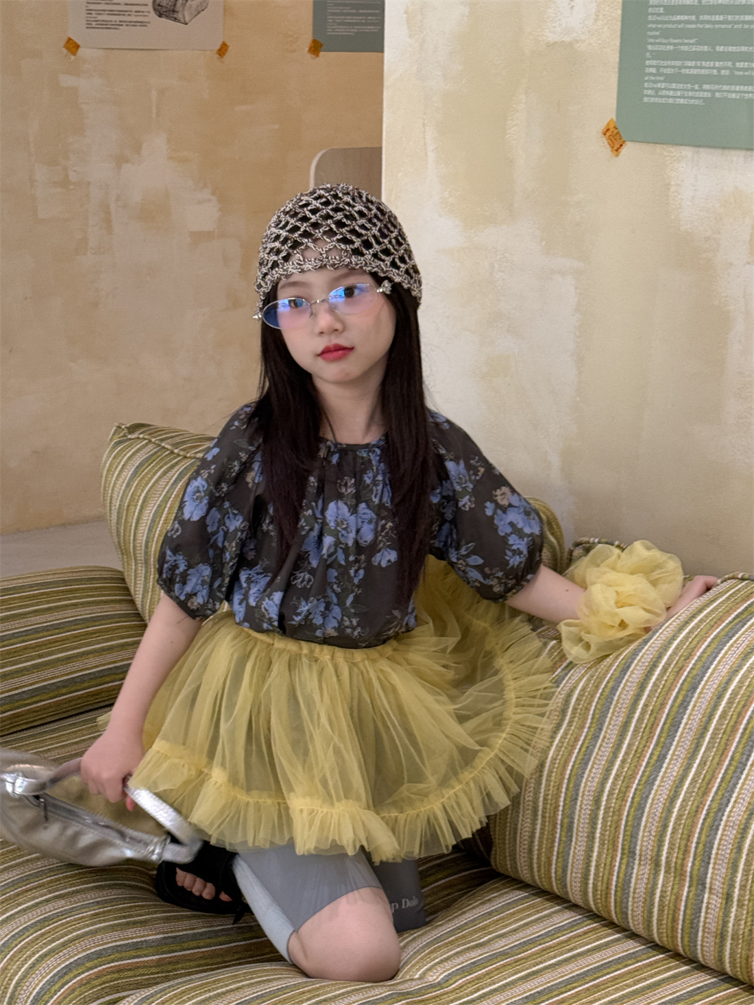 꽃과 아이 소녀 여름 2025 새 꽃 셔츠 한국 어린이 올매치 한국 최고 트렌디 어린이스토어 가기