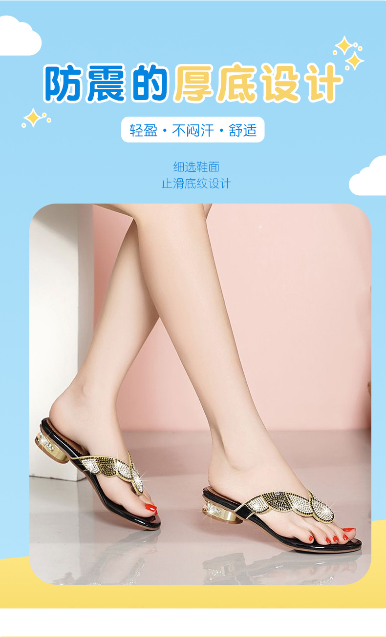 여름 아우터용 공장 직판 로우힐 비치 슈즈, 휴가용 슬리퍼, 2025년 신형 여성용 라인스톤 슬리퍼스토어 가기