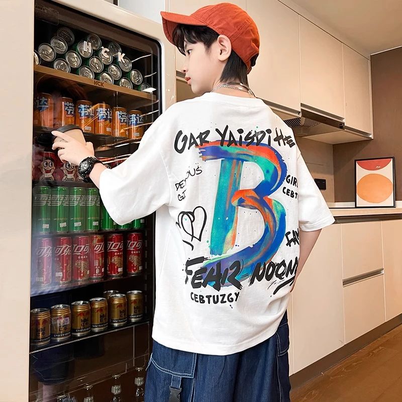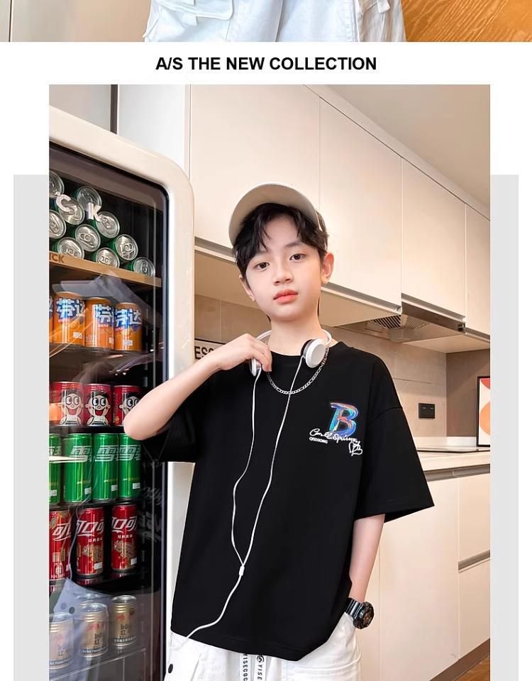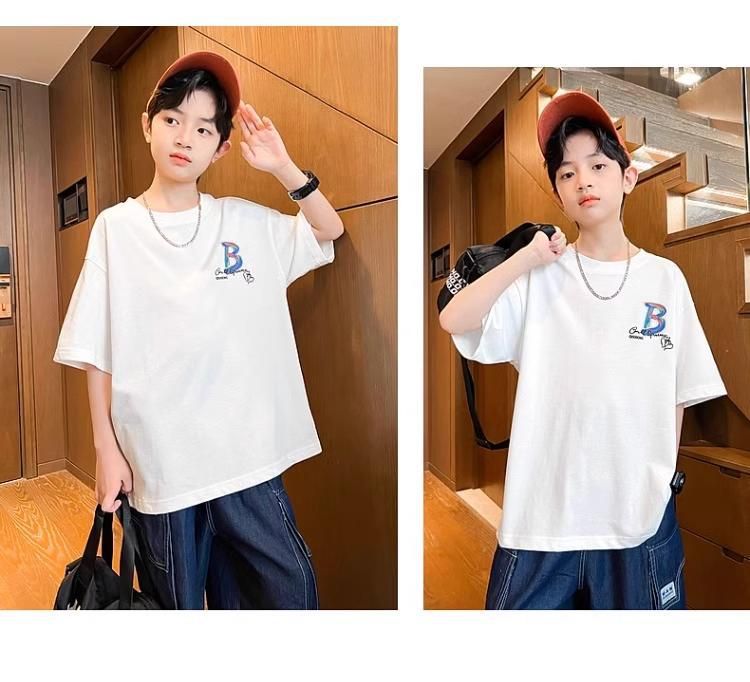 순면 남아 반팔 아동복 여름 흰색 티셔츠 2026년 신상 중대형 아동 여름 남아 패셔너블 상의