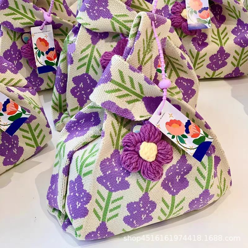 Ins 봄 꽃 여성 가방 니트 핸드백 모든 경기 니트 가방 손목 가방 어깨 버킷 가방 토트 백