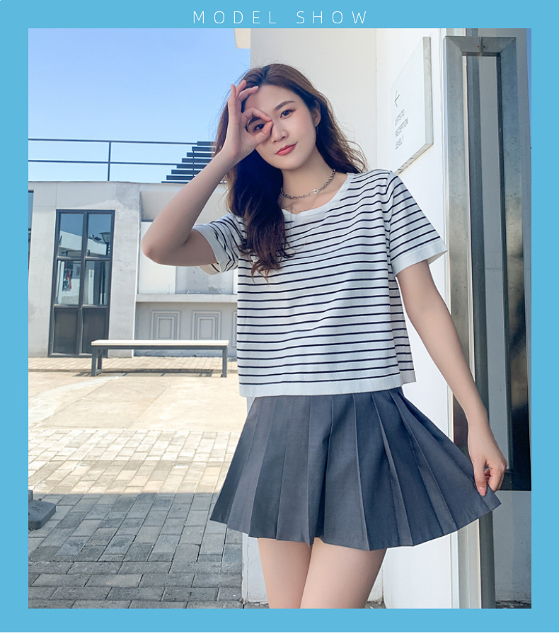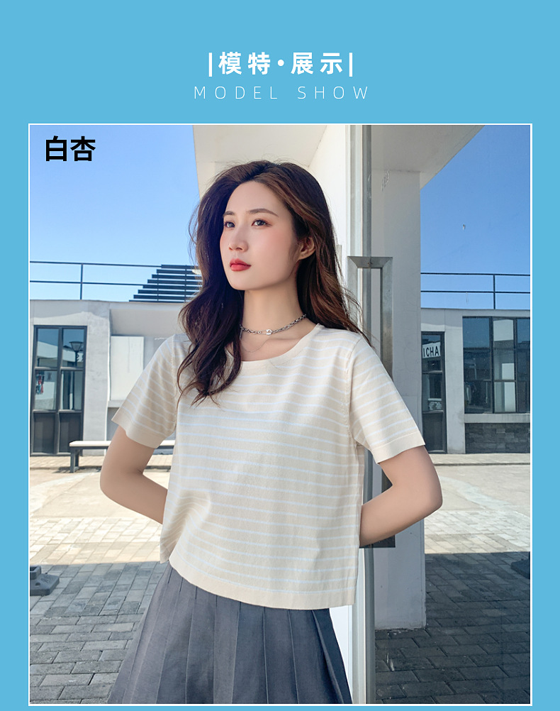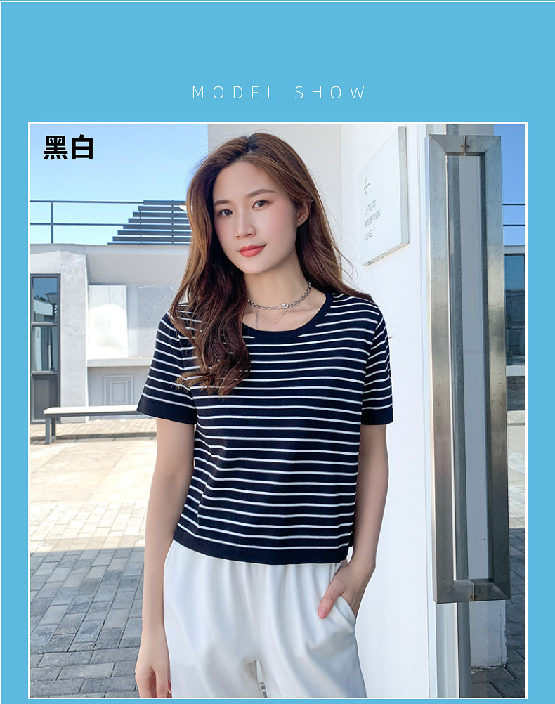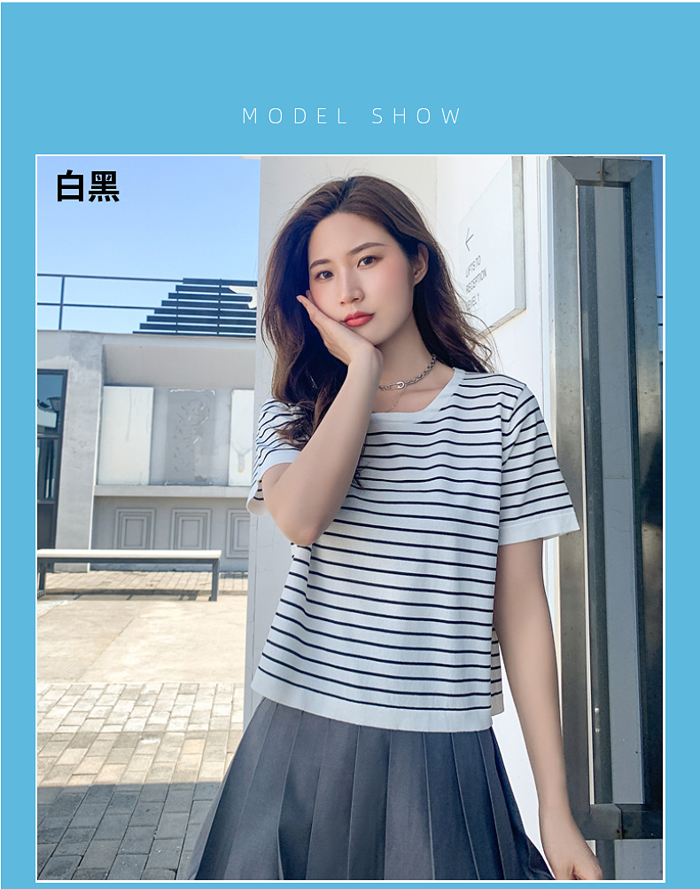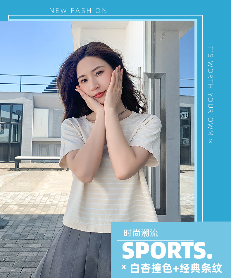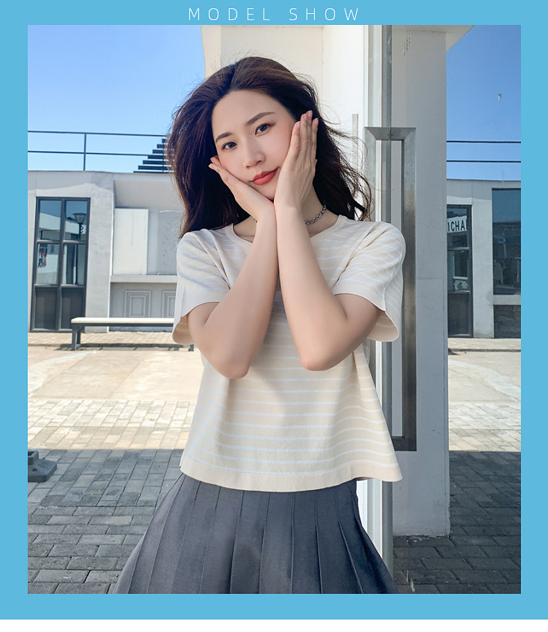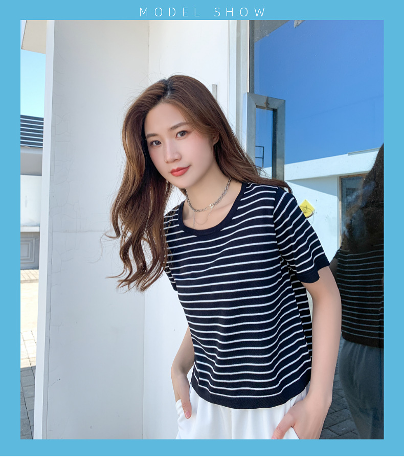 2025 줄무늬 반팔 티셔츠 여성 여름 새 짧은 한국식 느슨한 간단한 스웨터 니트 셔츠 반팔 통관스토어 가기