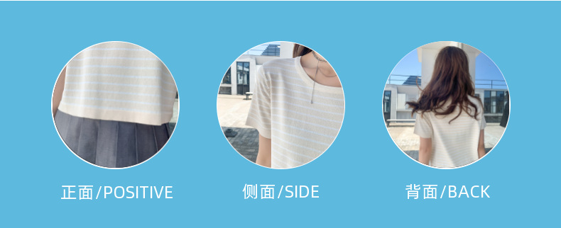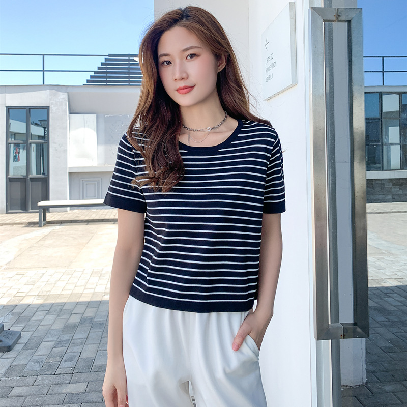 2025 줄무늬 반팔 티셔츠 여성 여름 새 짧은 한국식 느슨한 간단한 스웨터 니트 셔츠 반팔 통관