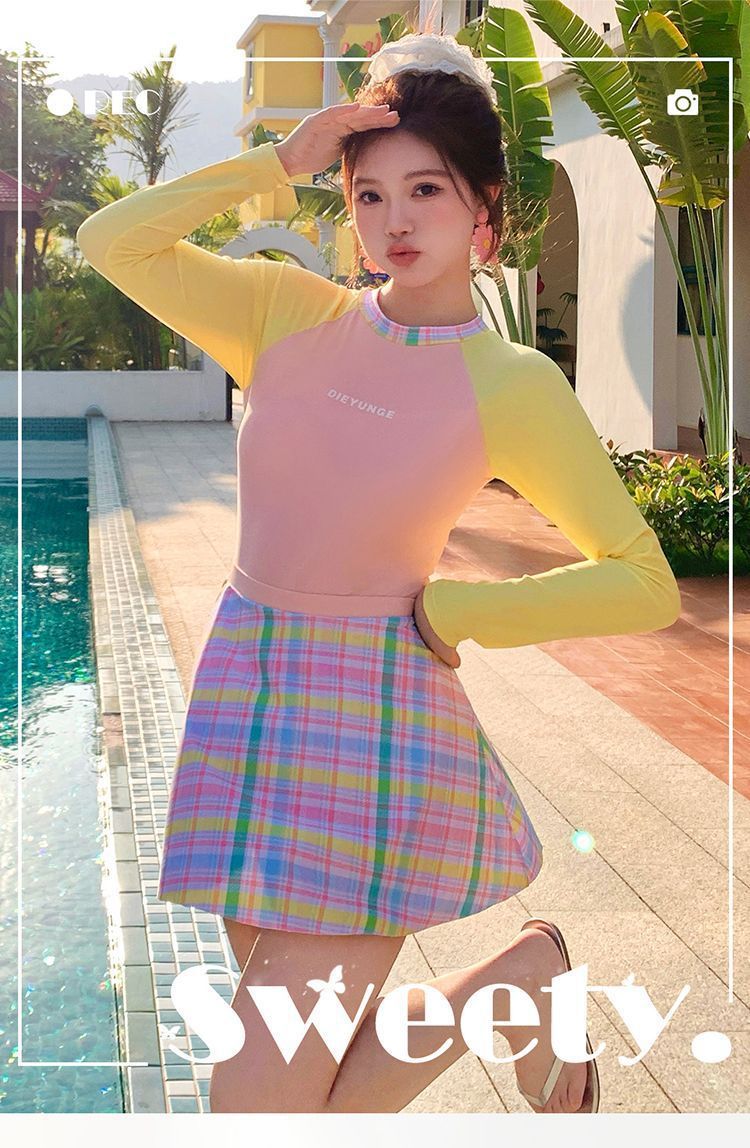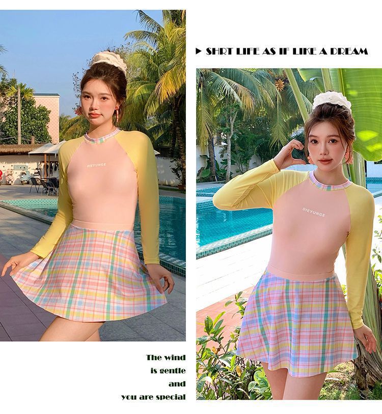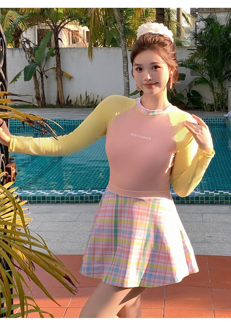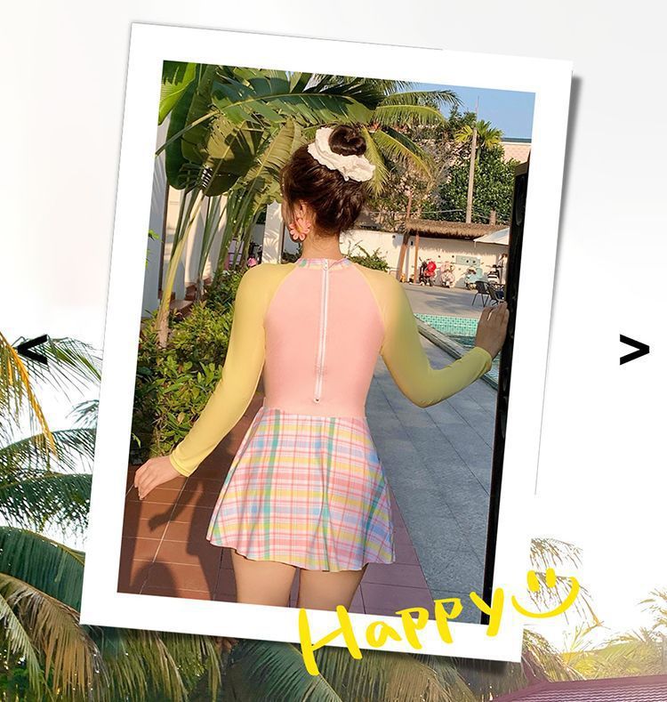 살짝 뚱뚱한 mm 여성 수영복 ins 달콤한 살을 커버하고 슬리밍 보수적 인 자외선 차단제 긴팔 서핑 슈트 학생 잠수복 도매스토어 가기