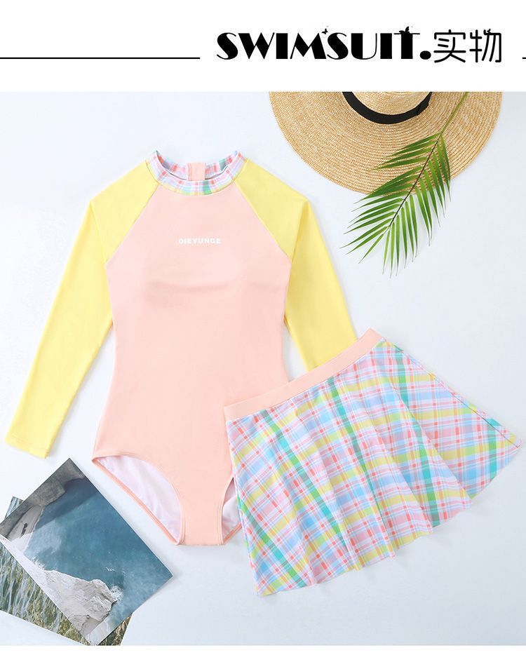 살짝 뚱뚱한 mm 여성 수영복 ins 달콤한 살을 커버하고 슬리밍 보수적 인 자외선 차단제 긴팔 서핑 슈트 학생 잠수복 도매