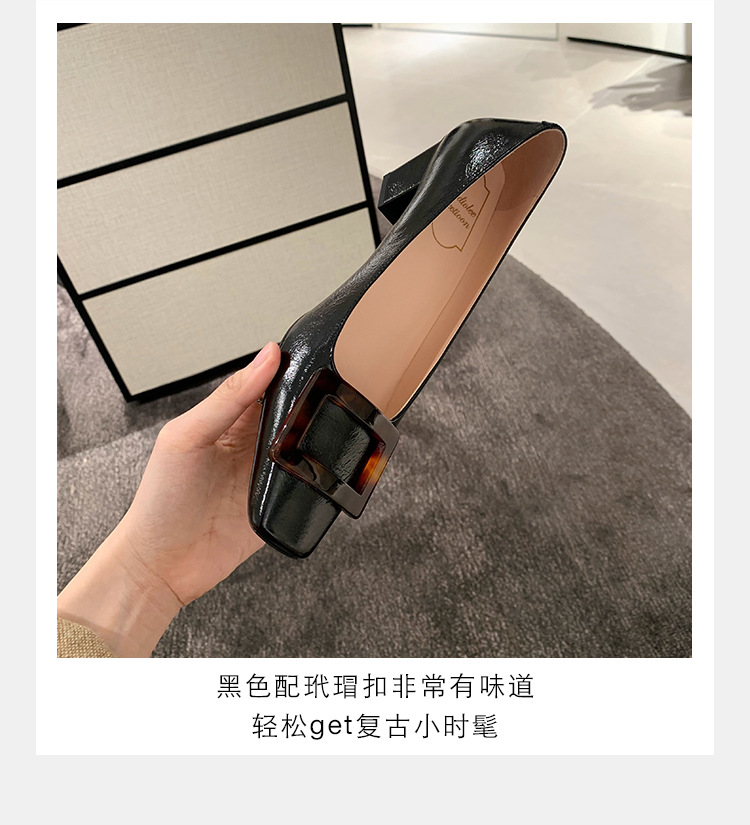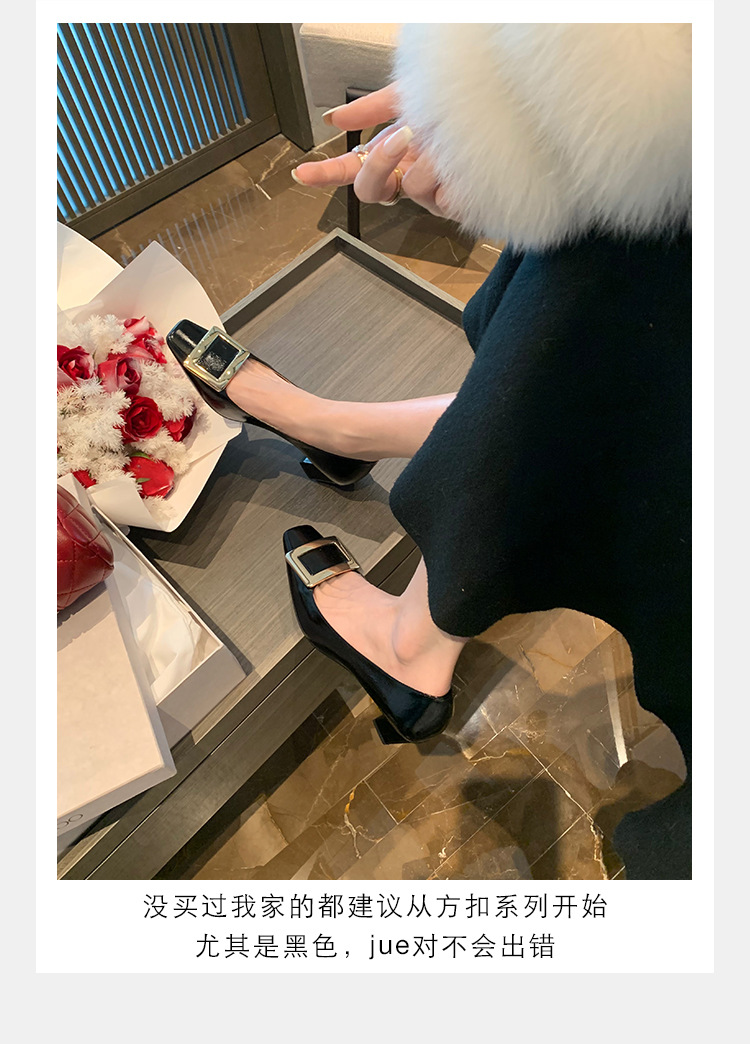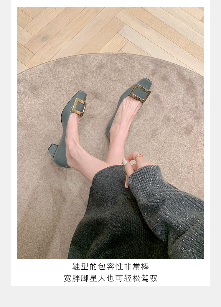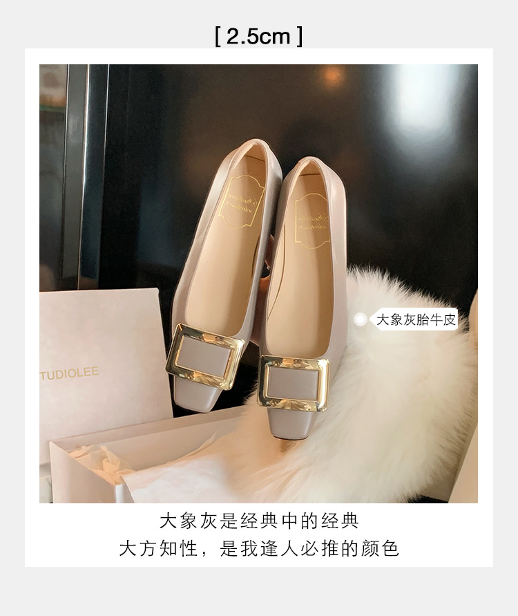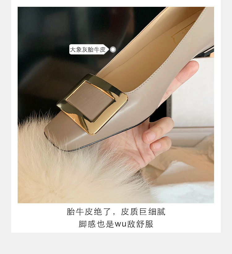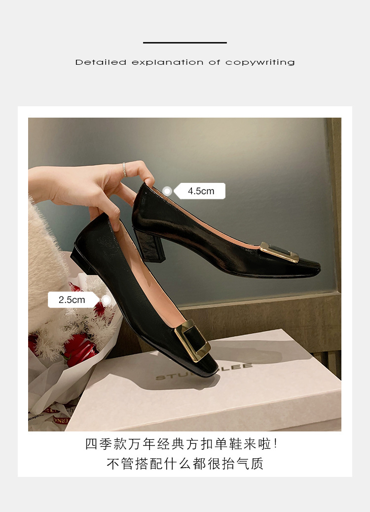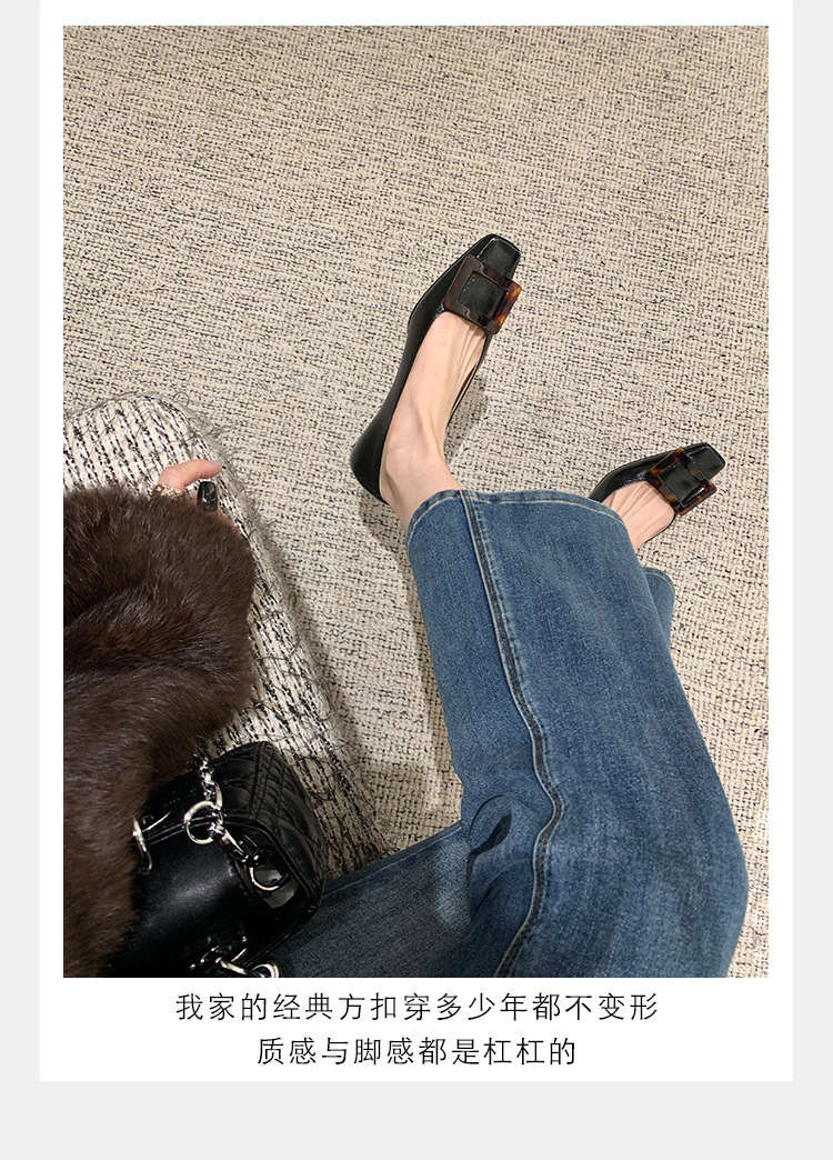 Cowhide 버전 ~ 고전적인 얕은 입 기질을 가진 포도 엄마 하이힐 신발 스퀘어 헤드 슬림 두꺼운 힐 스퀘어 버클 신발 여성스토어 가기
