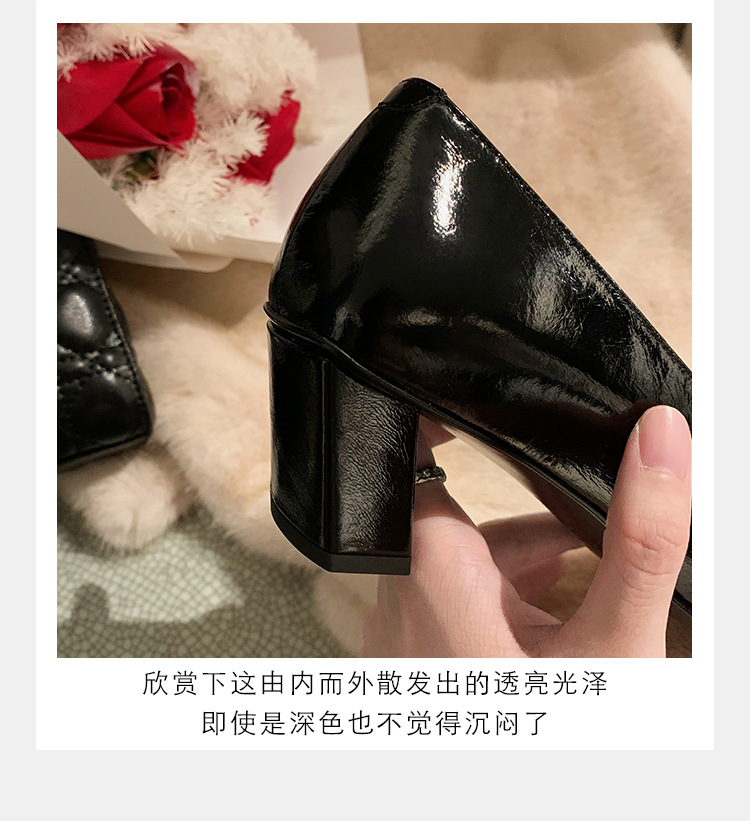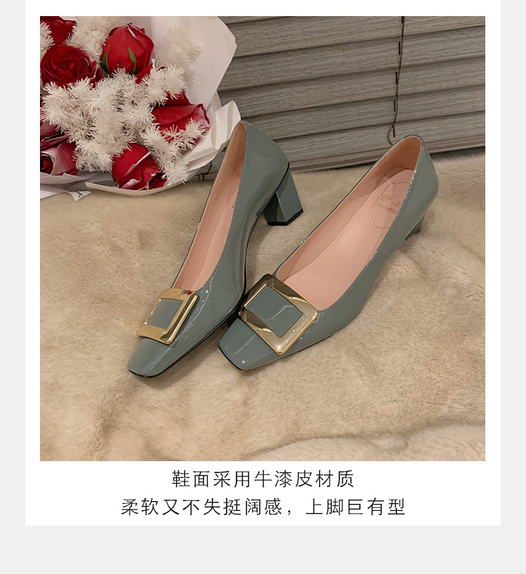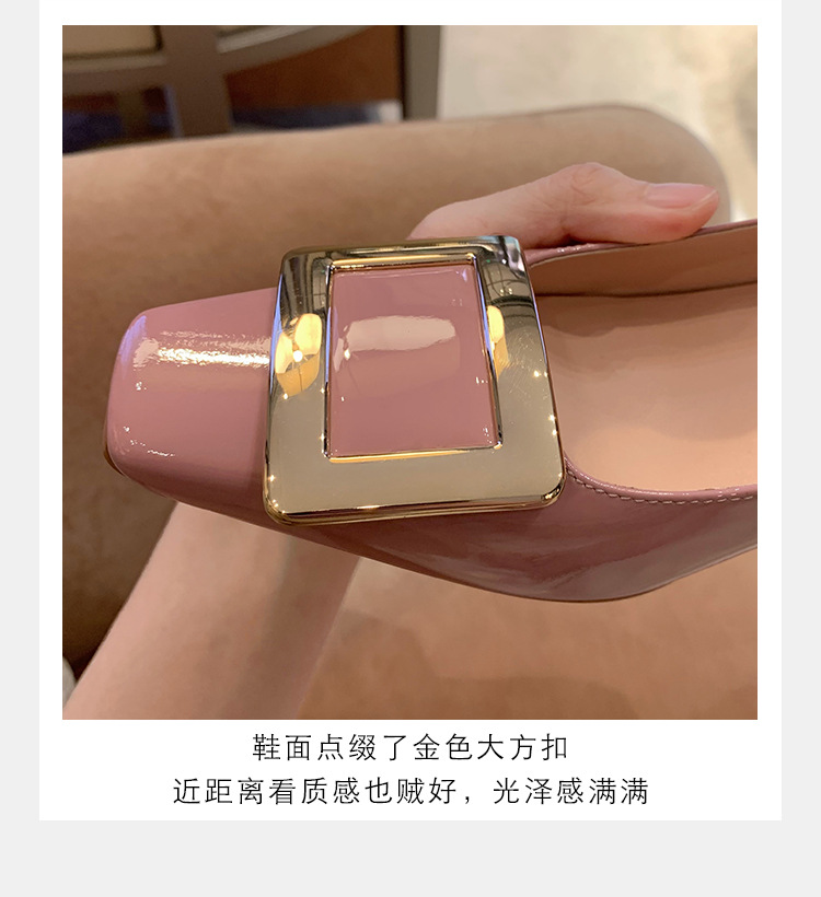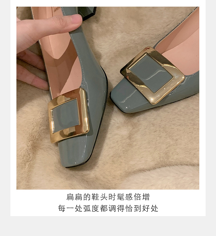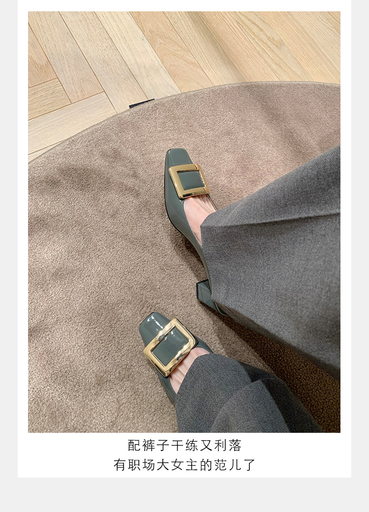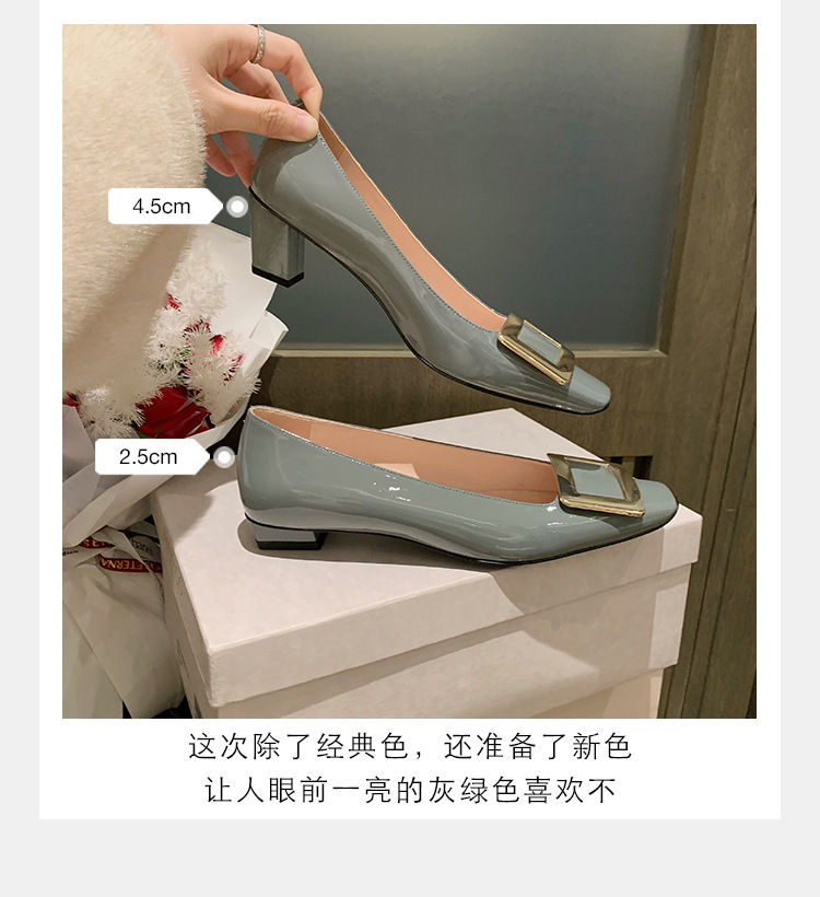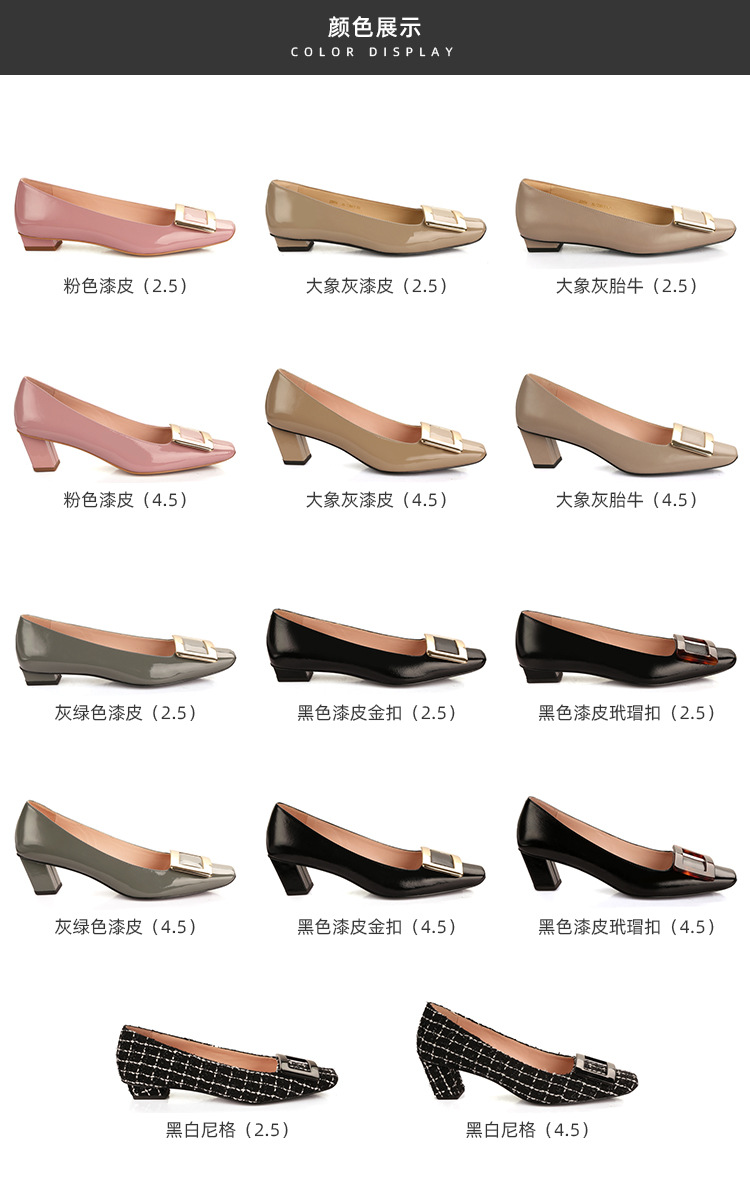 Cowhide 버전 ~ 고전적인 얕은 입 기질을 가진 포도 엄마 하이힐 신발 스퀘어 헤드 슬림 두꺼운 힐 스퀘어 버클 신발 여성스토어 가기
