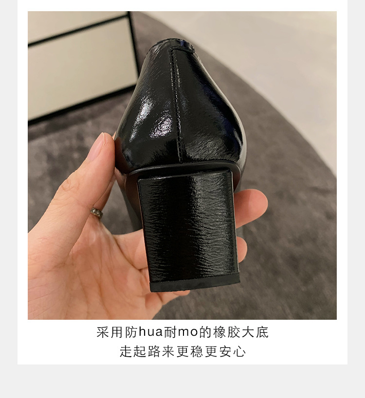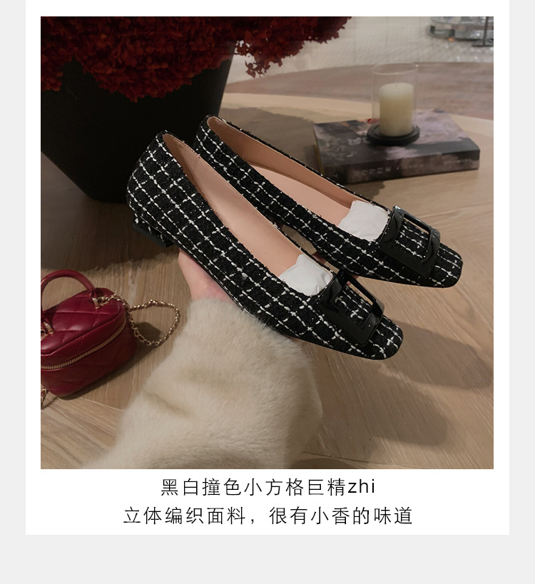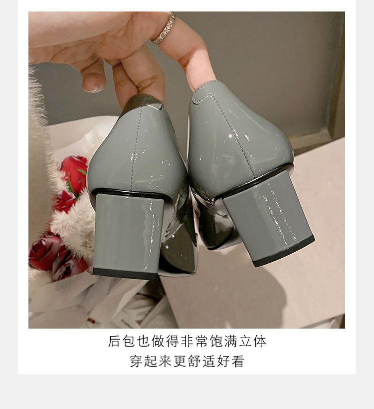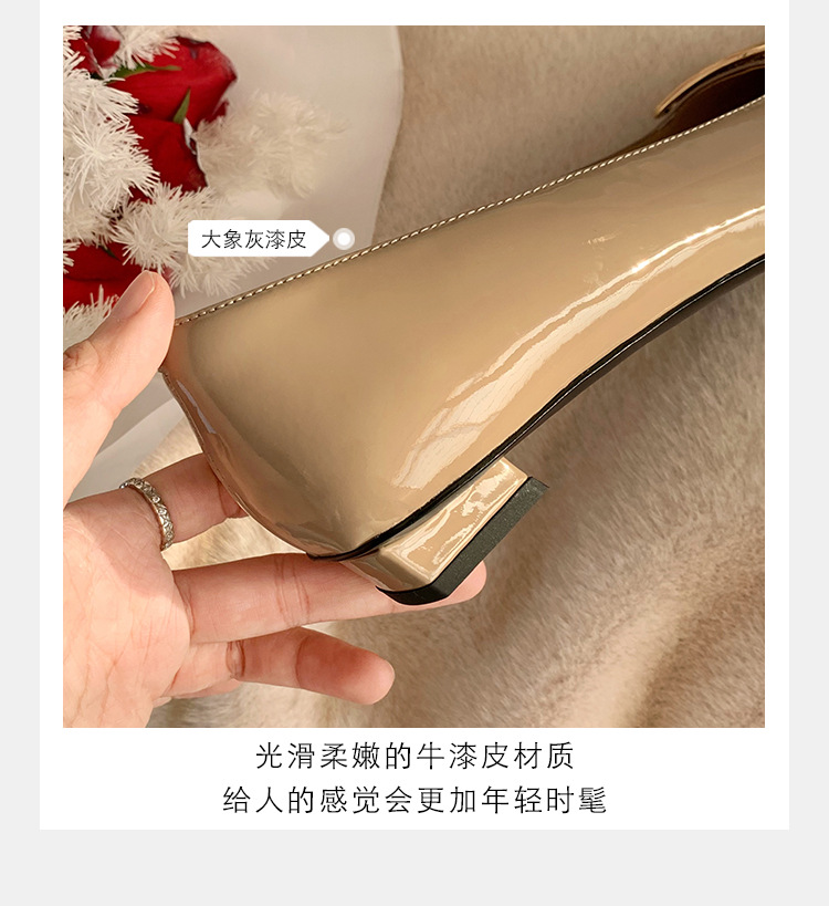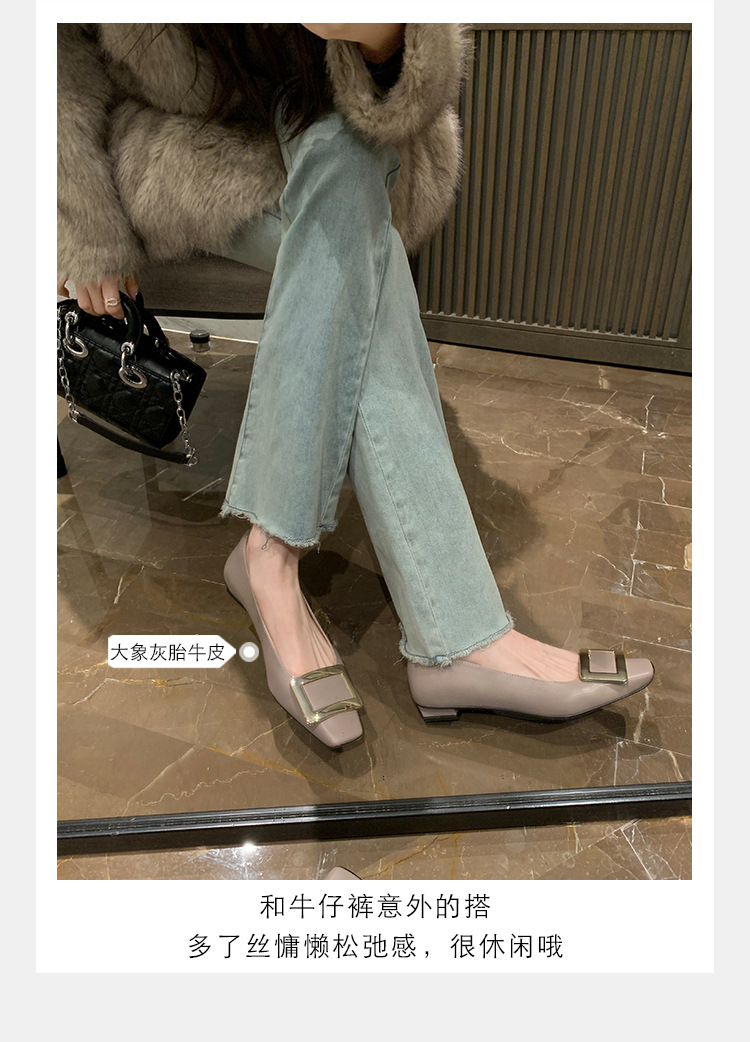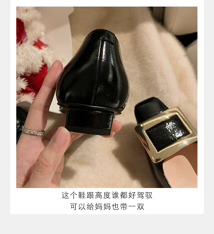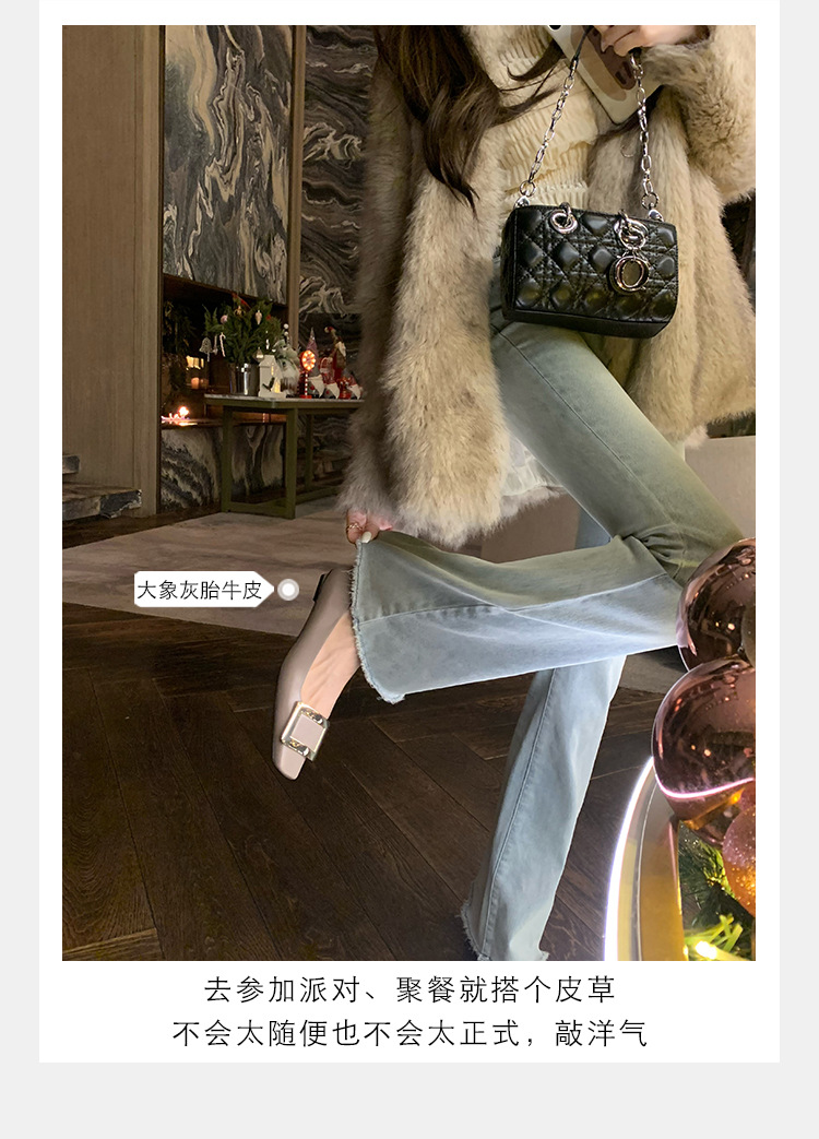 Cowhide 버전 ~ 고전적인 얕은 입 기질을 가진 포도 엄마 하이힐 신발 스퀘어 헤드 슬림 두꺼운 힐 스퀘어 버클 신발 여성스토어 가기