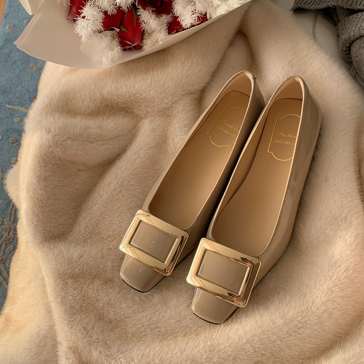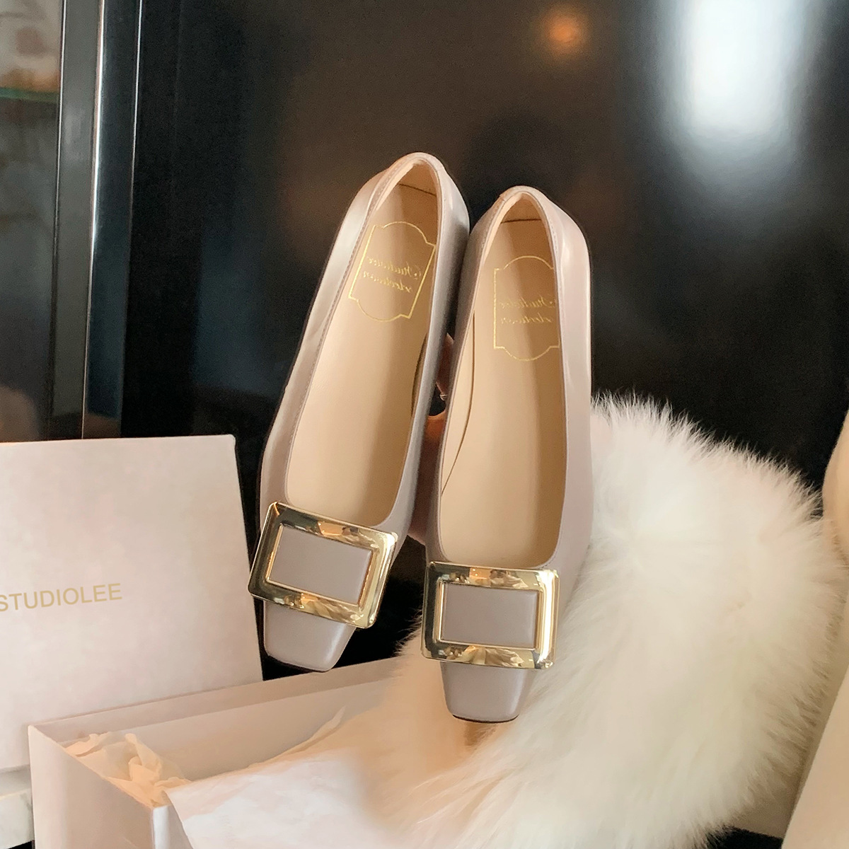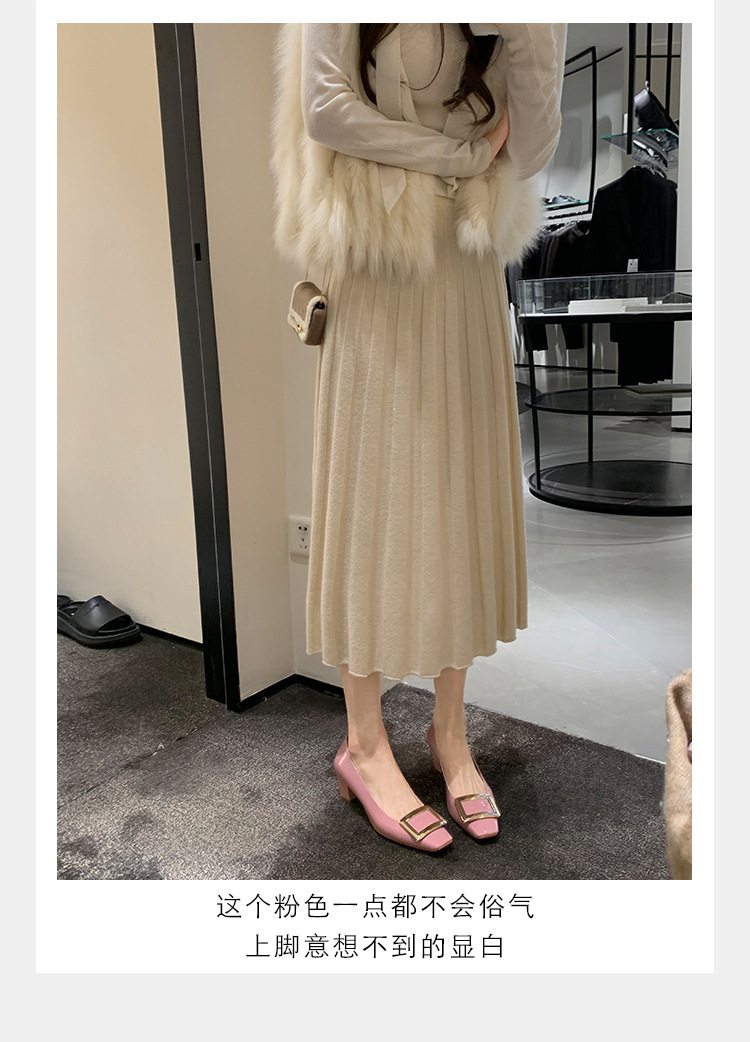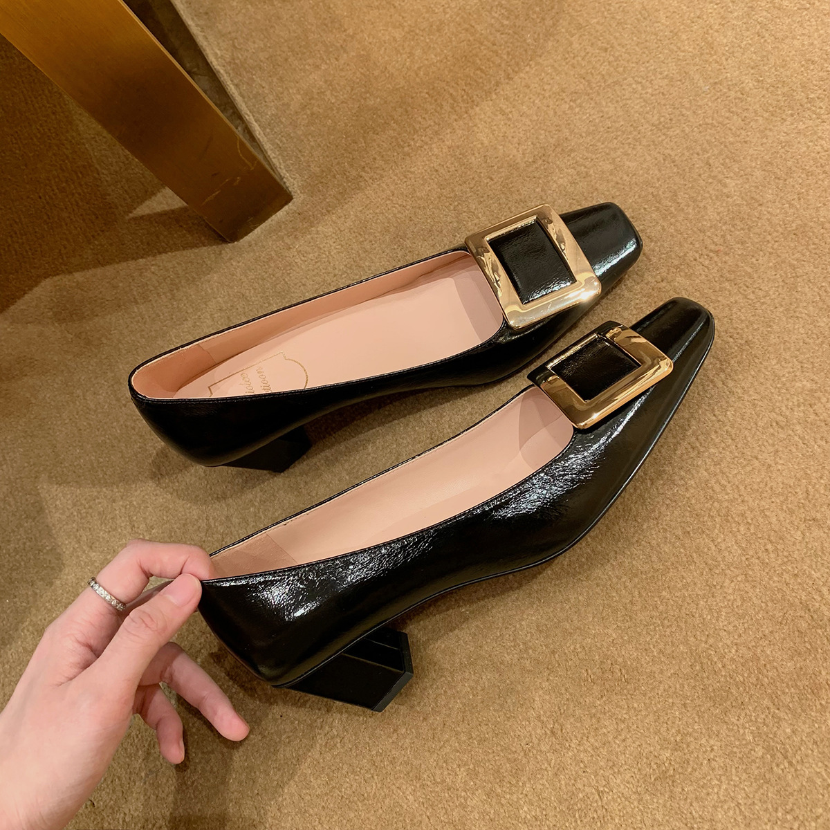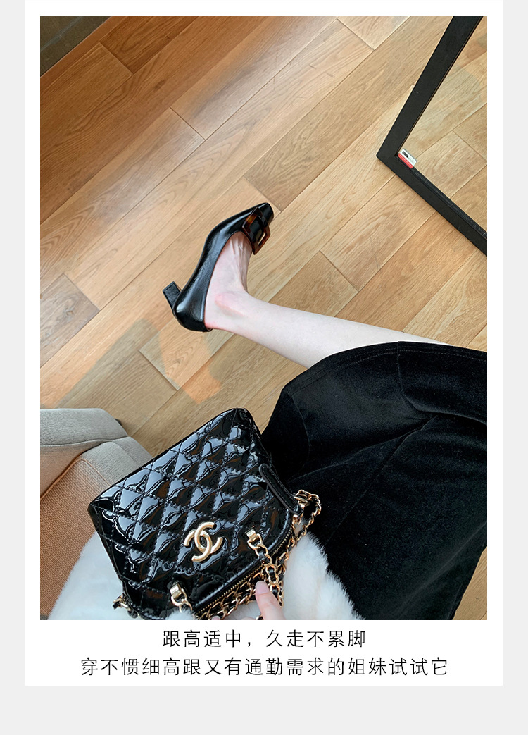 Cowhide 버전 ~ 고전적인 얕은 입 기질을 가진 포도 엄마 하이힐 신발 스퀘어 헤드 슬림 두꺼운 힐 스퀘어 버클 신발 여성스토어 가기